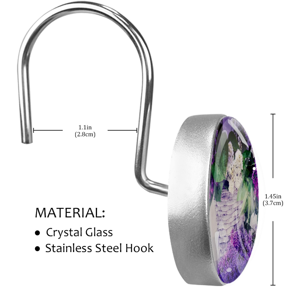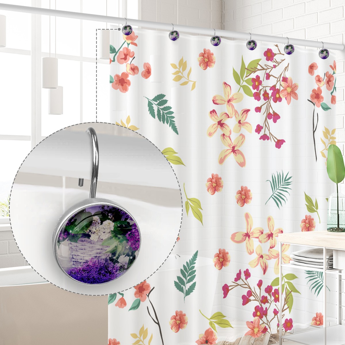 <p>This set of 12 durable hooks attach easily to any standard shower curtain, liner, and rod system to keep the curtain securely attached and evenly draped. </p><p>&nbsp;</p><p>- Impressively durable with sturdiness to hold up any shower curtain.</p><p>&nbsp;</p><p>- <b>Easy to install</b>: simply thread through existing holes and hang over shower rod.</p><p>&nbsp;</p><p>- Vibrant print on one side which adds style to your shower rod.</p><p>&nbsp;</p><p>- Astoundingly gorgeous design to <b>Decorate your bathroom</b>.</p><p>&nbsp;</p><p><b>Package Including</b></p><p>12*Shower Curtain Hooks</p><p>&nbsp;</p><p><b>Notes</b></p><p>1. Due to the different monitor and light effect, the actual color of the item might be slightly different from the color showed on the pictures. Thank you!</p><p>2. Please allow 2-3cm measuring deviation due to manual measurement.</p>