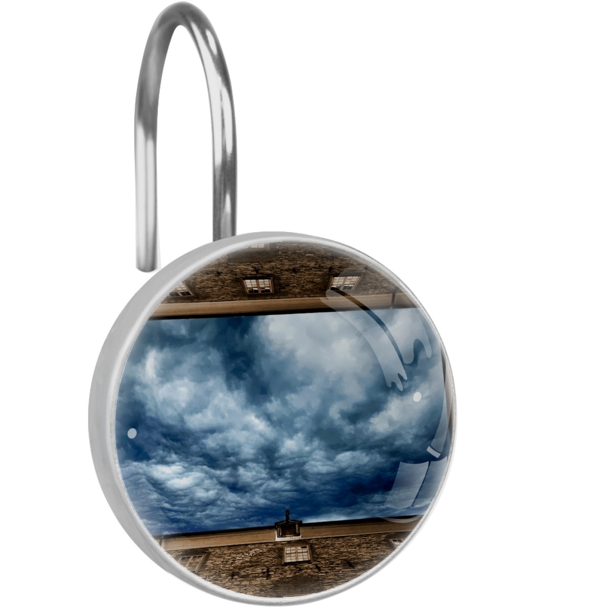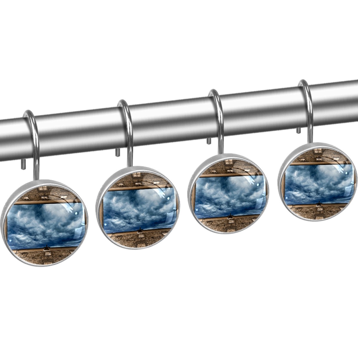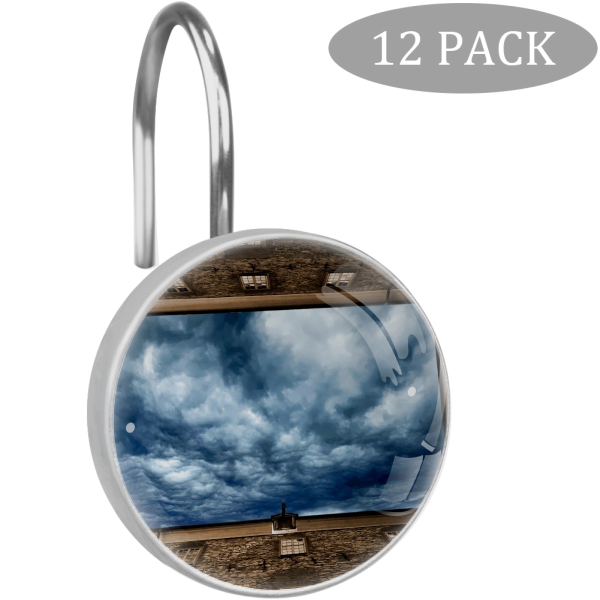 Decorative Shower Curtain Hooks Set of 12 Sky Clouds Building Up View Blue Resin Shower Hooks for Curtain Shower Rings for Bathroom Home Hotel Shower Rods