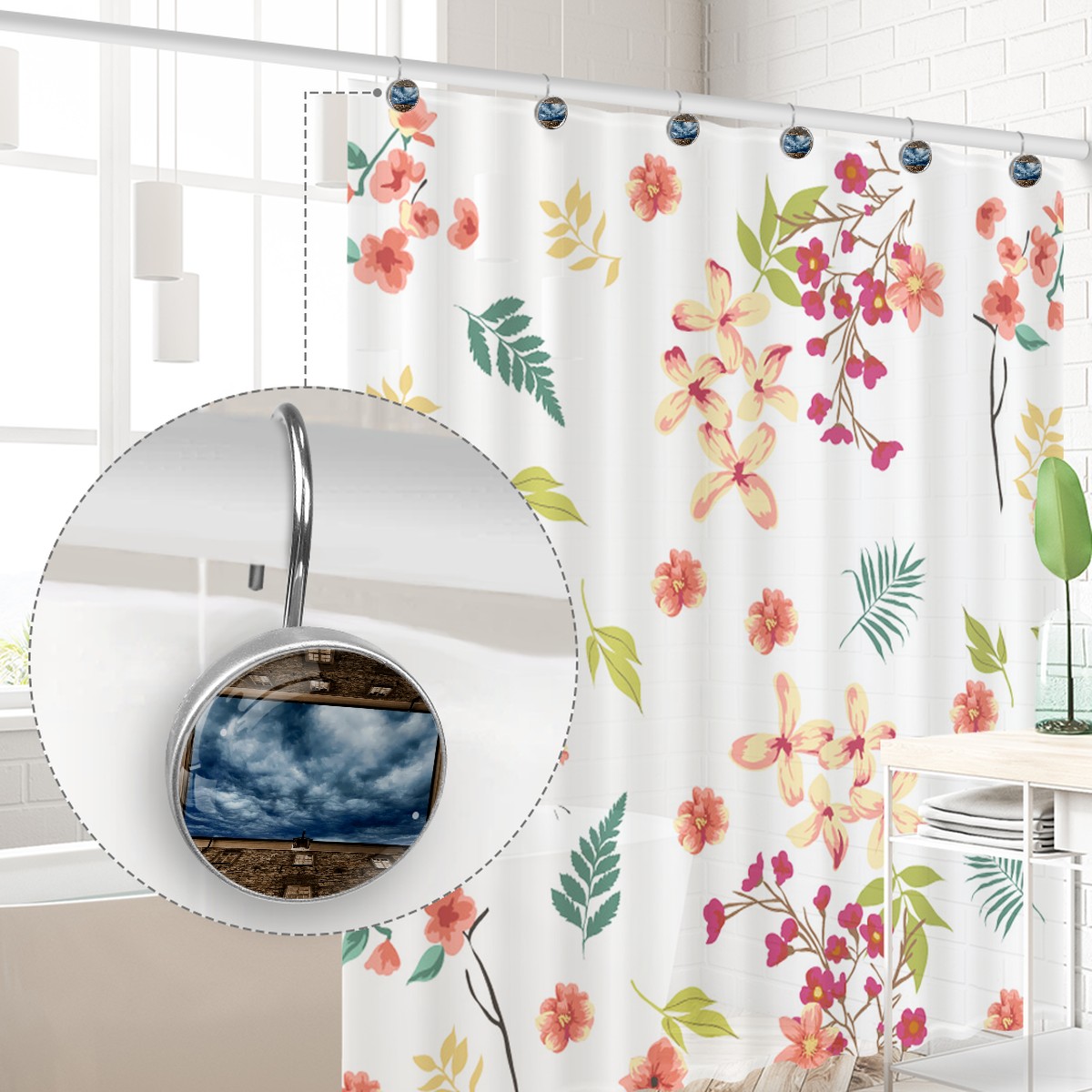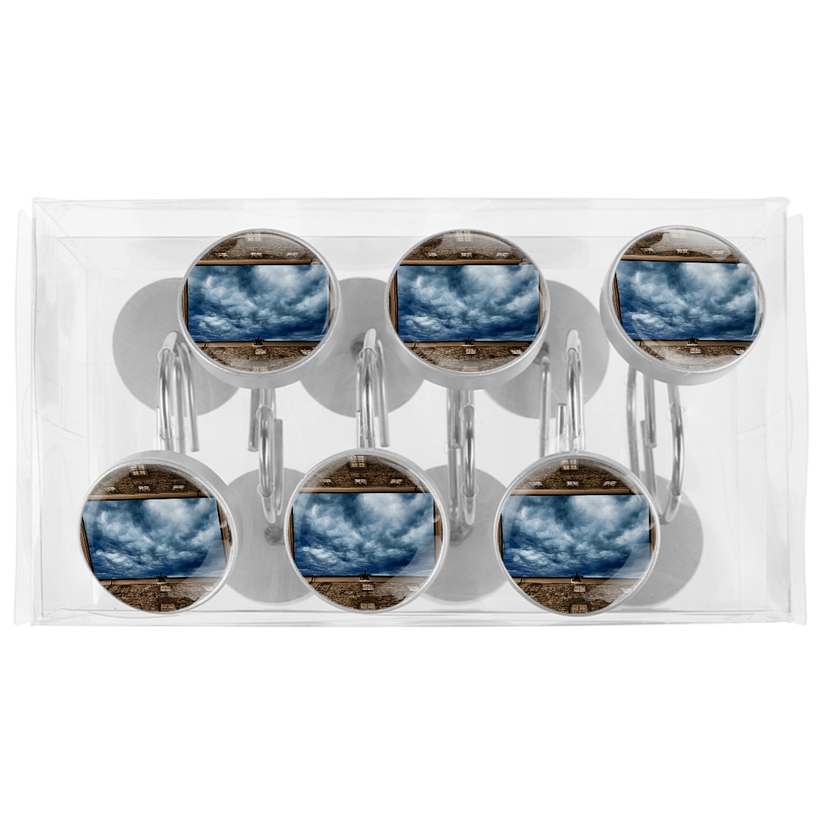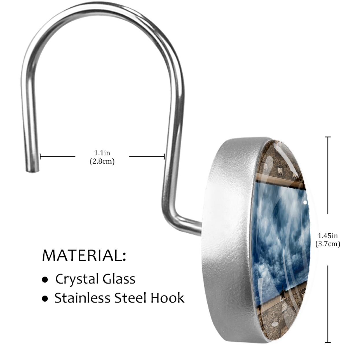 Decorative Shower Curtain Hooks Set of 12 Sky Clouds Building Up View Blue Resin Shower Hooks for Curtain Shower Rings for Bathroom Home Hotel Shower Rods
