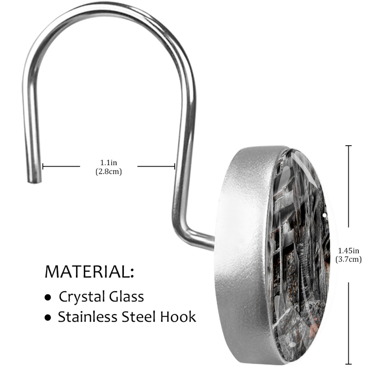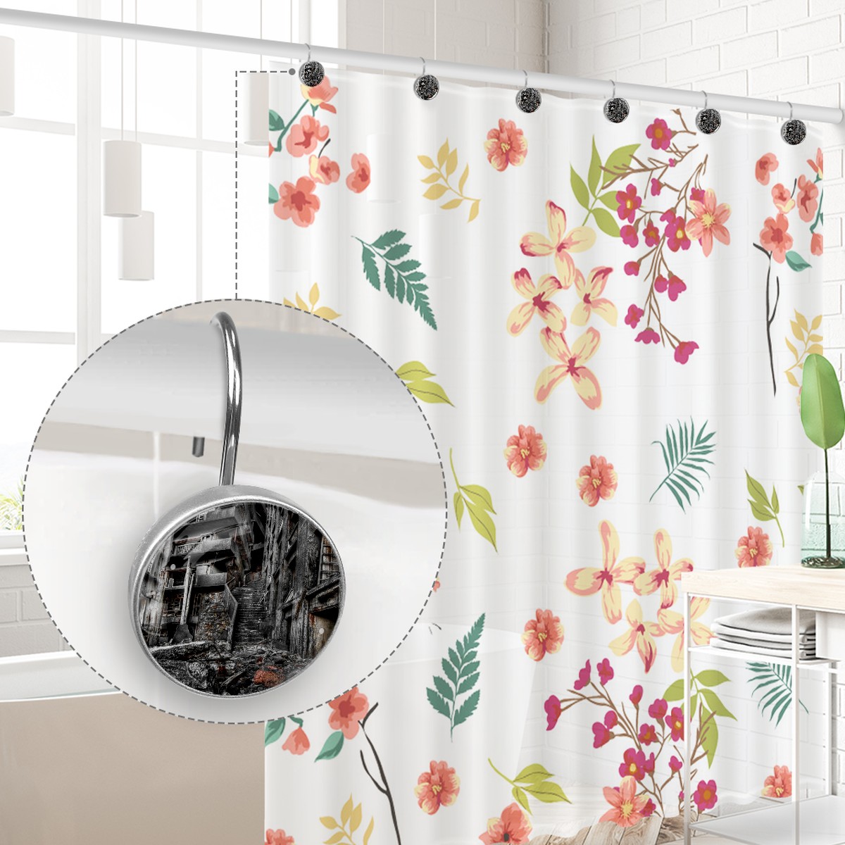 <p>This set of 12 durable hooks attach easily to any standard shower curtain, liner, and rod system to keep the curtain securely attached and evenly draped. </p><p>&nbsp;</p><p>- Impressively durable with sturdiness to hold up any shower curtain.</p><p>&nbsp;</p><p>- <b>Easy to install</b>: simply thread through existing holes and hang over shower rod.</p><p>&nbsp;</p><p>- Vibrant print on one side which adds style to your shower rod.</p><p>&nbsp;</p><p>- Astoundingly gorgeous design to <b>Decorate your bathroom</b>.</p><p>&nbsp;</p><p><b>Package Including</b></p><p>12*Shower Curtain Hooks</p><p>&nbsp;</p><p><b>Notes</b></p><p>1. Due to the different monitor and light effect, the actual color of the item might be slightly different from the color showed on the pictures. Thank you!</p><p>2. Please allow 2-3cm measuring deviation due to manual measurement.</p>