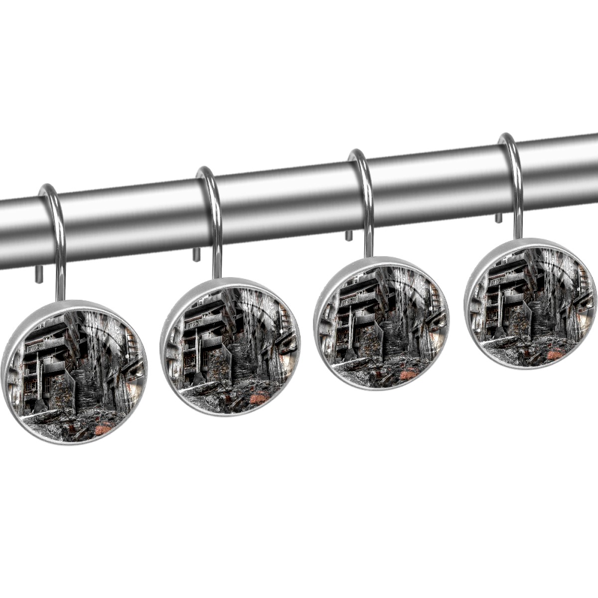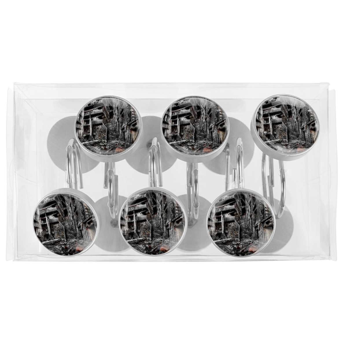 Decorative Shower Curtain Hooks Set of 12 Ruined House Resin Shower Hooks for Curtain Shower Rings for Bathroom Home Hotel Shower Rods