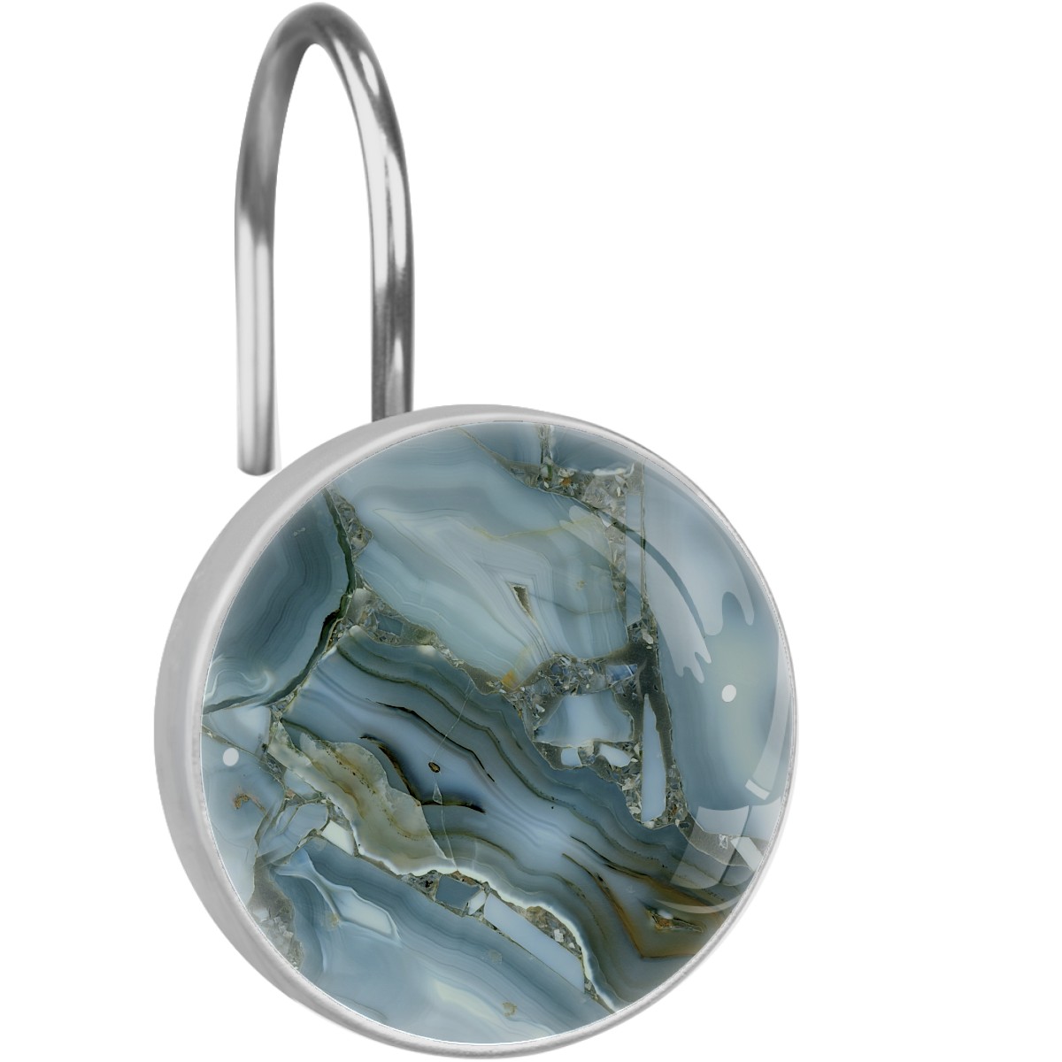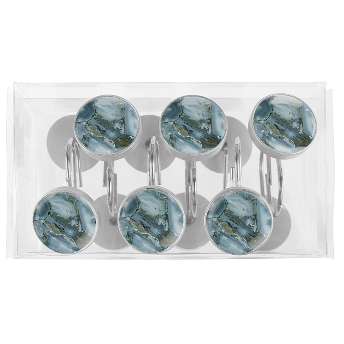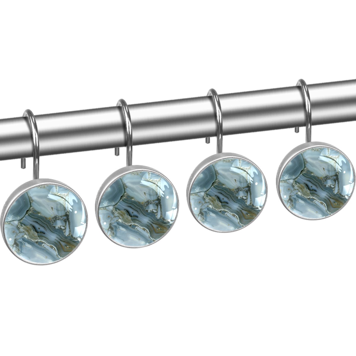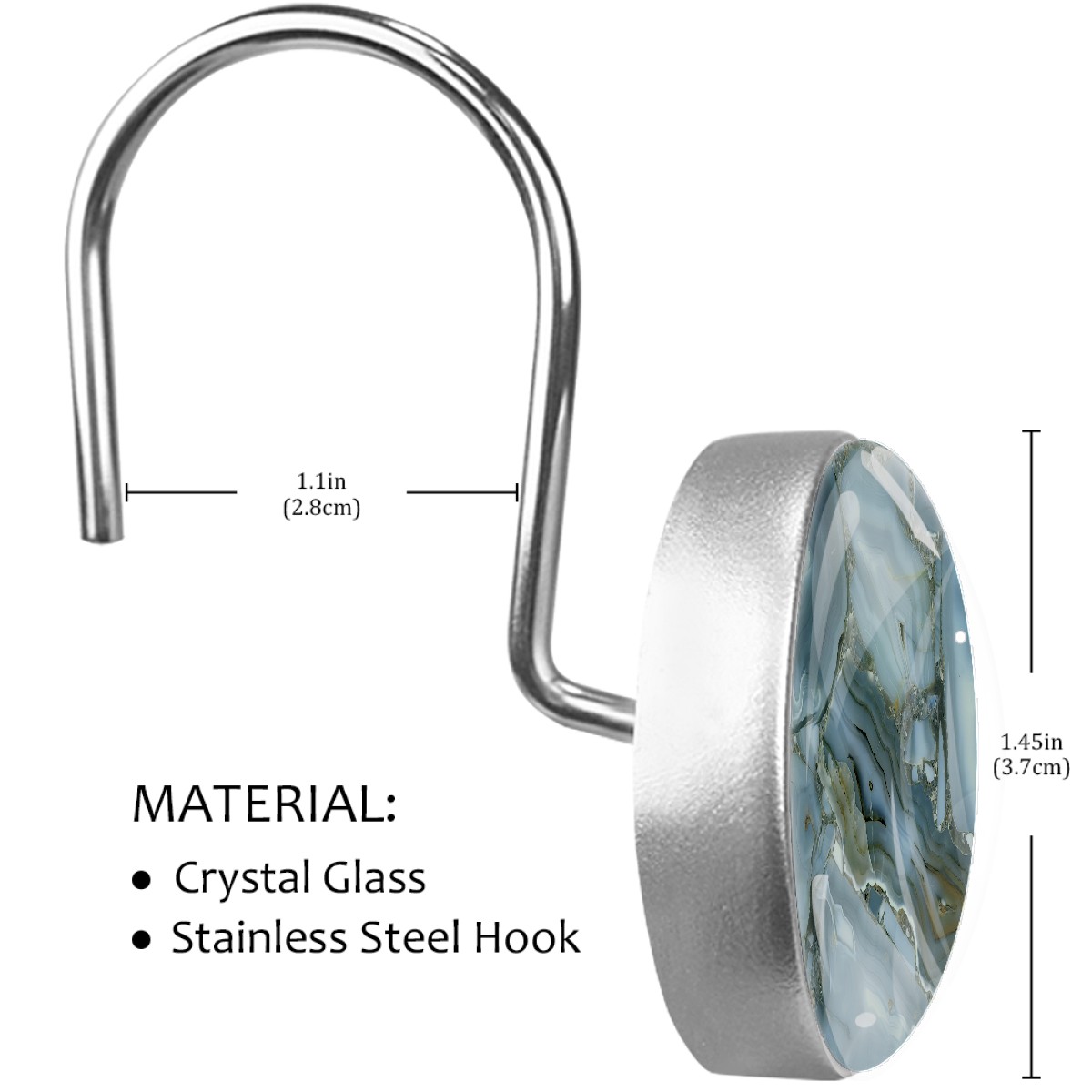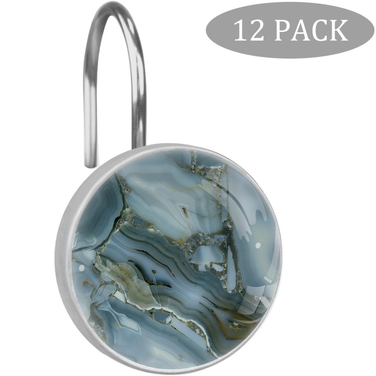 Decorative Shower Curtain Hooks Set of 12 Rock Tile Marble Structure Resin Shower Hooks for Curtain Shower Rings for Bathroom Home Hotel Shower Rods