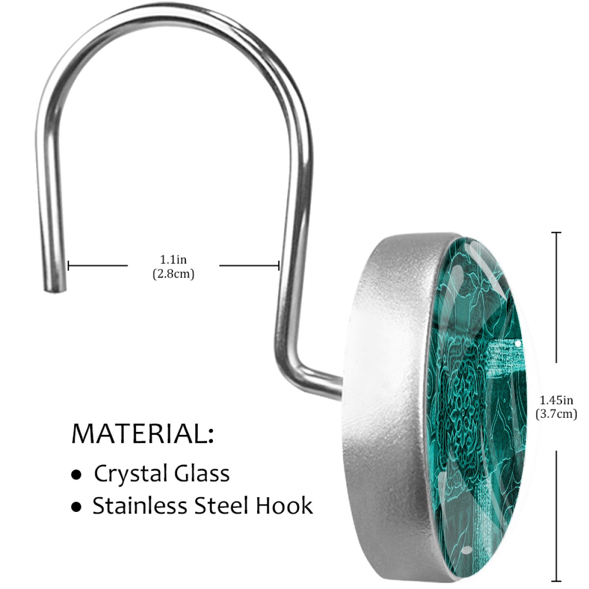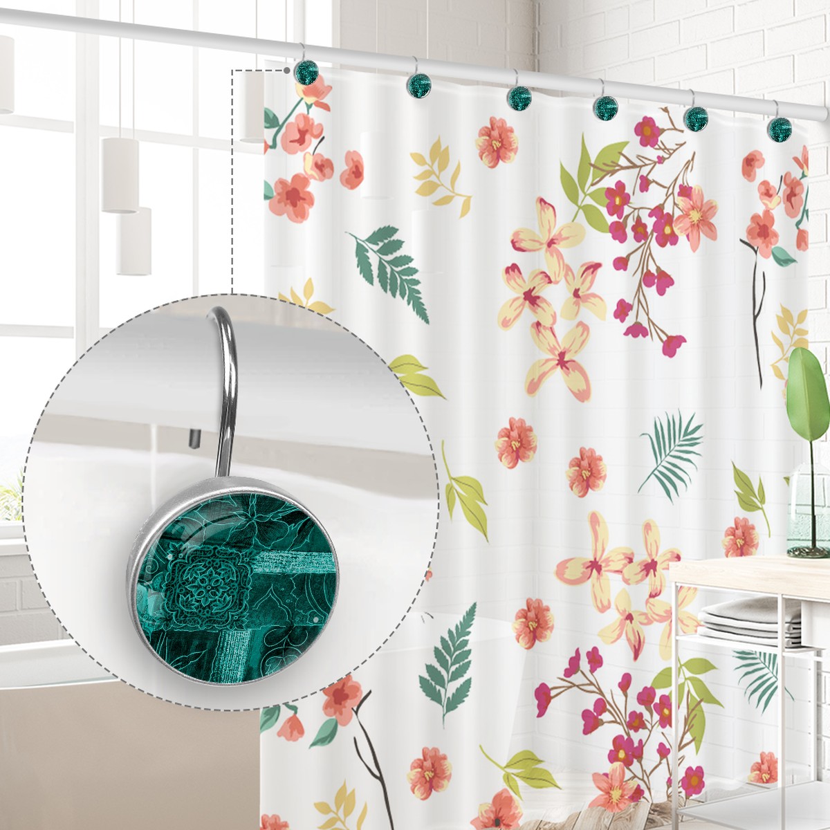 <p>This set of 12 durable hooks attach easily to any standard shower curtain, liner, and rod system to keep the curtain securely attached and evenly draped. </p><p>&nbsp;</p><p>- Impressively durable with sturdiness to hold up any shower curtain.</p><p>&nbsp;</p><p>- <b>Easy to install</b>: simply thread through existing holes and hang over shower rod.</p><p>&nbsp;</p><p>- Vibrant print on one side which adds style to your shower rod.</p><p>&nbsp;</p><p>- Astoundingly gorgeous design to <b>Decorate your bathroom</b>.</p><p>&nbsp;</p><p><b>Package Including</b></p><p>12*Shower Curtain Hooks</p><p>&nbsp;</p><p><b>Notes</b></p><p>1. Due to the different monitor and light effect, the actual color of the item might be slightly different from the color showed on the pictures. Thank you!</p><p>2. Please allow 2-3cm measuring deviation due to manual measurement.</p>