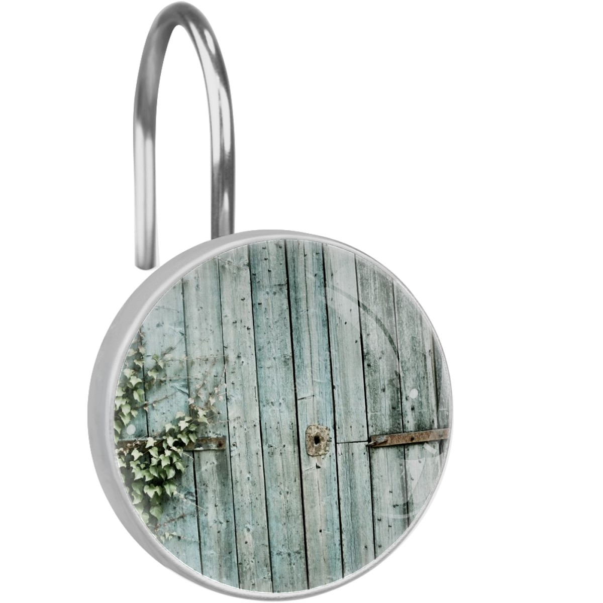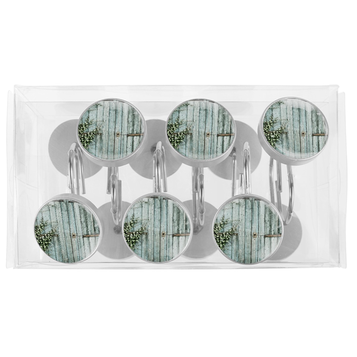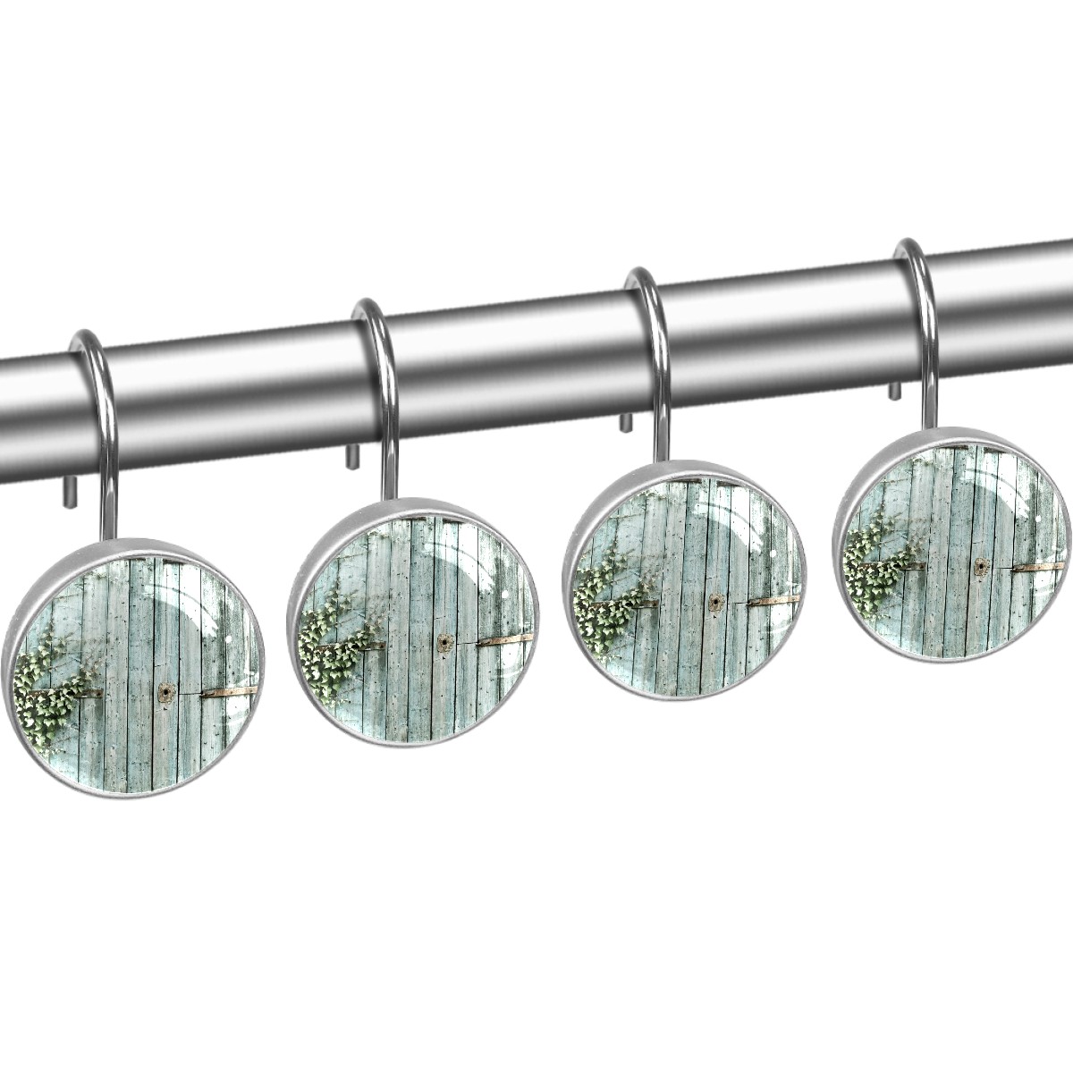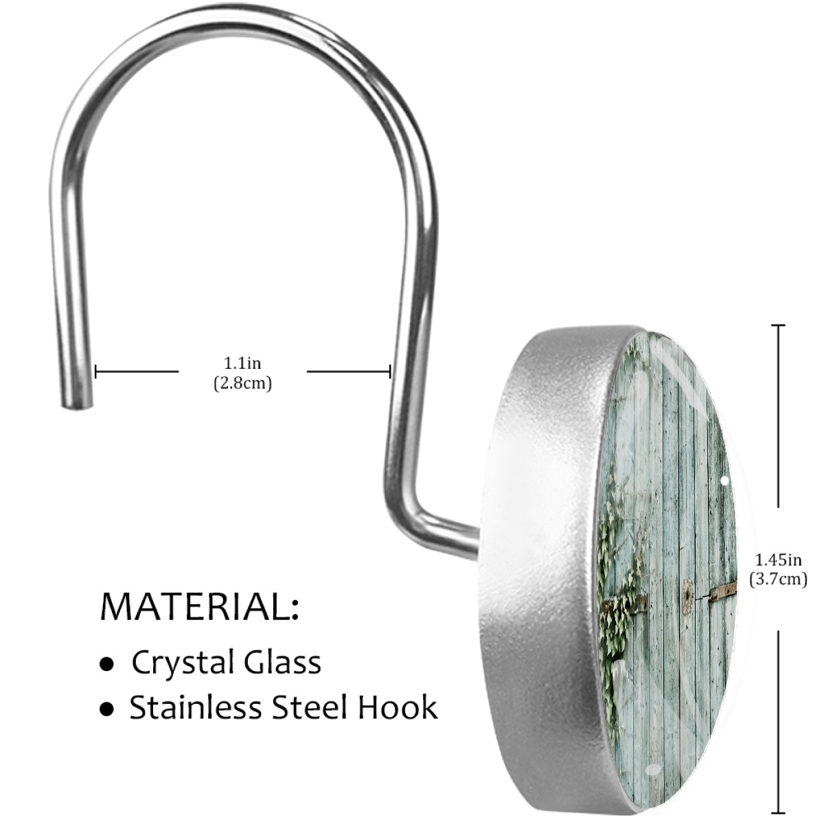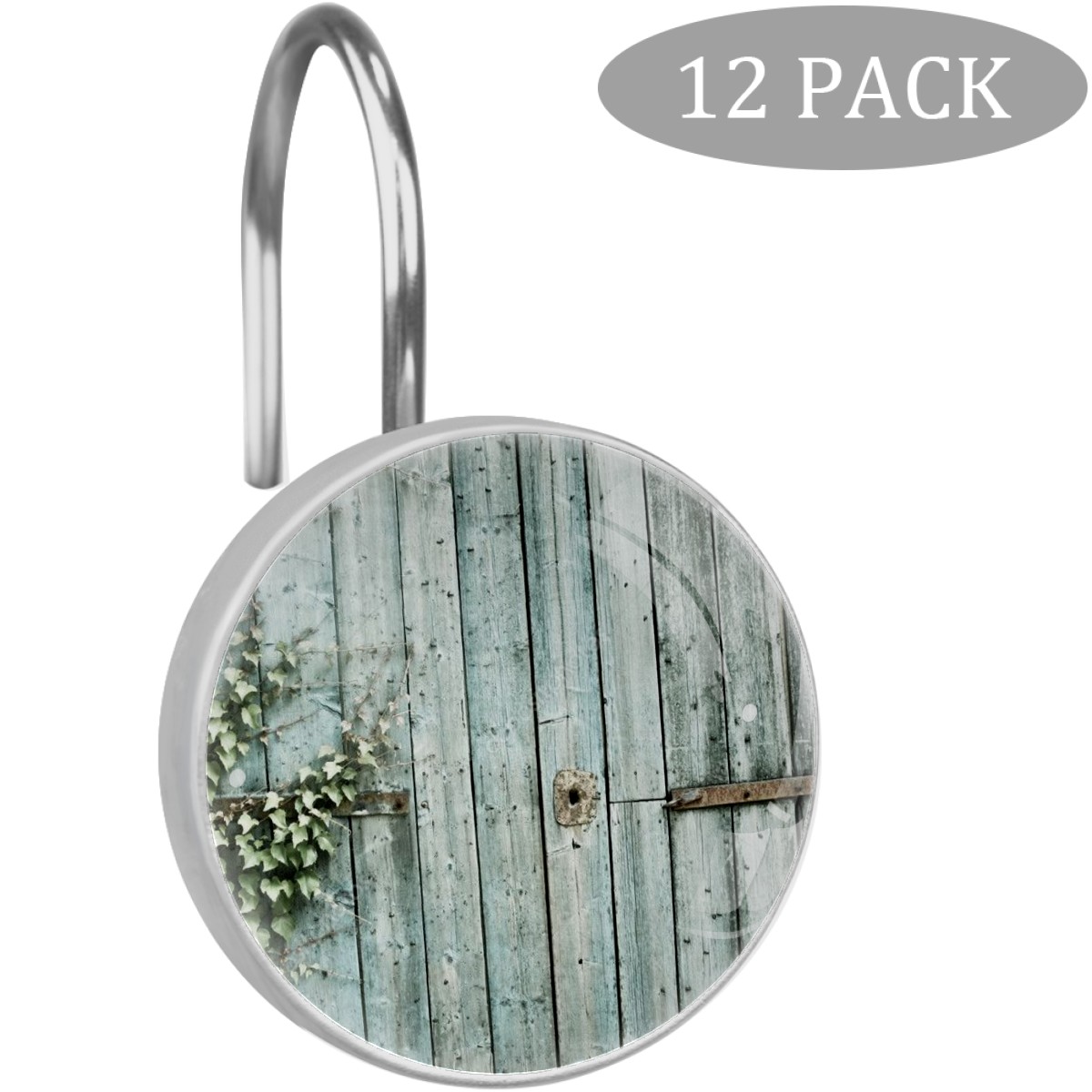 Decorative Shower Curtain Hooks Set of 12 Old Faded Wooden Barn Doors Resin Shower Hooks for Curtain Shower Rings for Bathroom Home Hotel Shower Rods