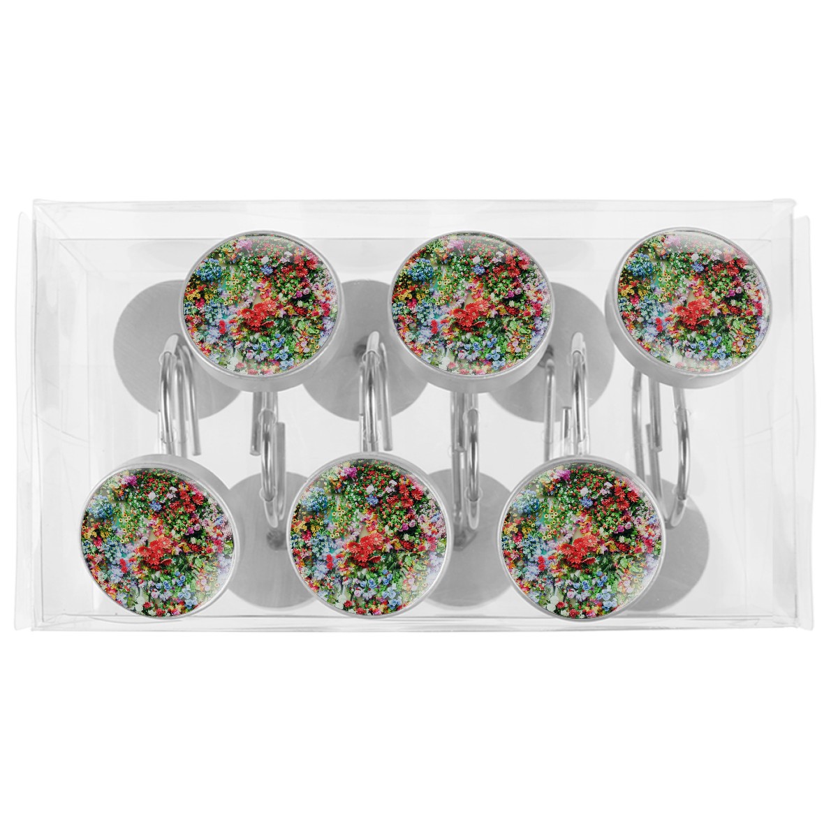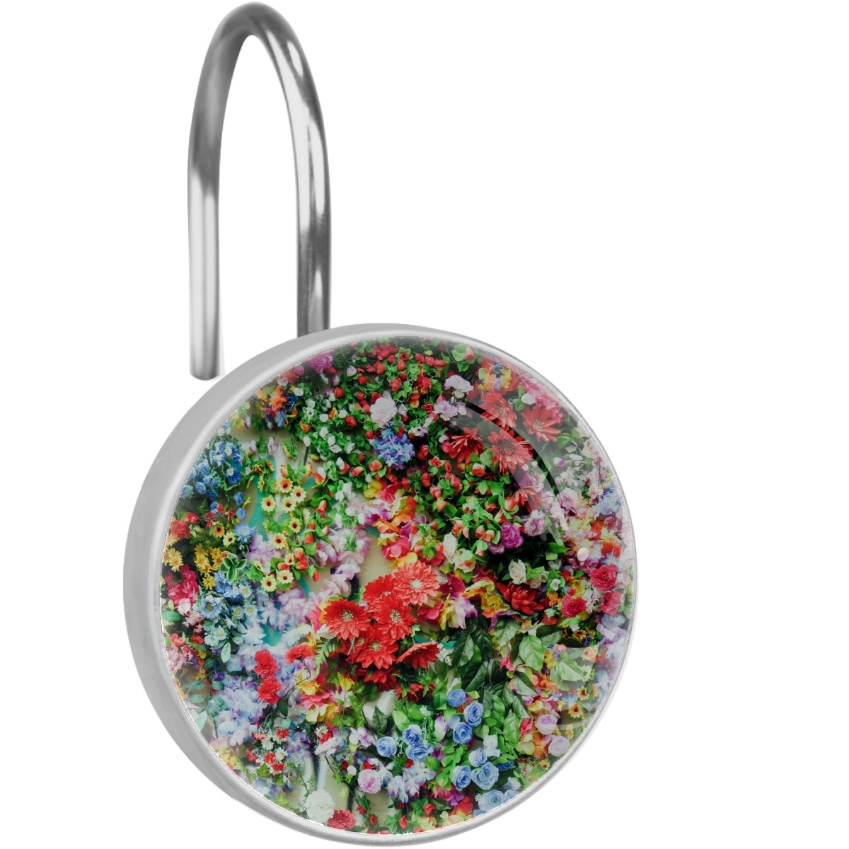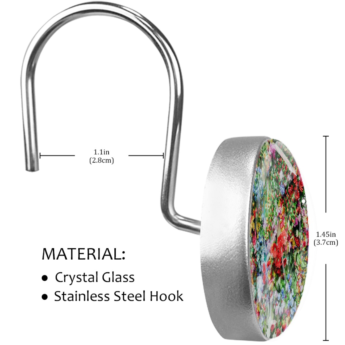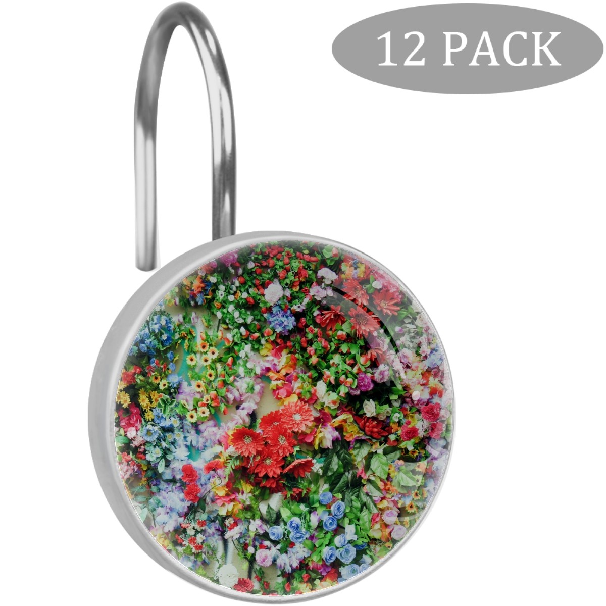 Decorative Shower Curtain Hooks Set of 12 Nature Flowers Resin Shower Hooks for Curtain Shower Rings for Bathroom Home Hotel Shower Rods