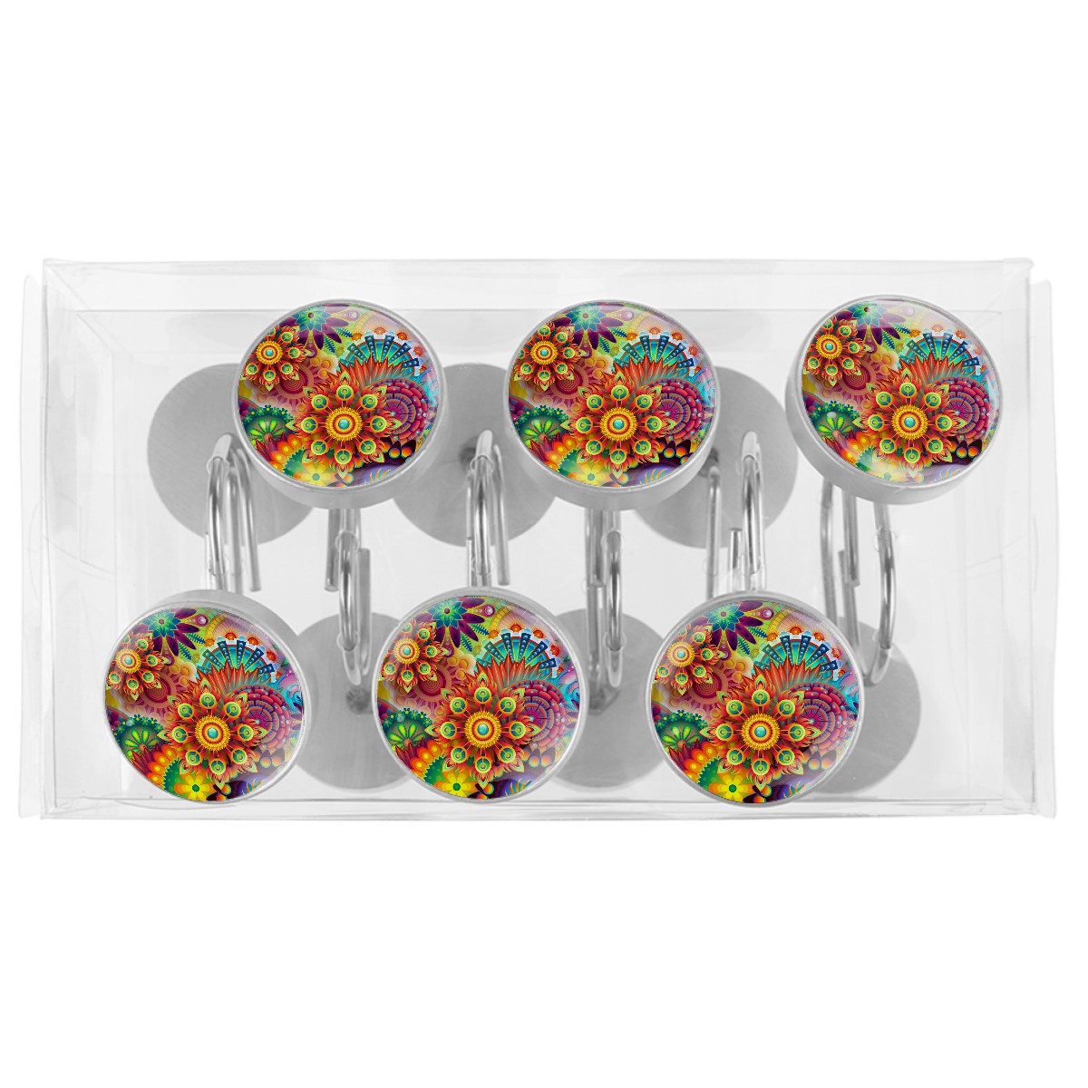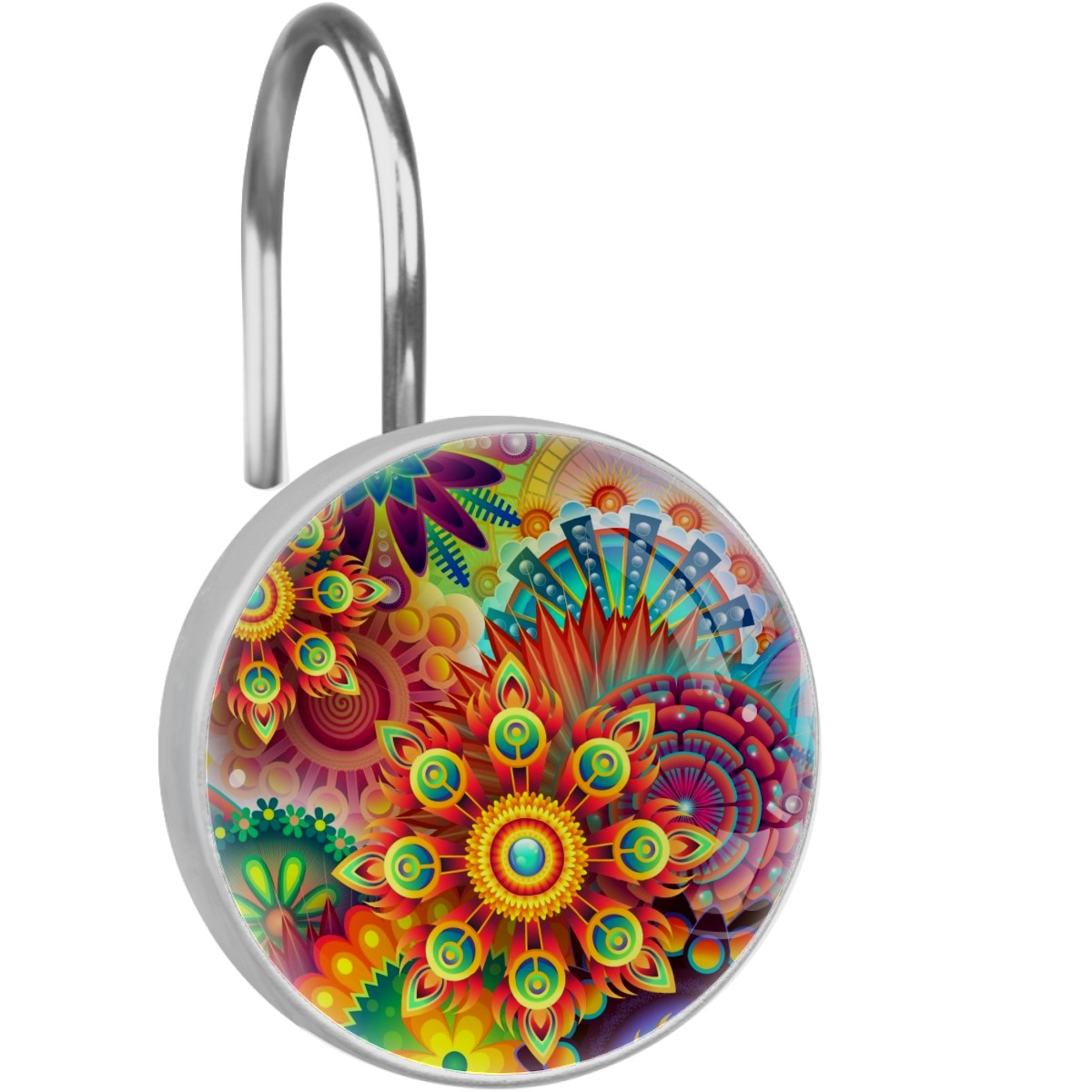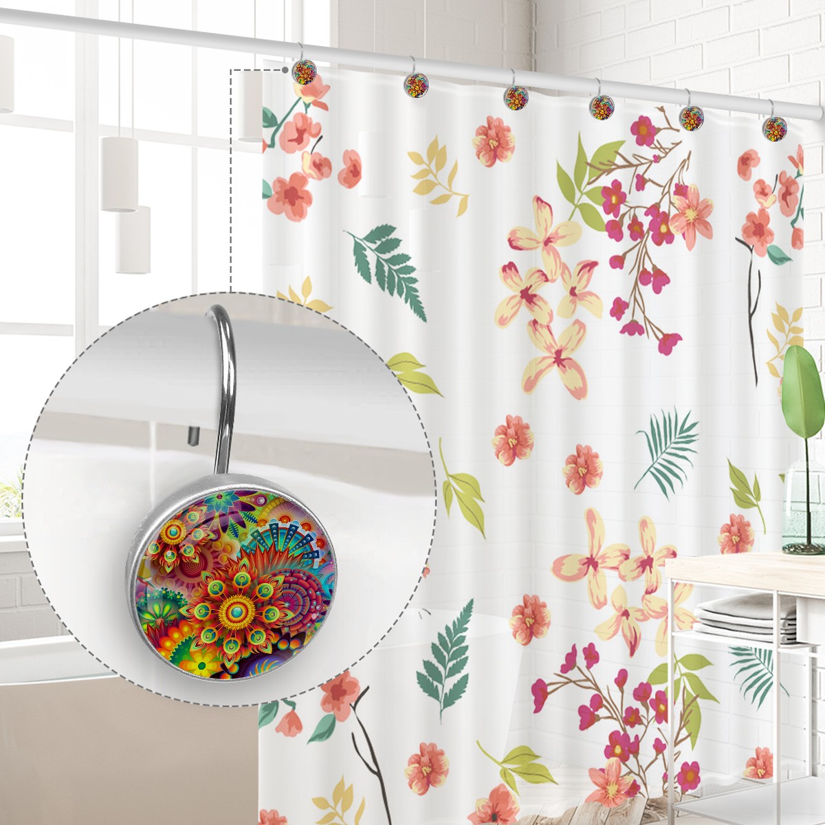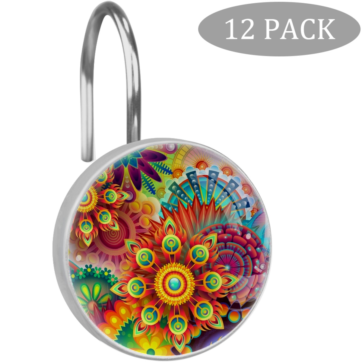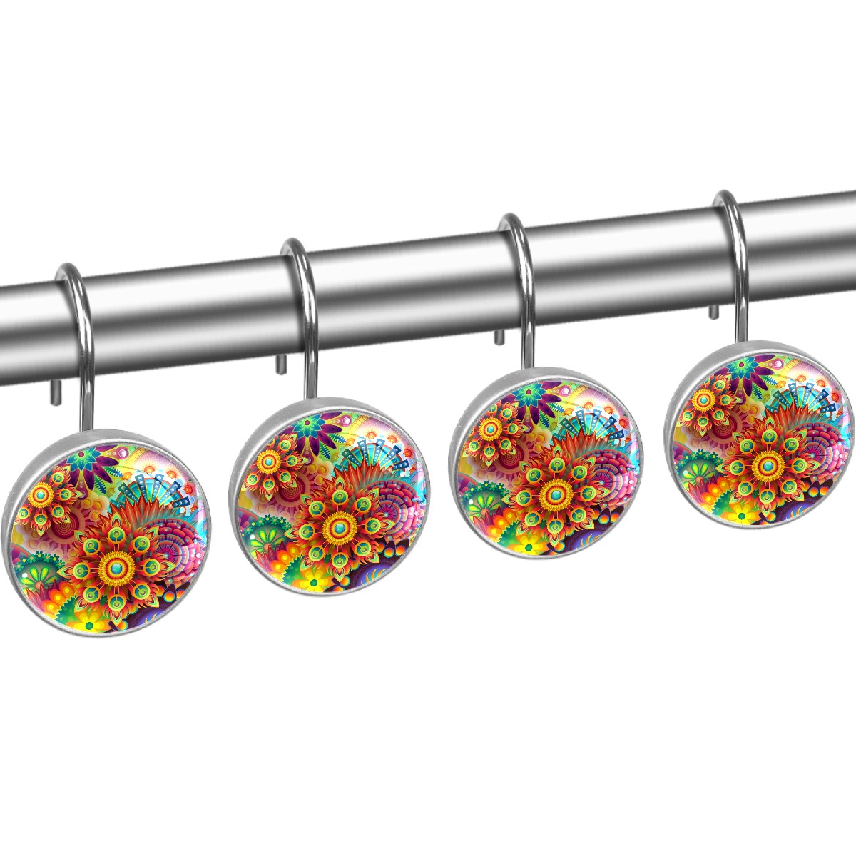Decorative Shower Curtain Hooks Set of 12 Mandalas Colorful Abstract Resin Shower Hooks for Curtain Shower Rings for Bathroom Home Hotel Shower Rods