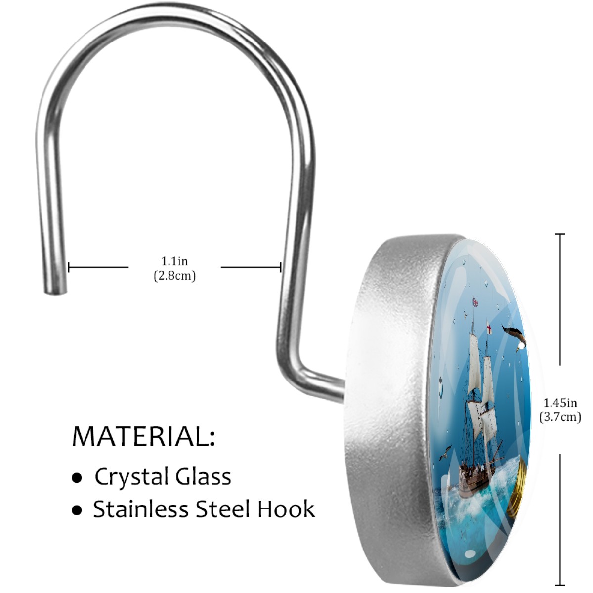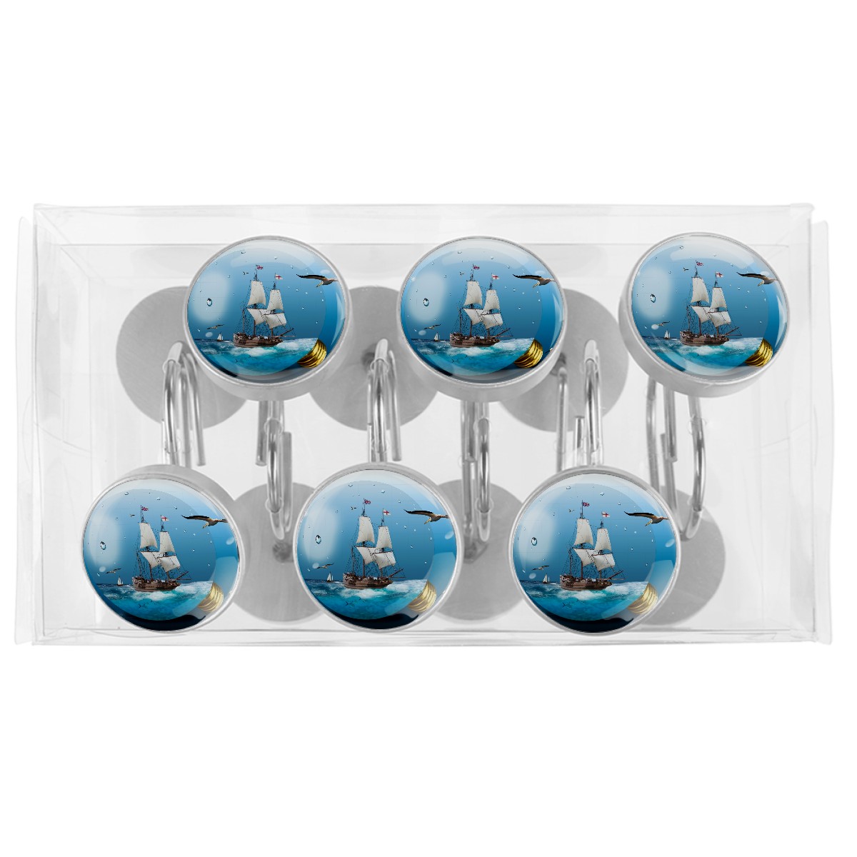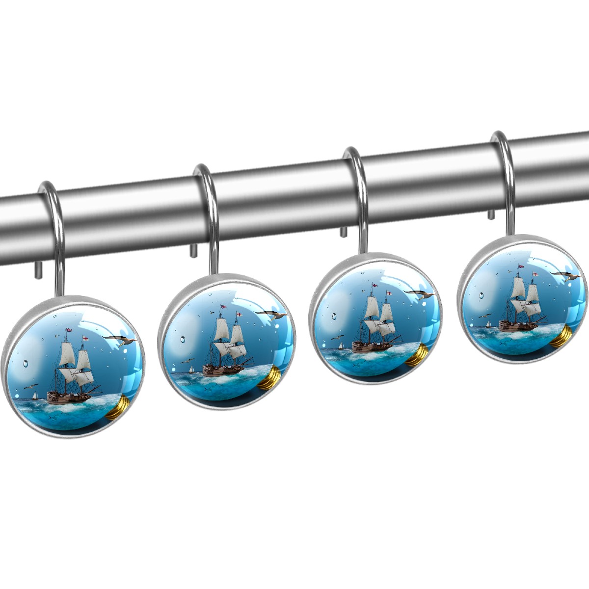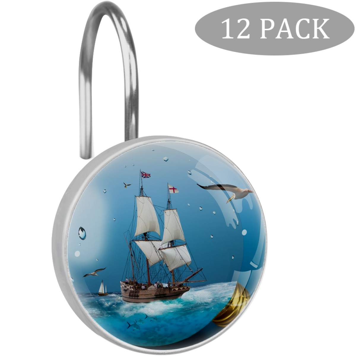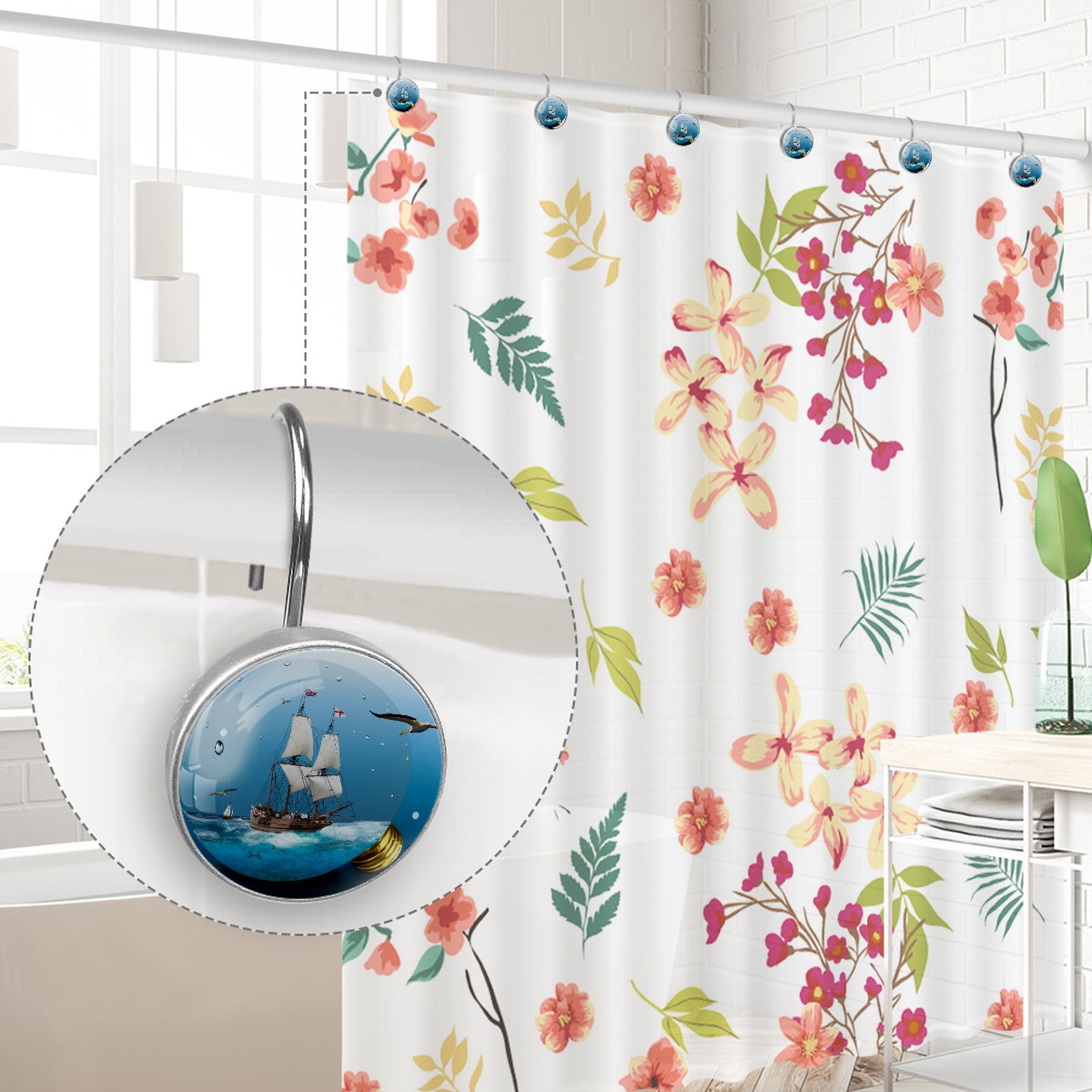 Decorative Shower Curtain Hooks Set of 12 Light Bulb Sea Sailing Vessel Resin Shower Hooks for Curtain Shower Rings for Bathroom Home Hotel Shower Rods