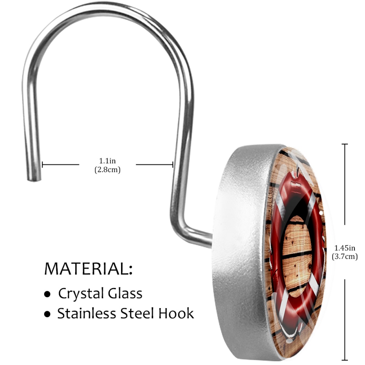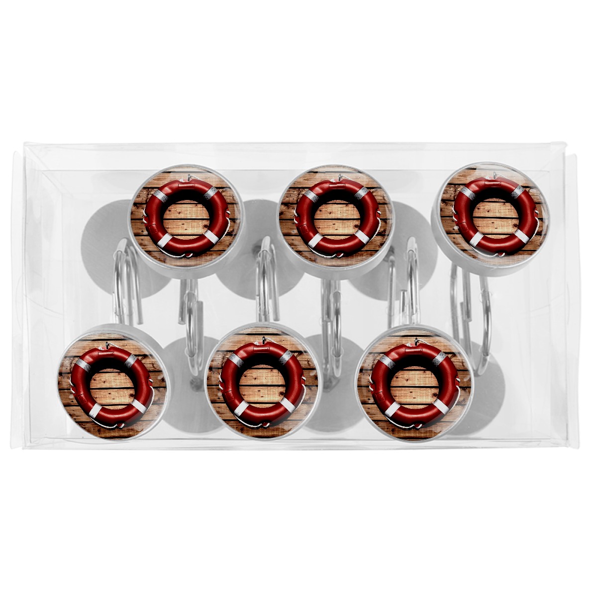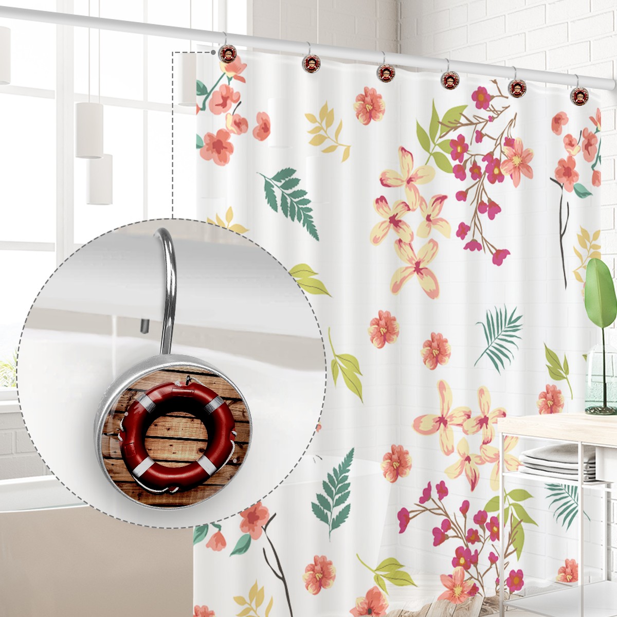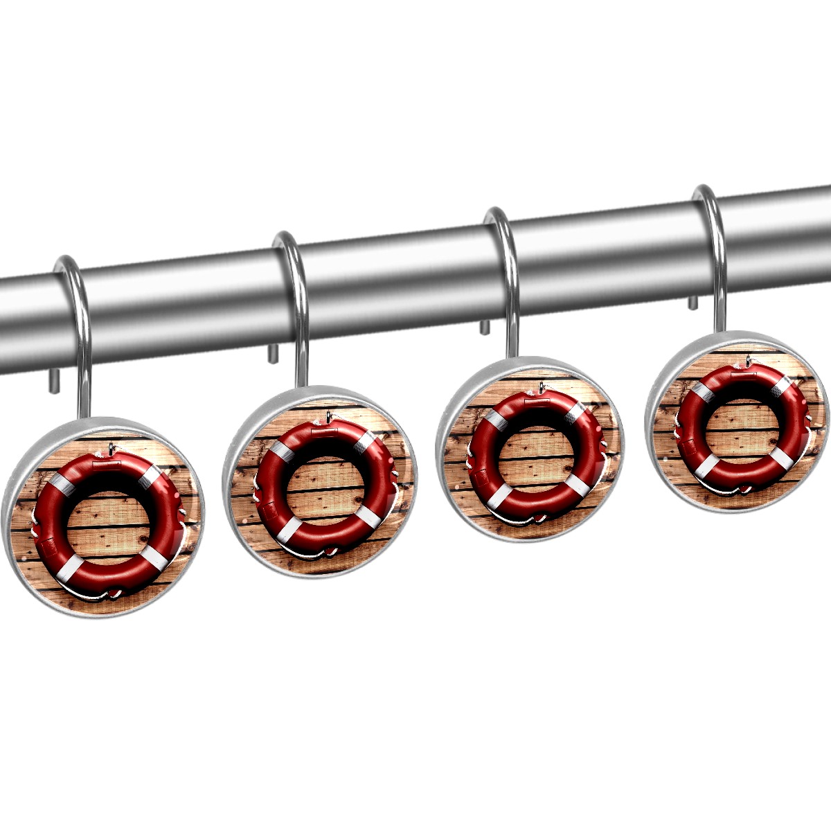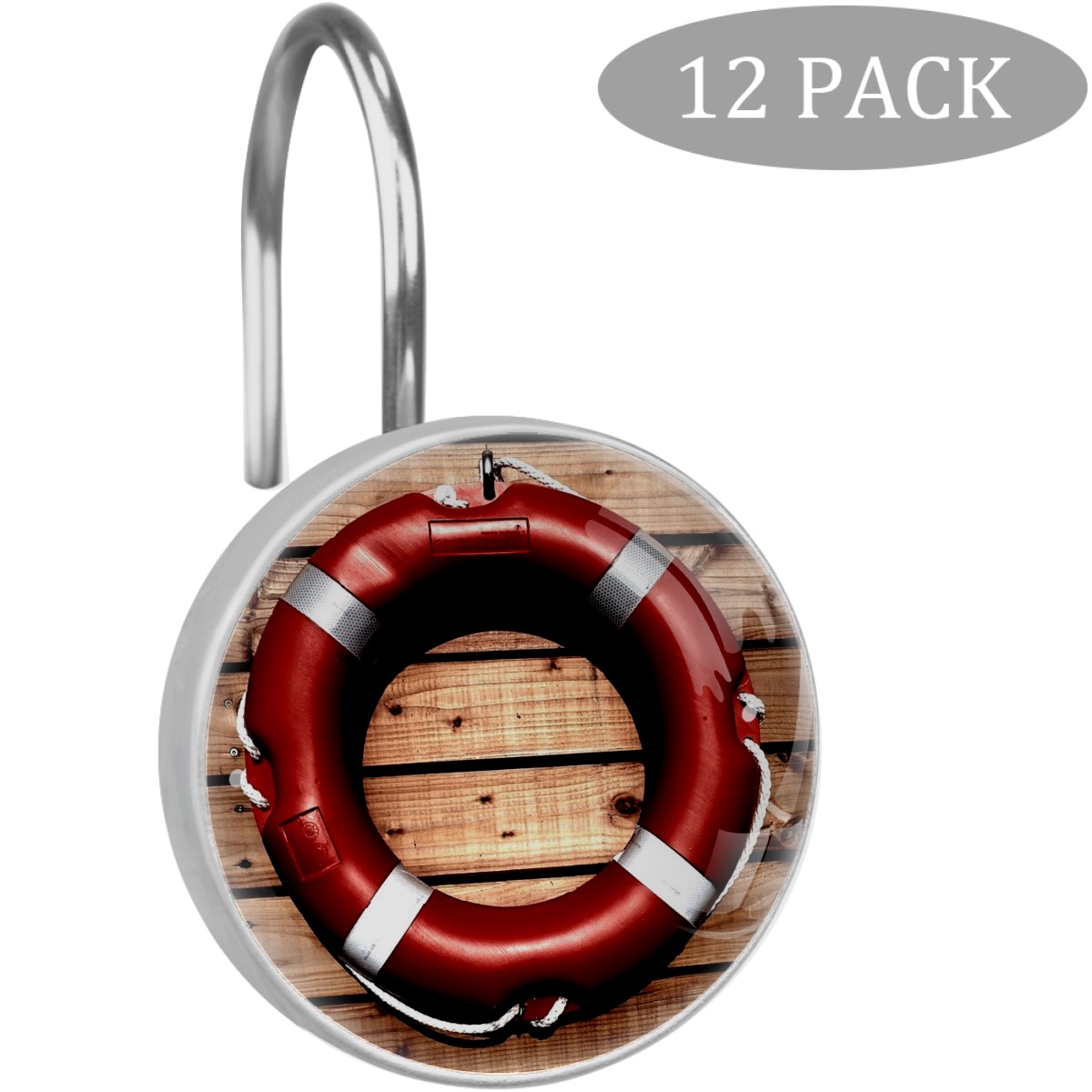 Decorative Shower Curtain Hooks Set of 12 Lifesaver Life Buoy Safety Rescue Resin Shower Hooks for Curtain Shower Rings for Bathroom Home Hotel Shower Rods