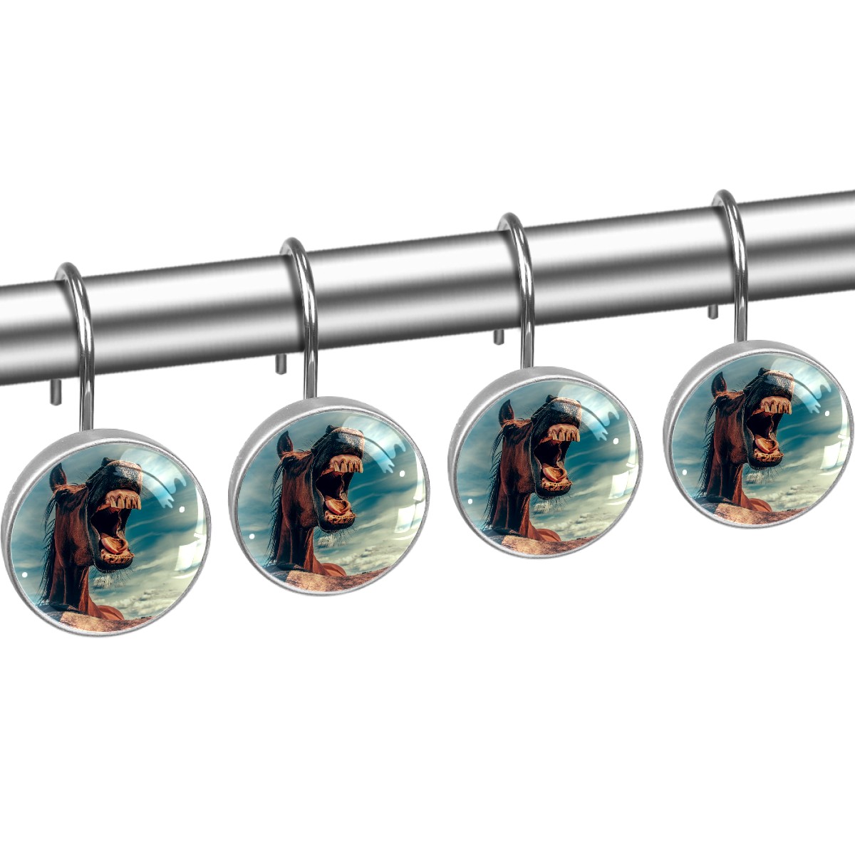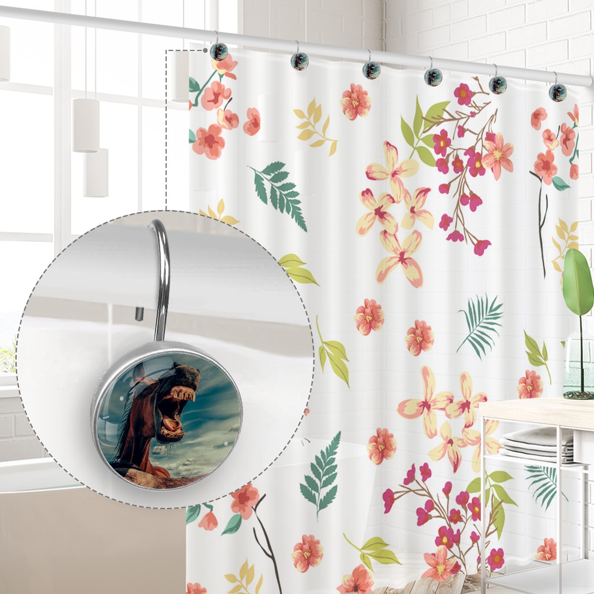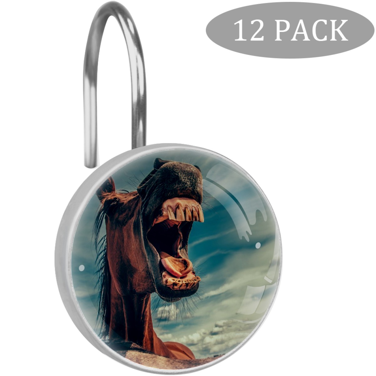 Decorative Shower Curtain Hooks Set of 12 Horse Whinny Head Mouth Teeth Resin Shower Hooks for Curtain Shower Rings for Bathroom Home Hotel Shower Rods