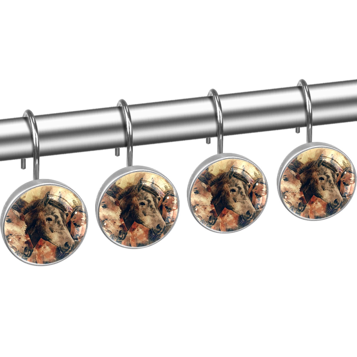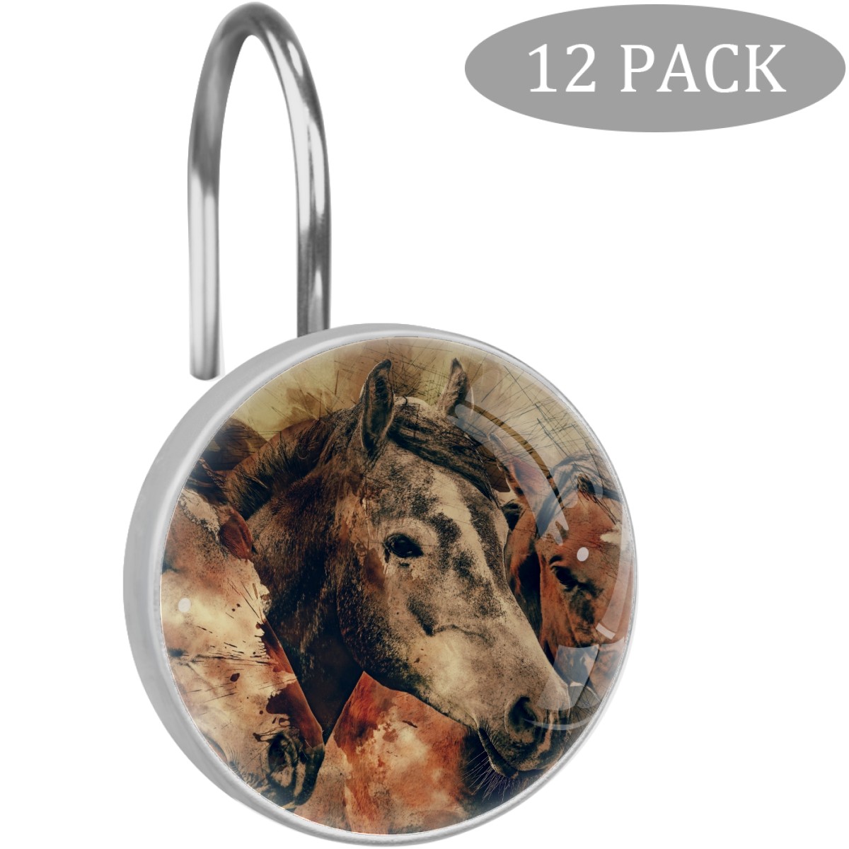 Decorative Shower Curtain Hooks Set of 12 Horse Head Animals Mammal Resin Shower Hooks for Curtain Shower Rings for Bathroom Home Hotel Shower Rods
