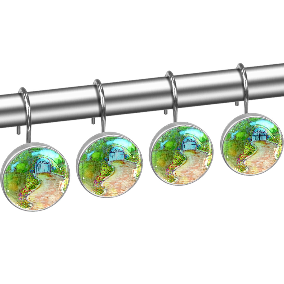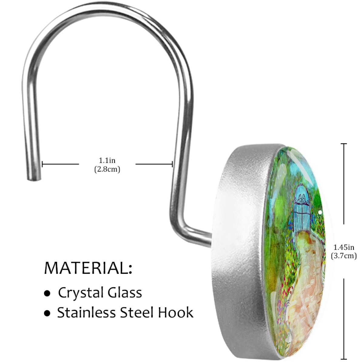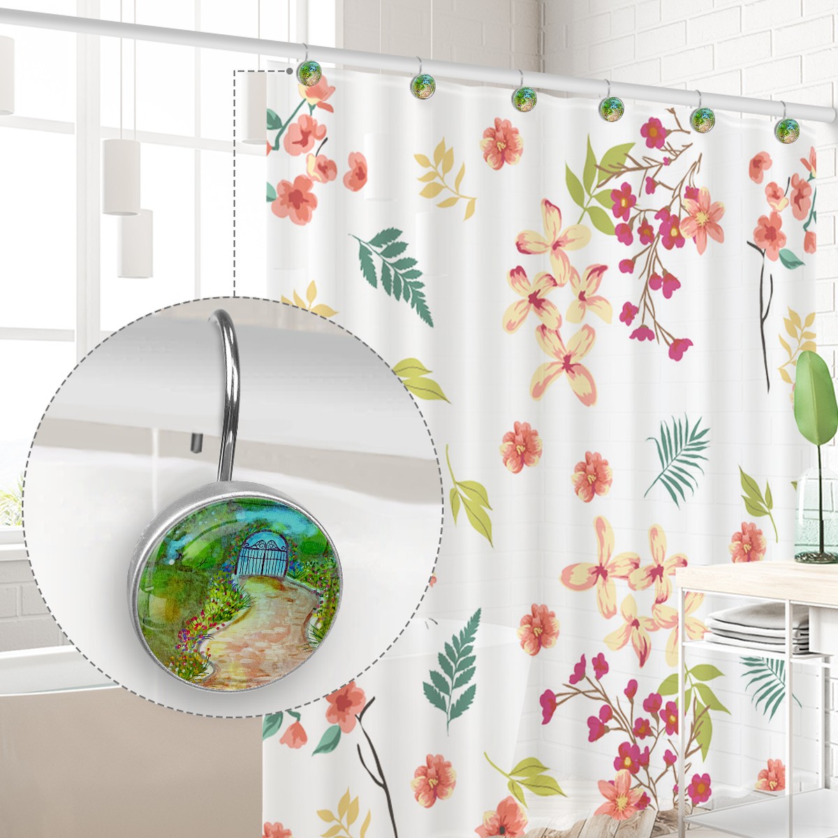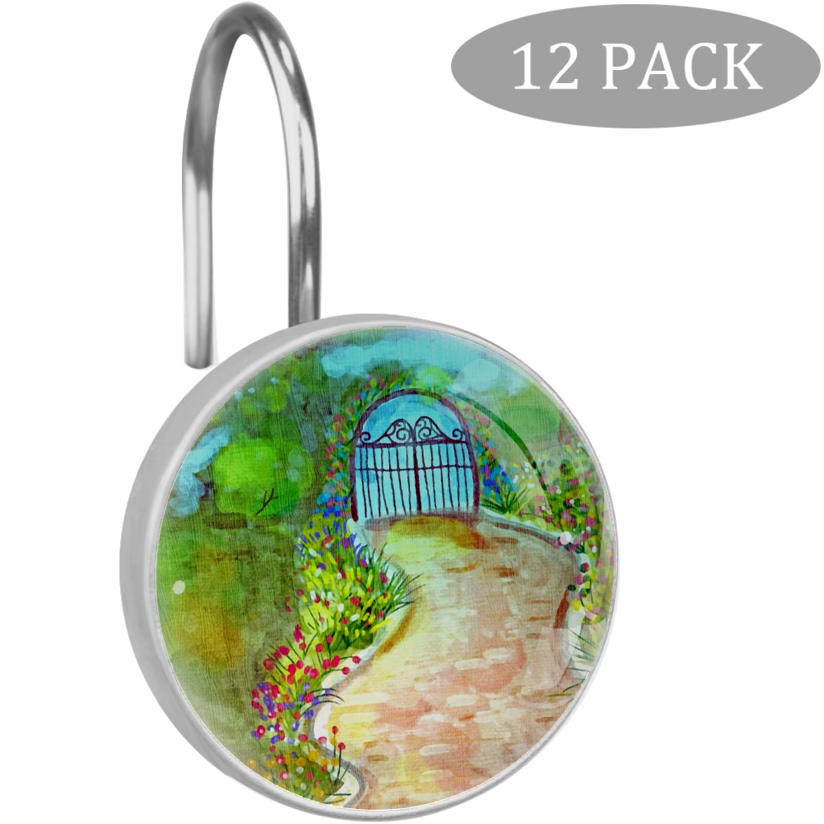 <p>This set of 12 durable hooks attach easily to any standard shower curtain, liner, and rod system to keep the curtain securely attached and evenly draped. </p><p> </p><p>- Impressively durable with sturdiness to hold up any shower curtain.</p><p> </p><p>- <b>Easy to install</b>: simply thread through existing holes and hang over shower rod.</p><p> </p><p>- Vibrant print on one side which adds style to your shower rod.</p><p> </p><p>- Astoundingly gorgeous design to <b>Decorate your bathroom</b>.</p><p> </p><p><b>Package Including</b></p><p>12*Shower Curtain Hooks</p><p> </p><p><b>Notes</b></p><p>1. Due to the different monitor and light effect, the actual color of the item might be slightly different from the color showed on the pictures. Thank you!</p><p>2. Please allow 2-3cm measuring deviation due to manual measurement.</p>