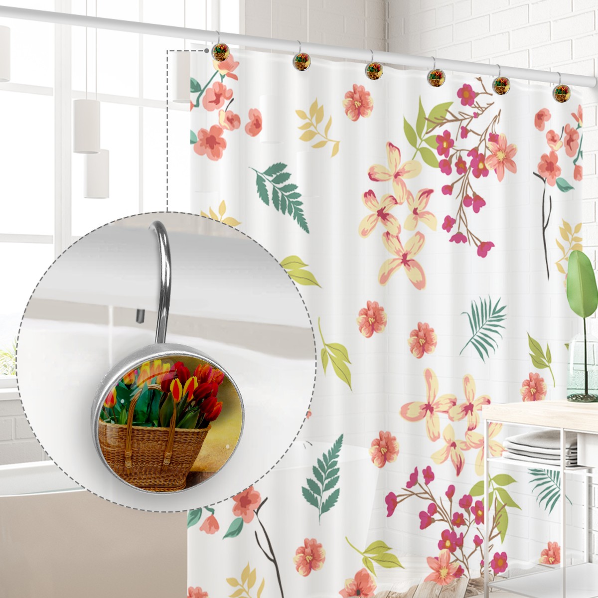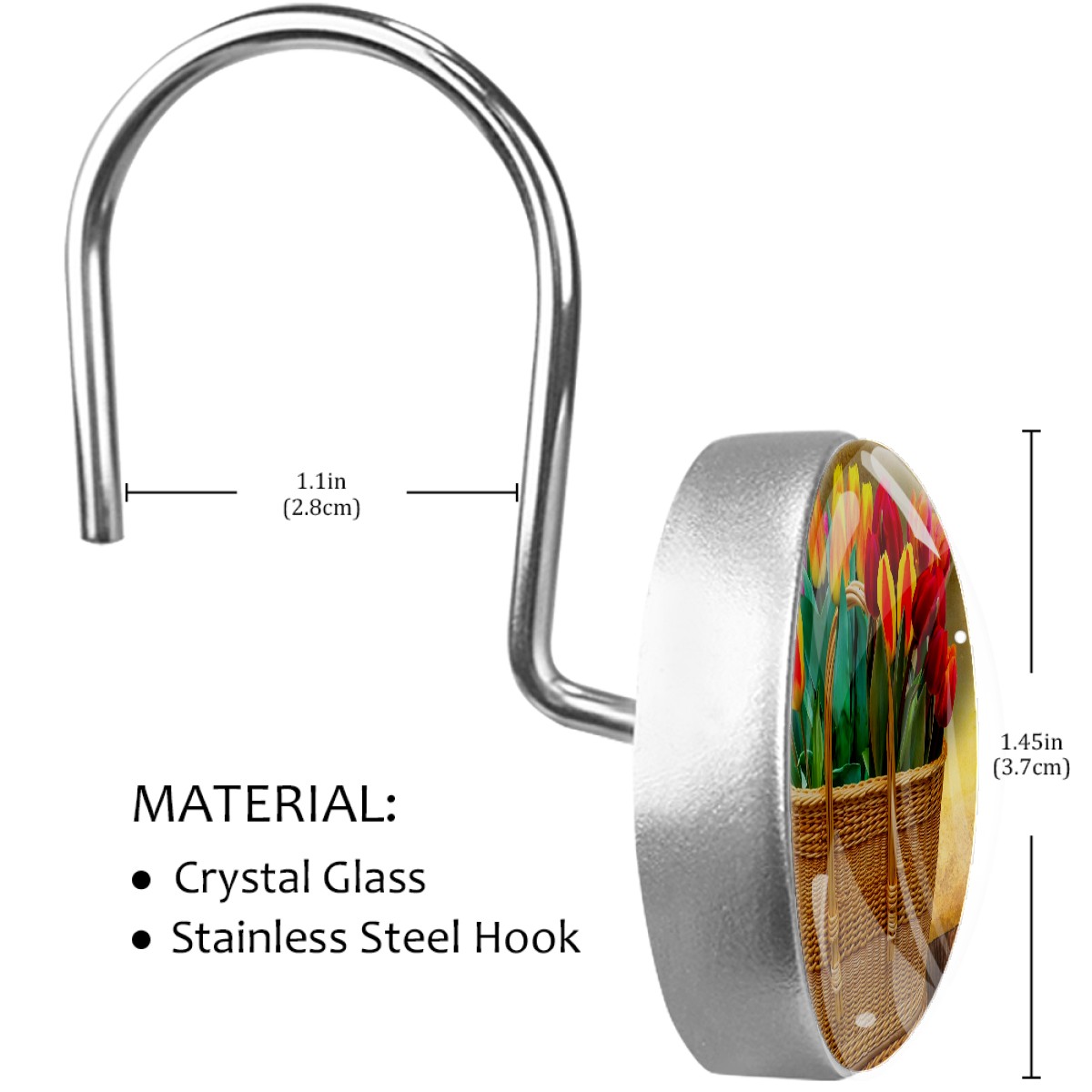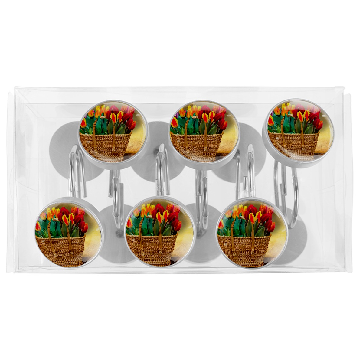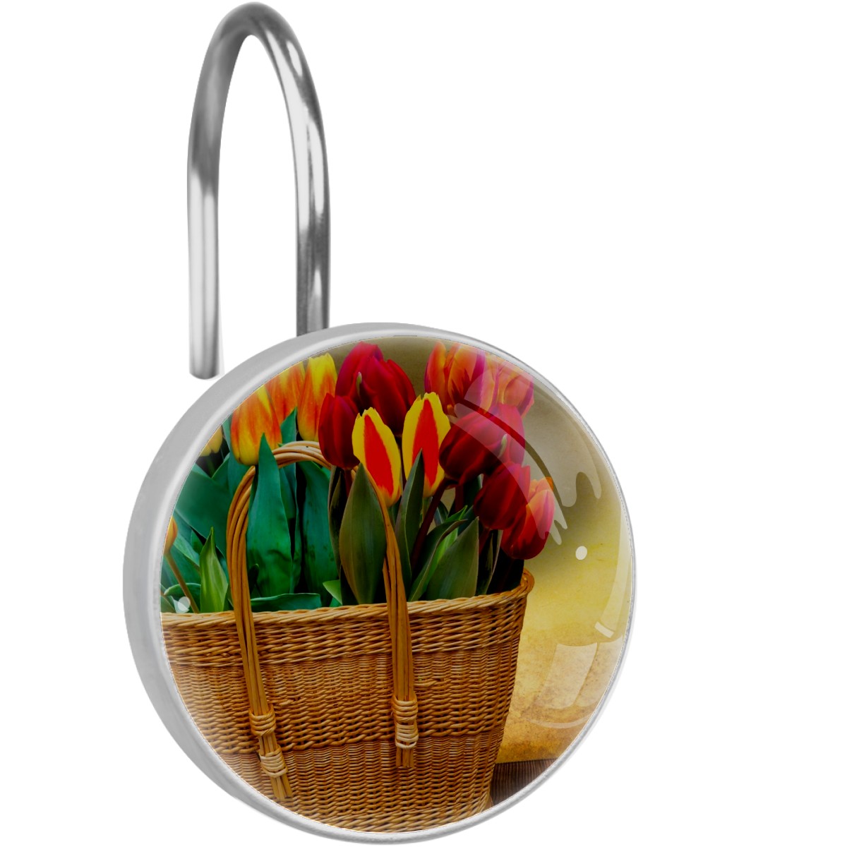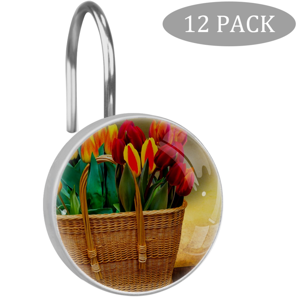 Decorative Shower Curtain Hooks Set of 12 Flowers Basket Tulips Resin Shower Hooks for Curtain Shower Rings for Bathroom Home Hotel Shower Rods
