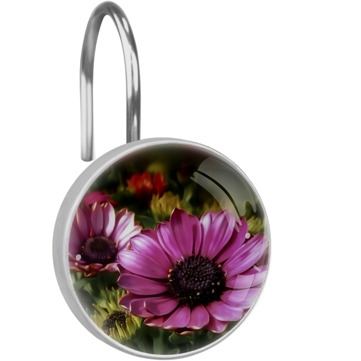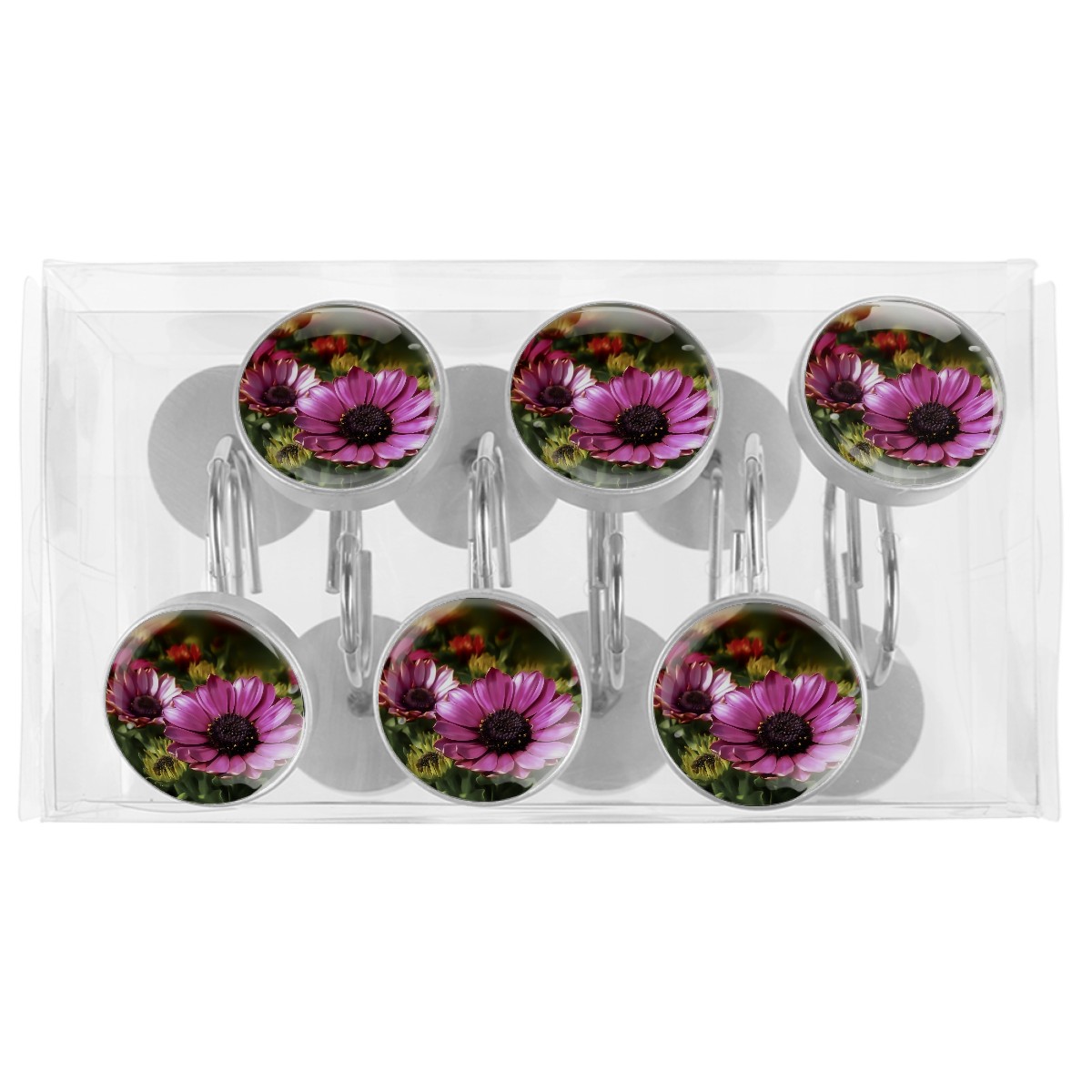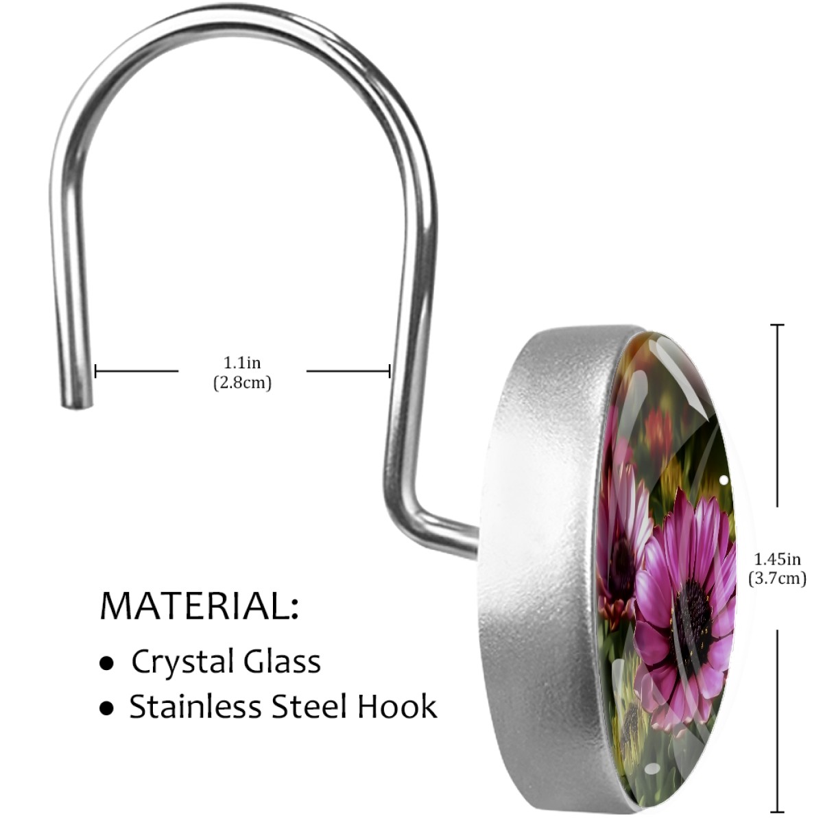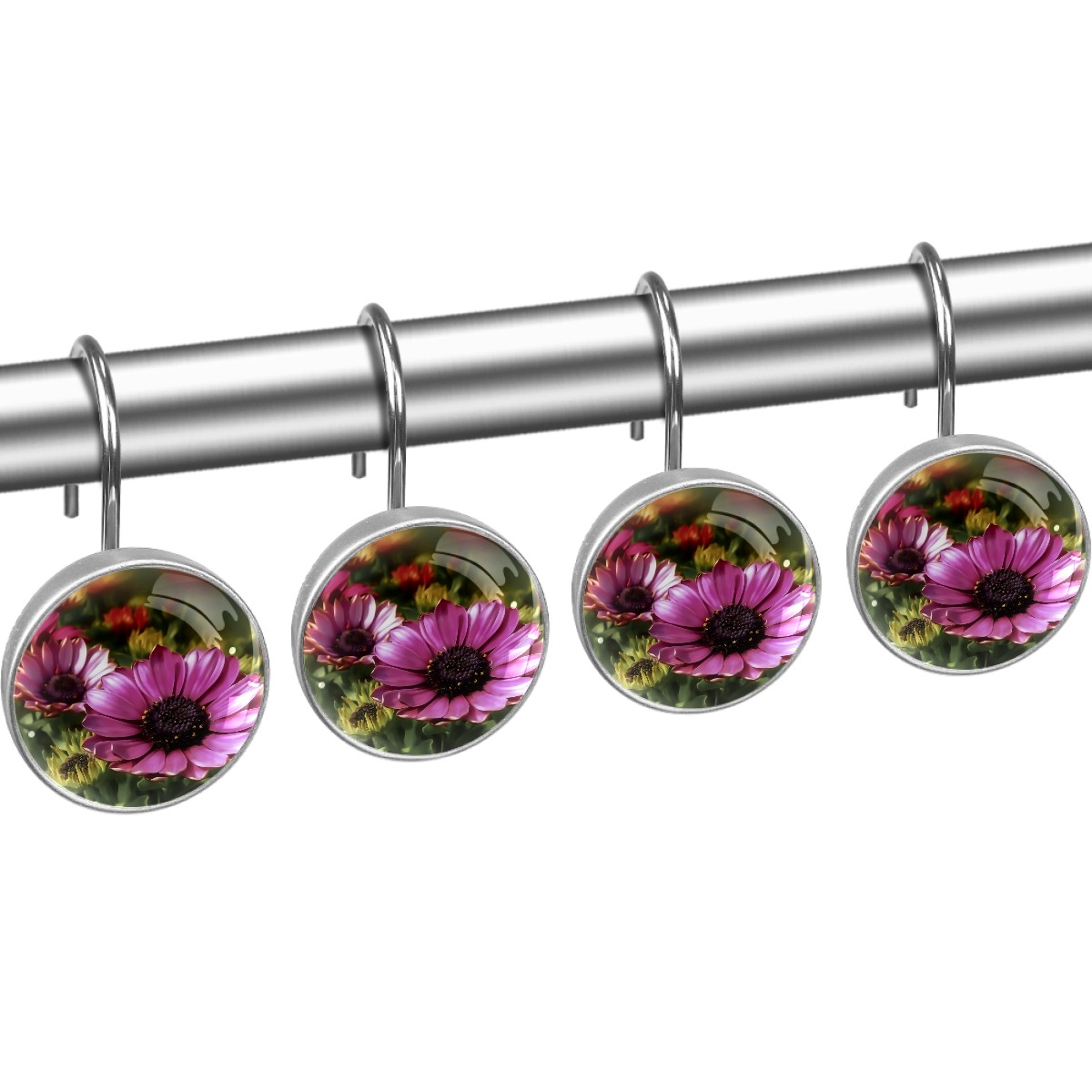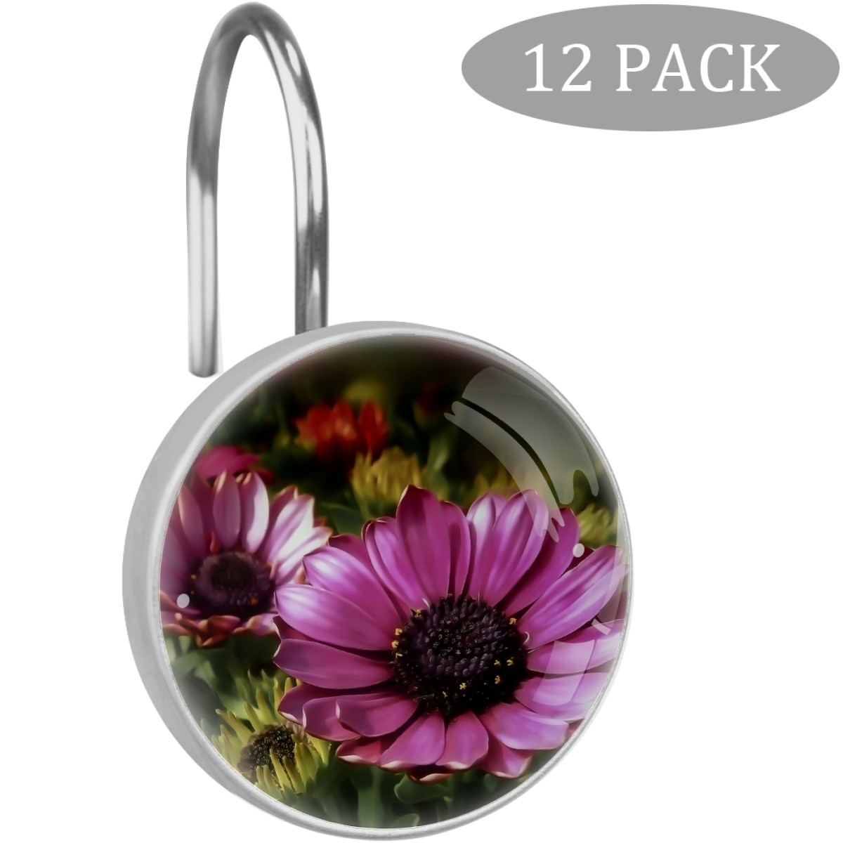Decorative Shower Curtain Hooks Set of 12 Flowers Nature Summer Resin Shower Hooks for Curtain Shower Rings for Bathroom Home Hotel Shower Rods