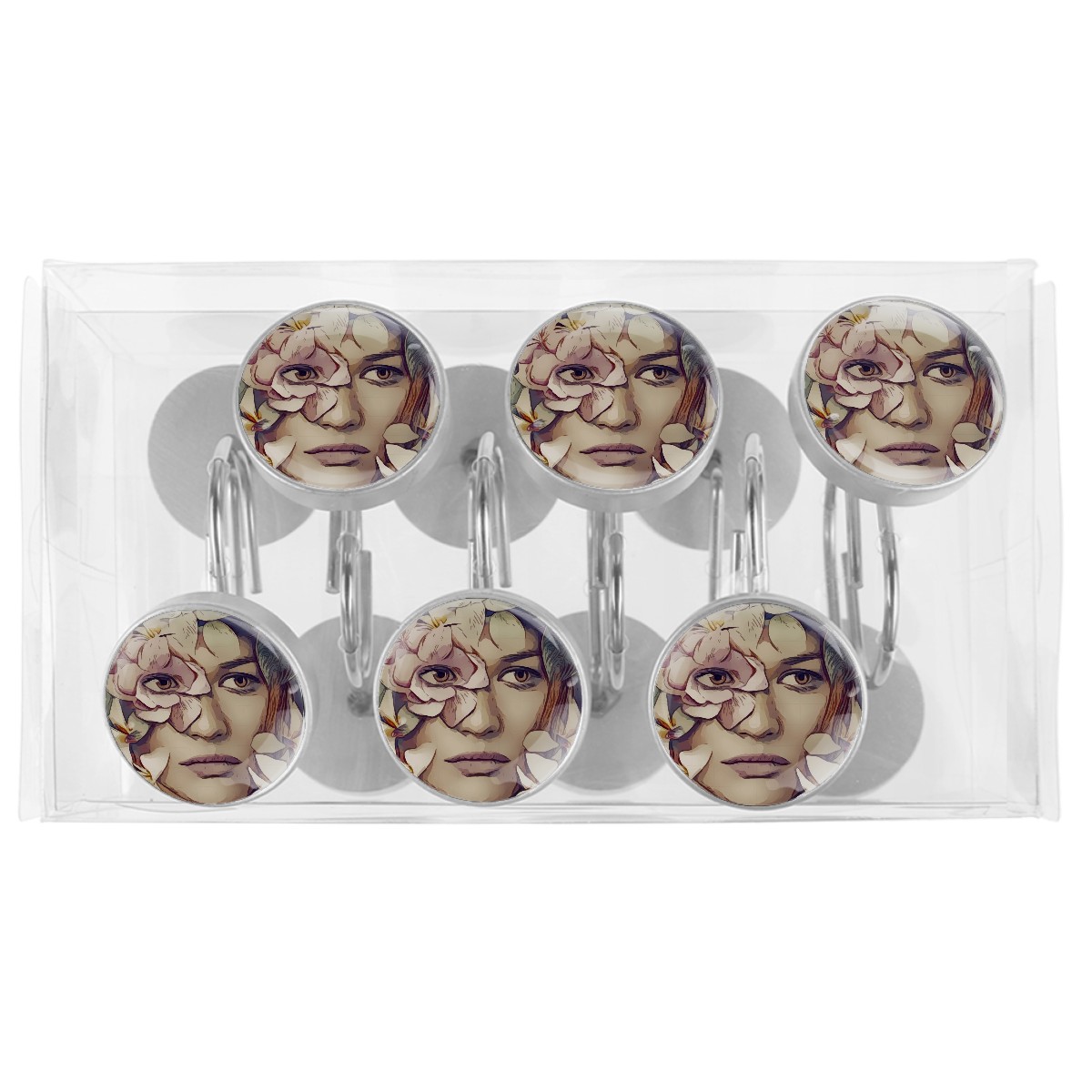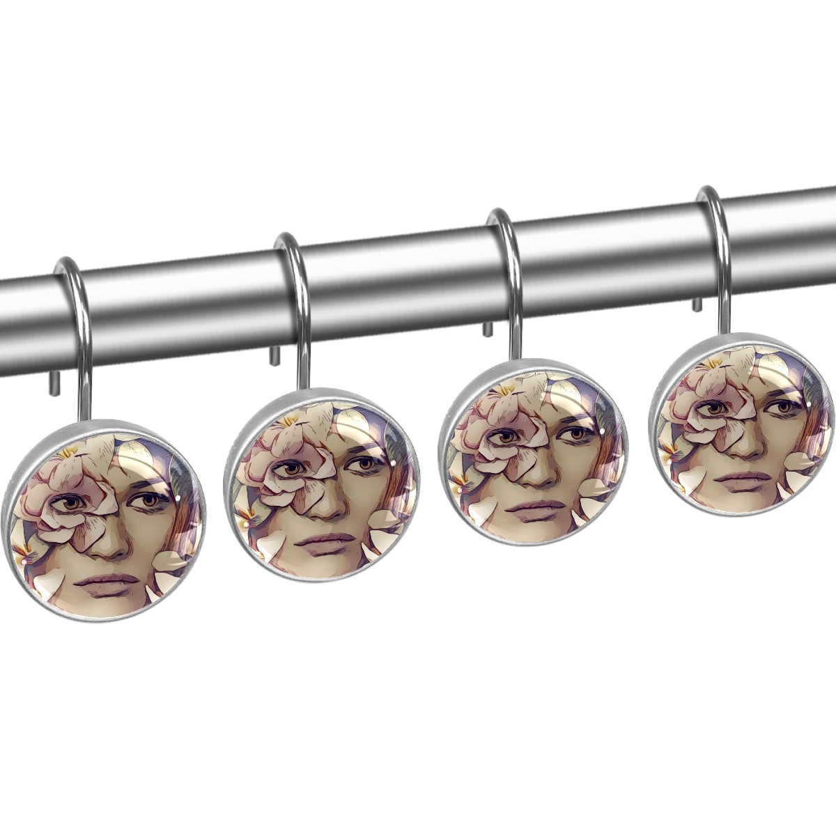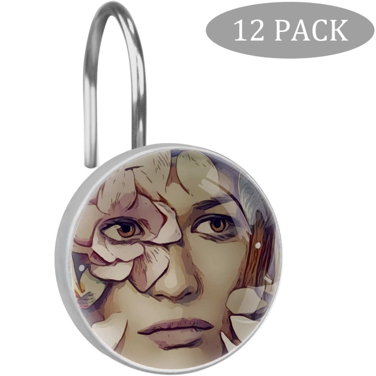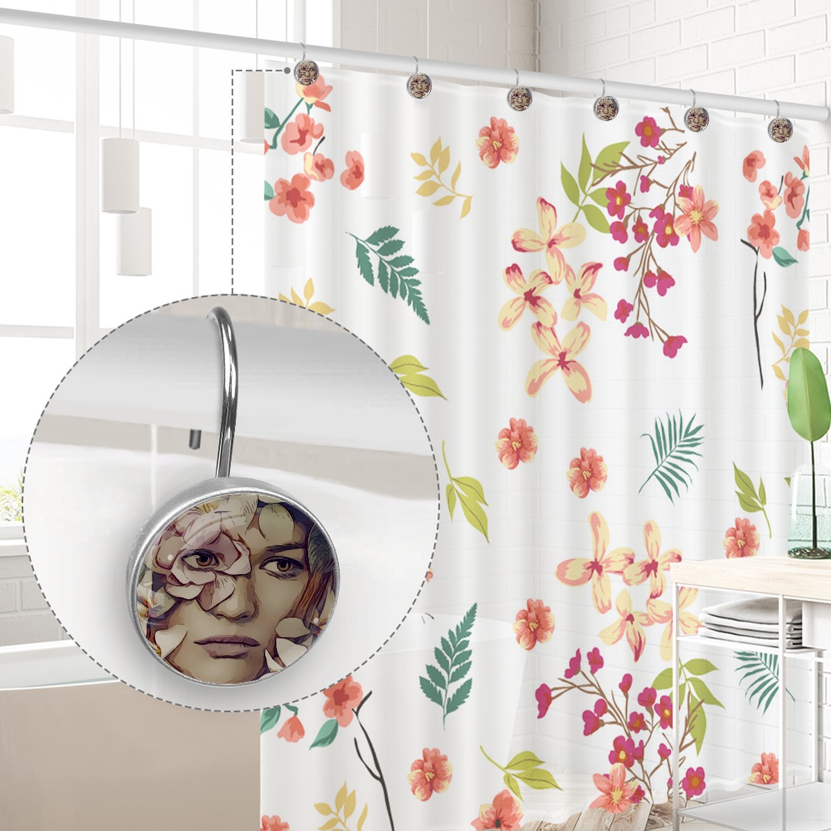 Decorative Shower Curtain Hooks Set of 12 Fairy Flowers Resin Shower Hooks for Curtain Shower Rings for Bathroom Home Hotel Shower Rods