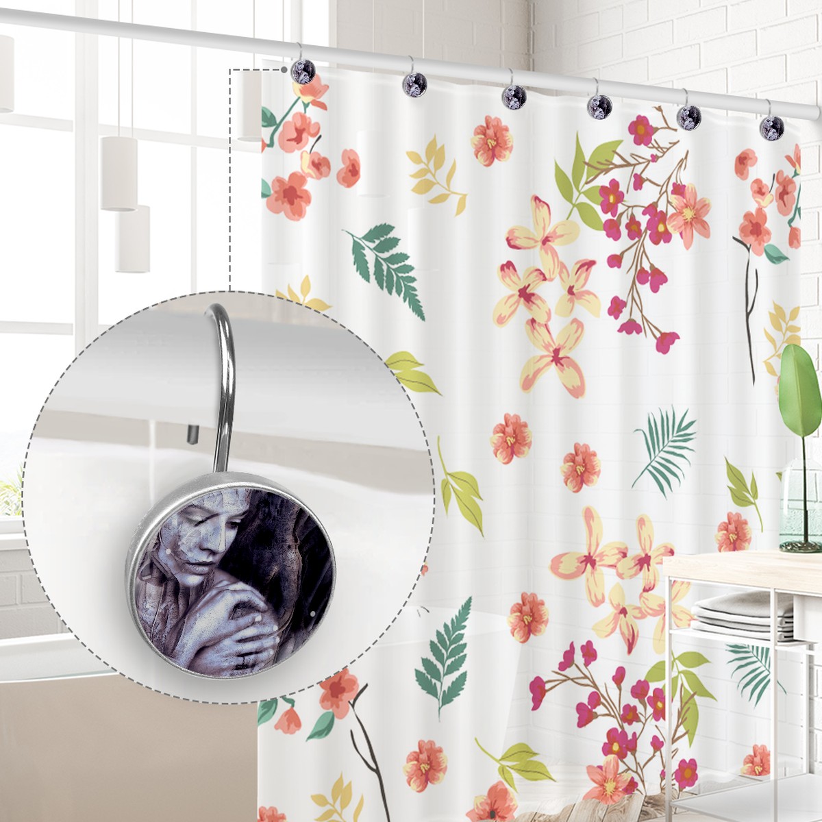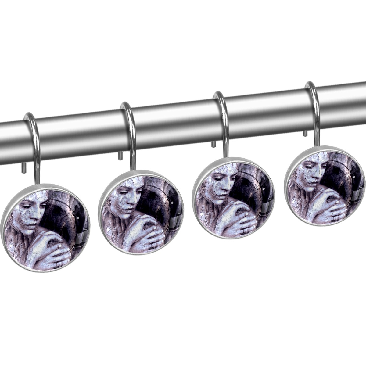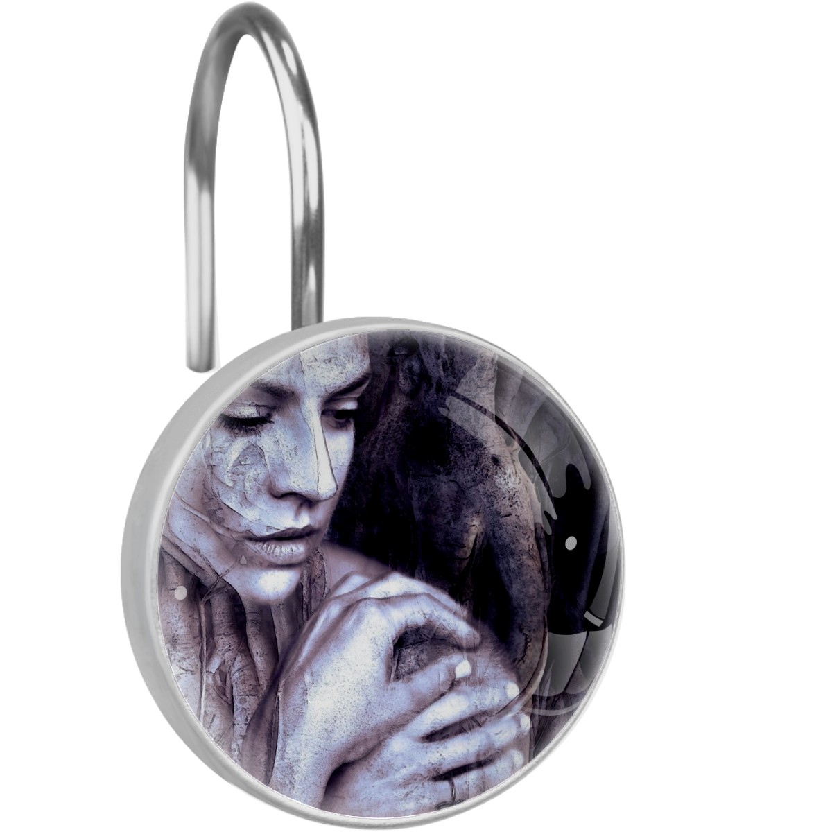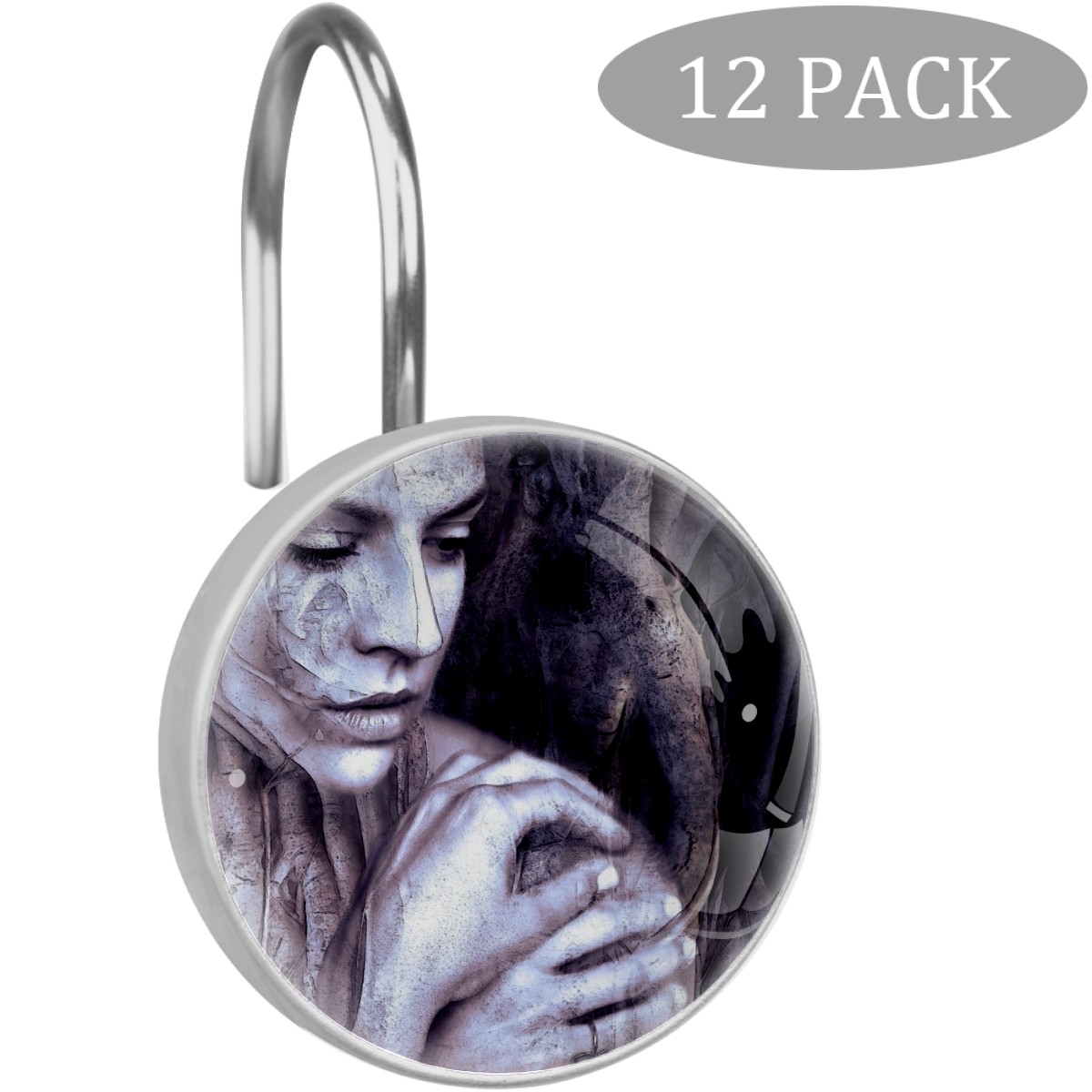 Decorative Shower Curtain Hooks Set of 12 Composing Woman Fantasy Face Resin Shower Hooks for Curtain Shower Rings for Bathroom Home Hotel Shower Rods