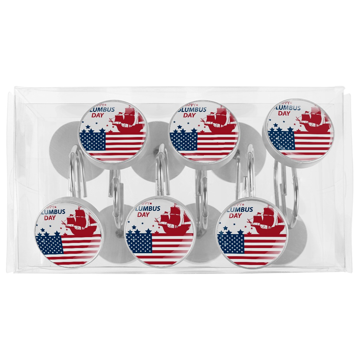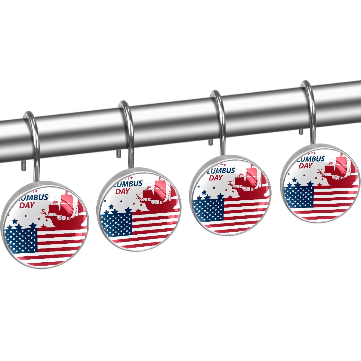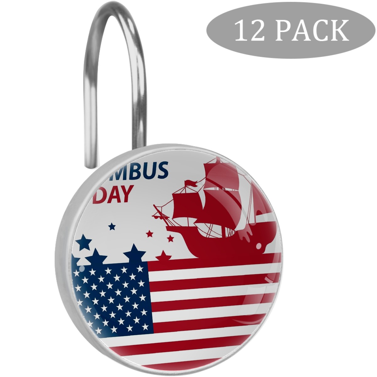 Decorative Shower Curtain Hooks Set of 12 Columbus Day Resin Shower Hooks for Curtain Shower Rings for Bathroom Home Hotel Shower Rods