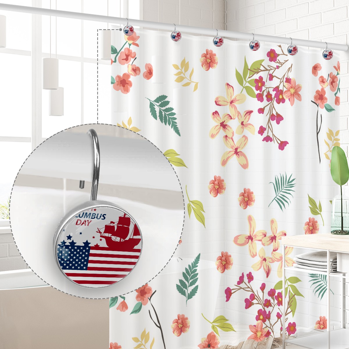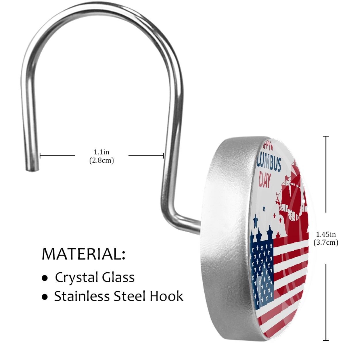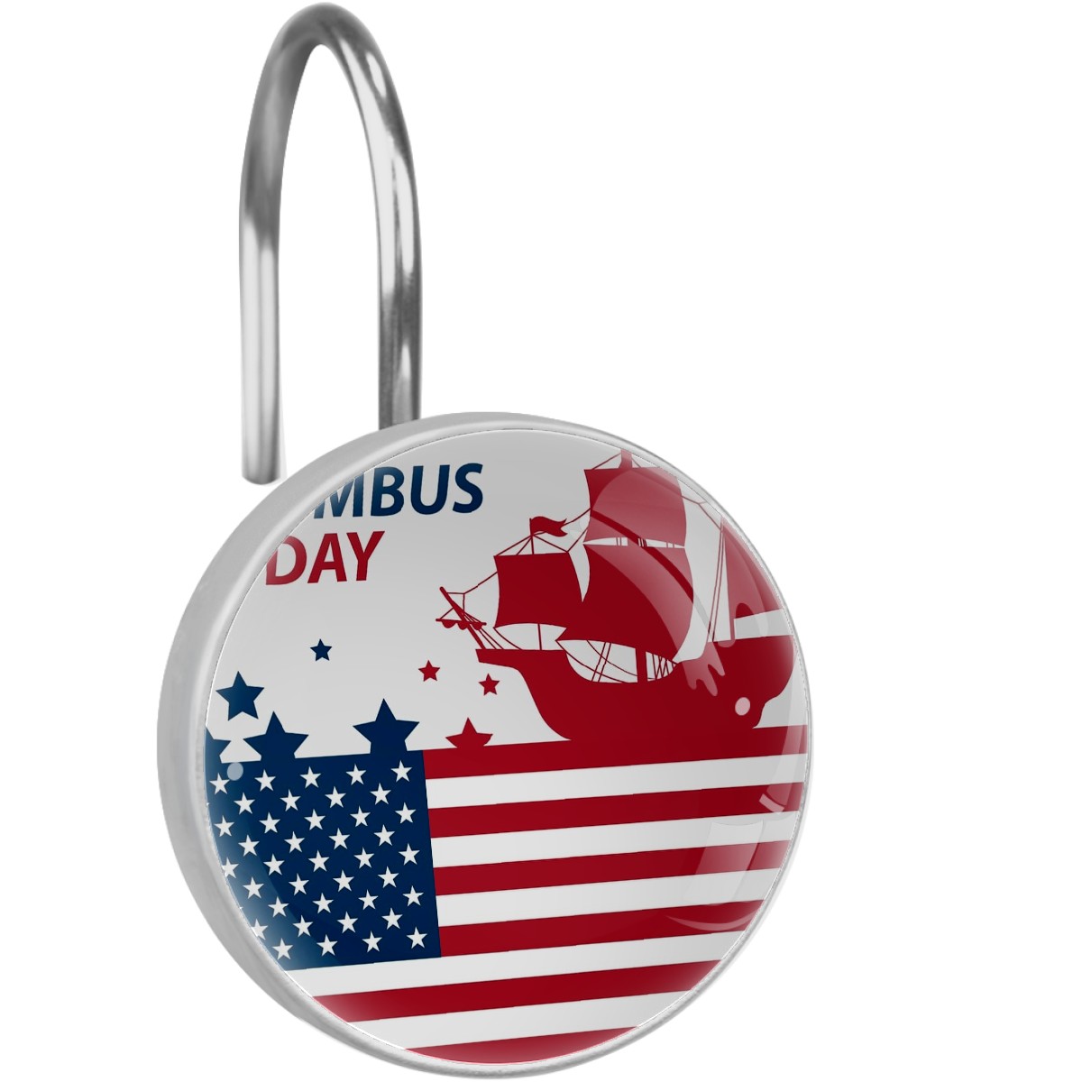 Decorative Shower Curtain Hooks Set of 12 Columbus Day Resin Shower Hooks for Curtain Shower Rings for Bathroom Home Hotel Shower Rods