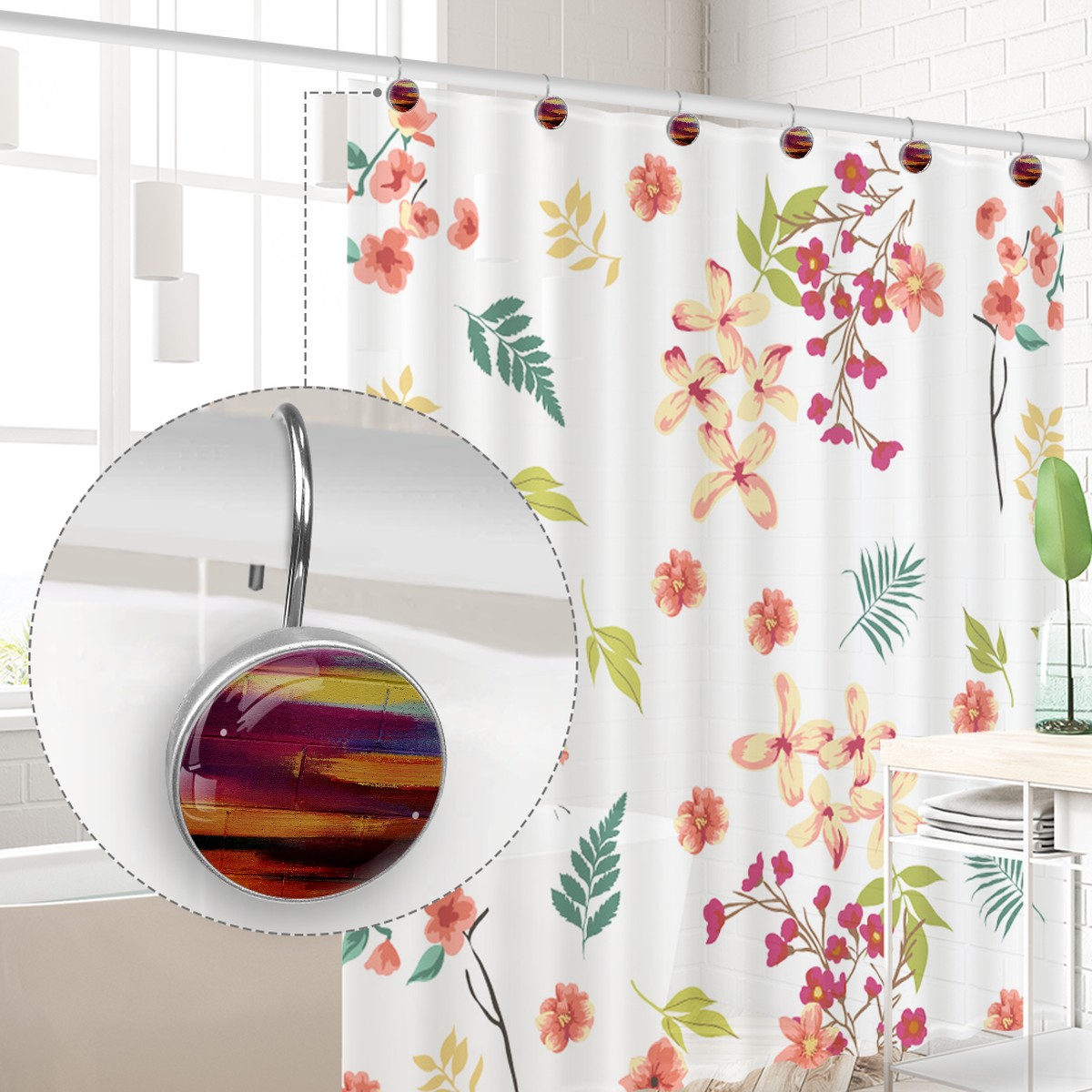 Decorative Shower Curtain Hooks Set of 12 Color Wall Art Resin Shower Hooks for Curtain Shower Rings for Bathroom Home Hotel Shower Rods