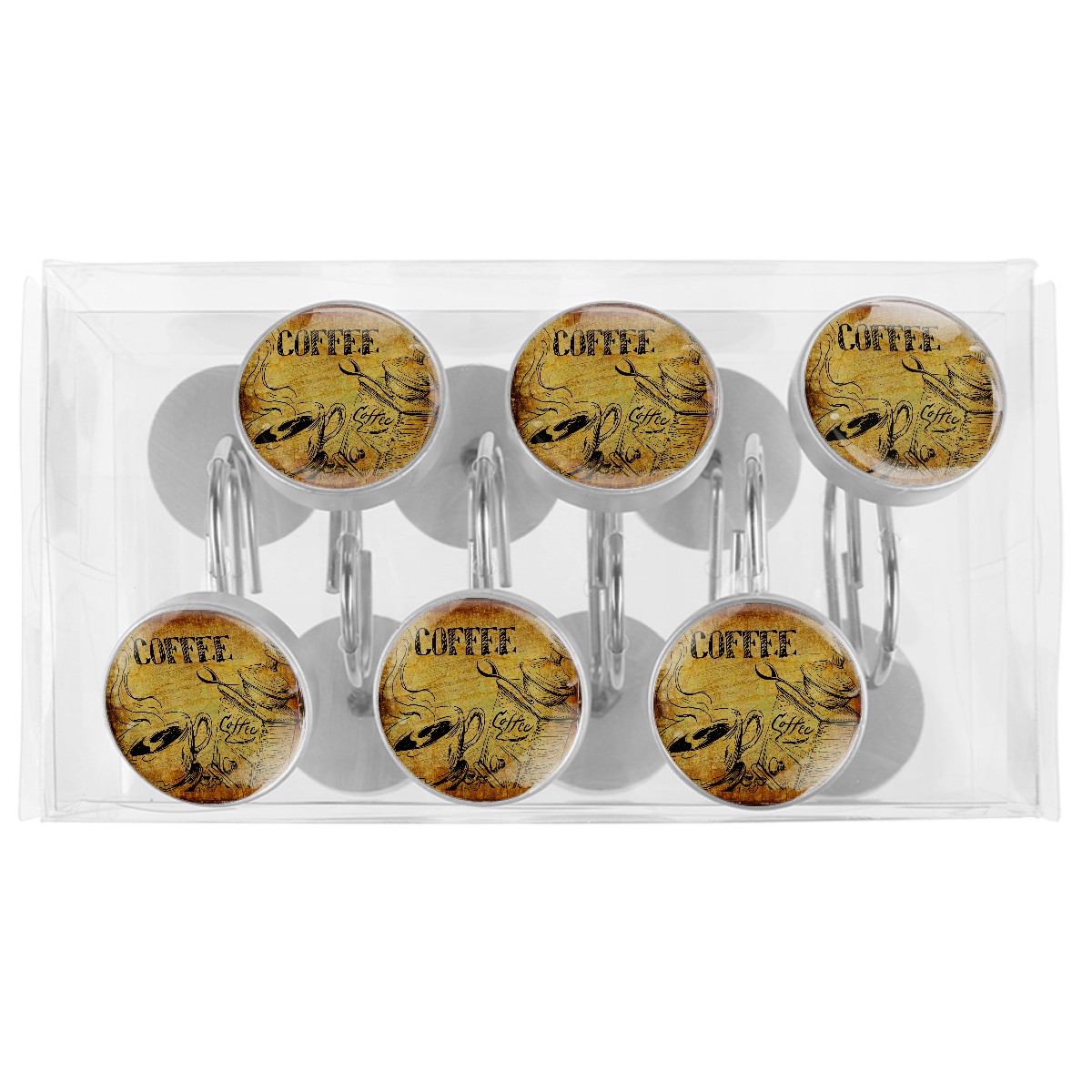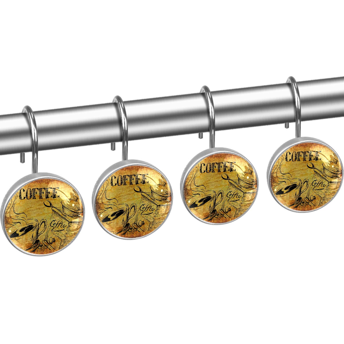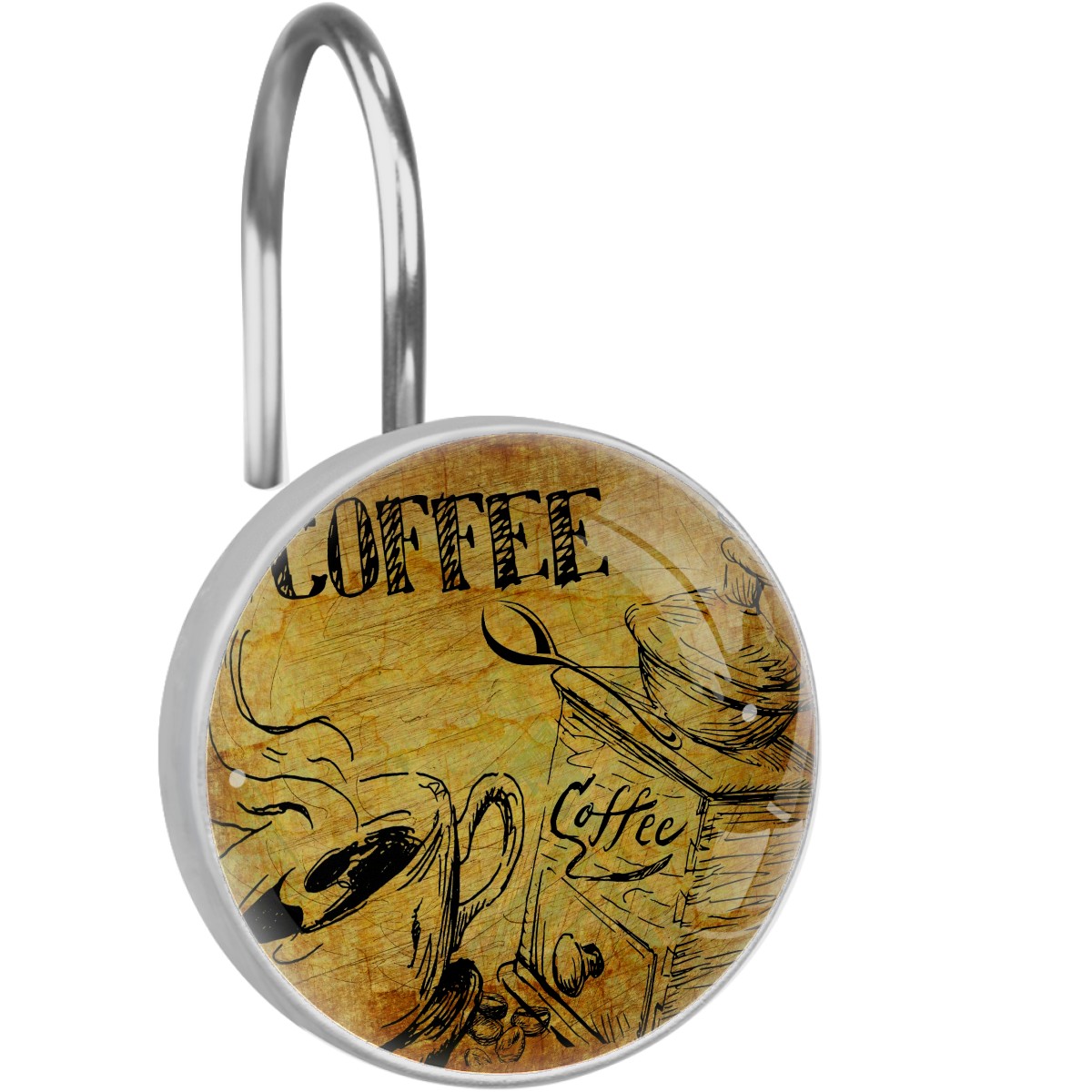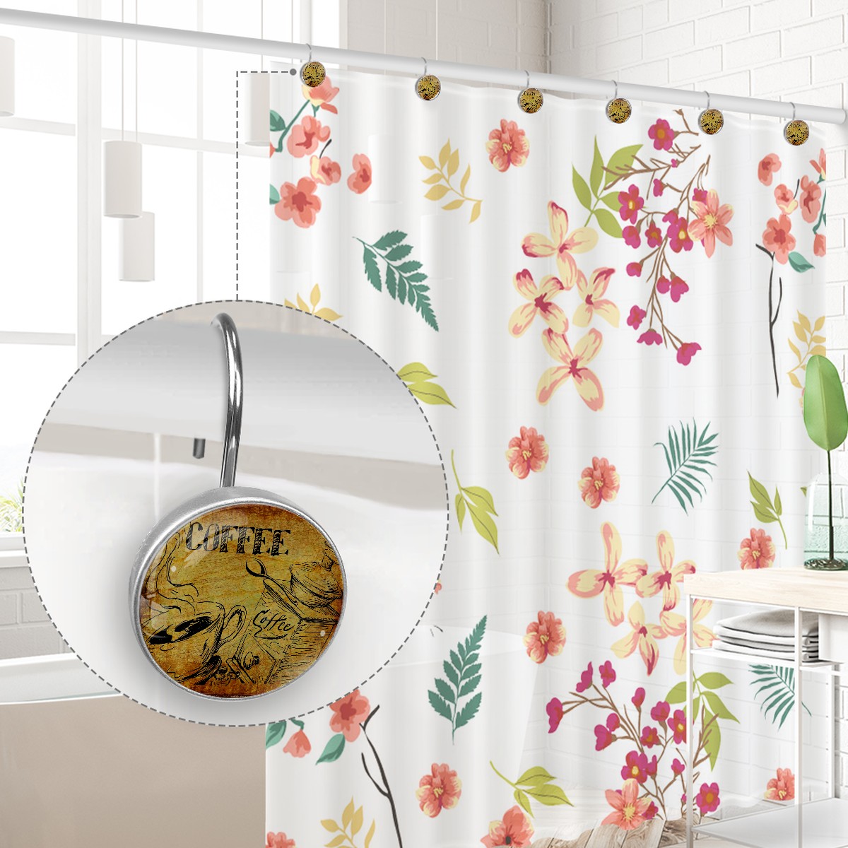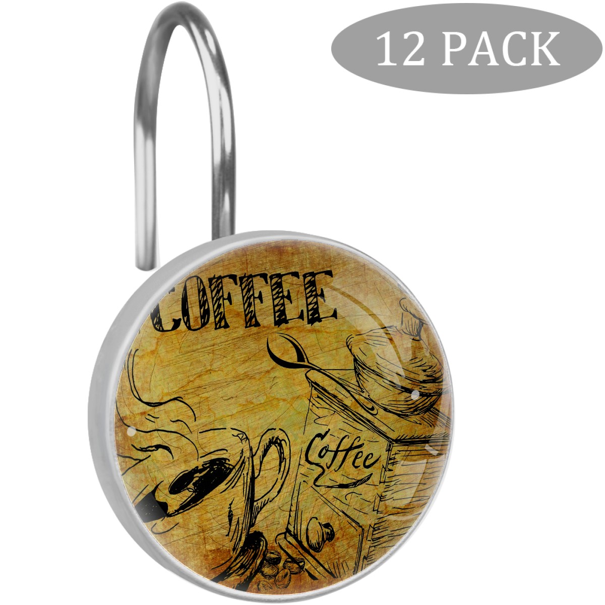 Decorative Shower Curtain Hooks Set of 12 Coffee Vintage Cafe Drink Espresso Resin Shower Hooks for Curtain Shower Rings for Bathroom Home Hotel Shower Rods