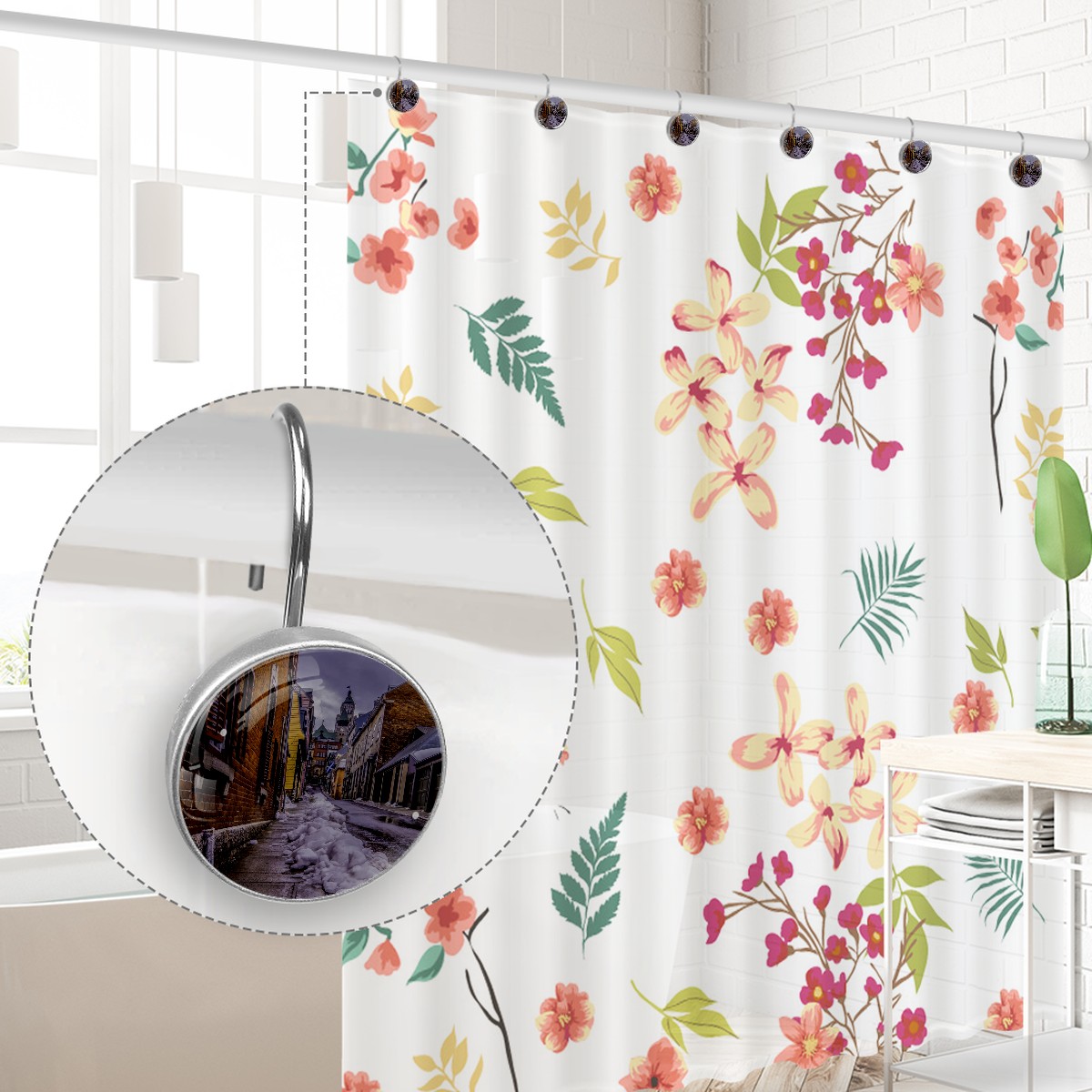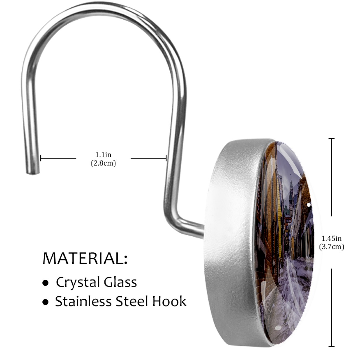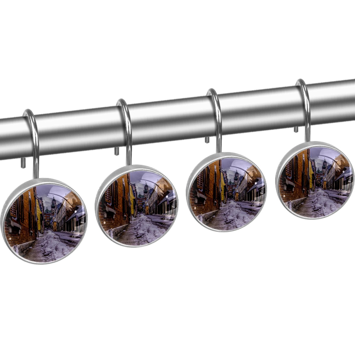 Decorative Shower Curtain Hooks Set of 12 City Street Resin Shower Hooks for Curtain Shower Rings for Bathroom Home Hotel Shower Rods