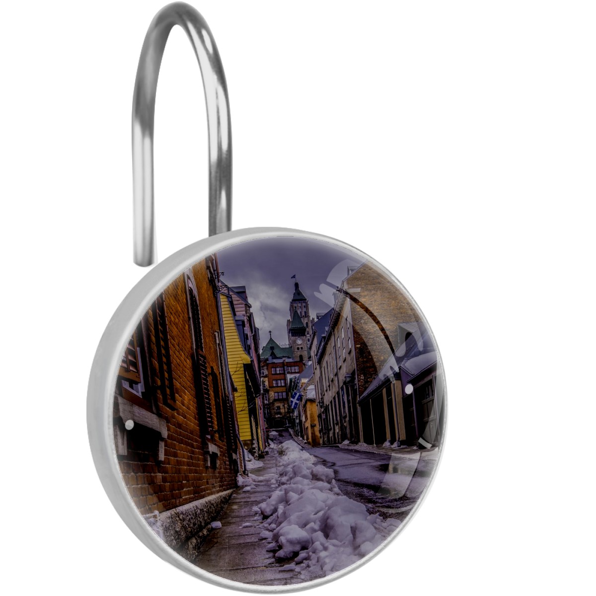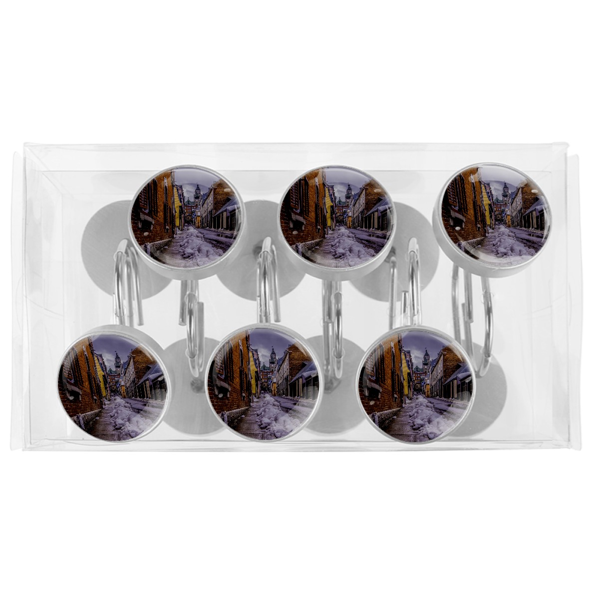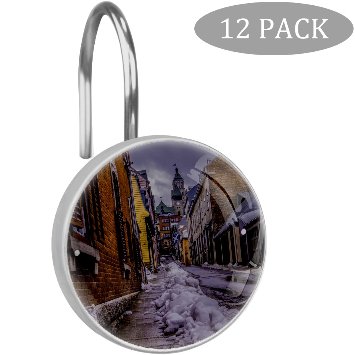 Decorative Shower Curtain Hooks Set of 12 City Street Resin Shower Hooks for Curtain Shower Rings for Bathroom Home Hotel Shower Rods