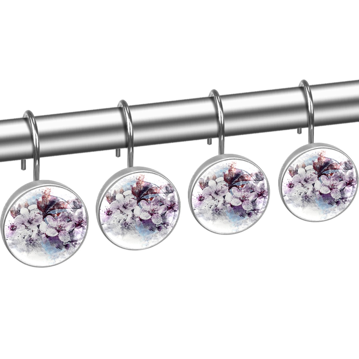 Decorative Shower Curtain Hooks Set of 12 Cherry Blossom Resin Shower Hooks for Curtain Shower Rings for Bathroom Home Hotel Shower Rods