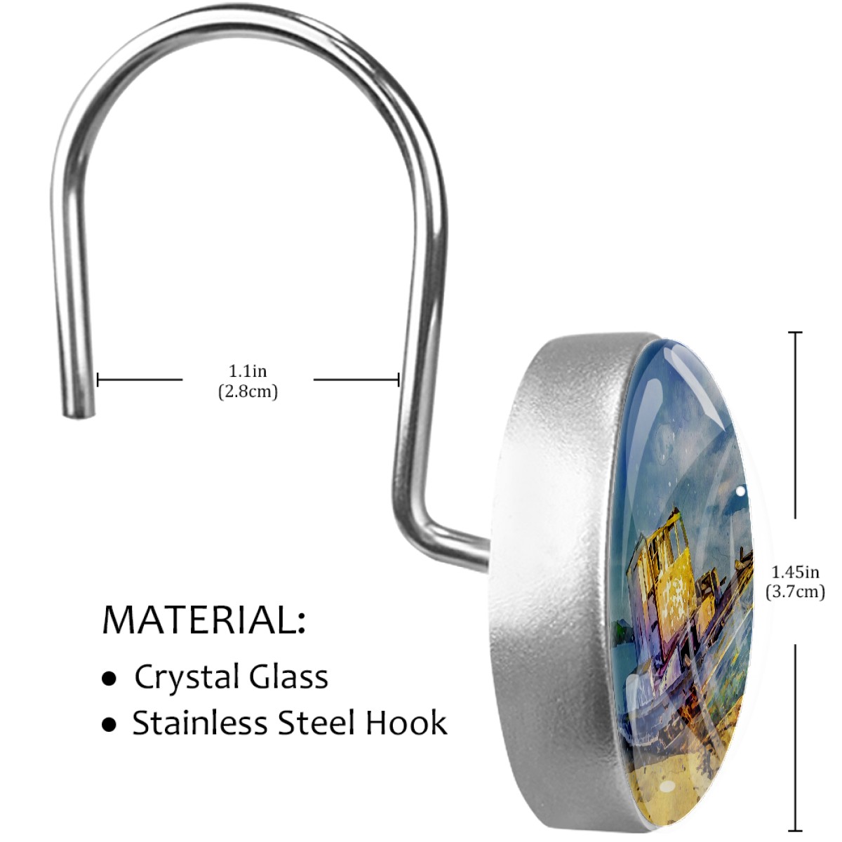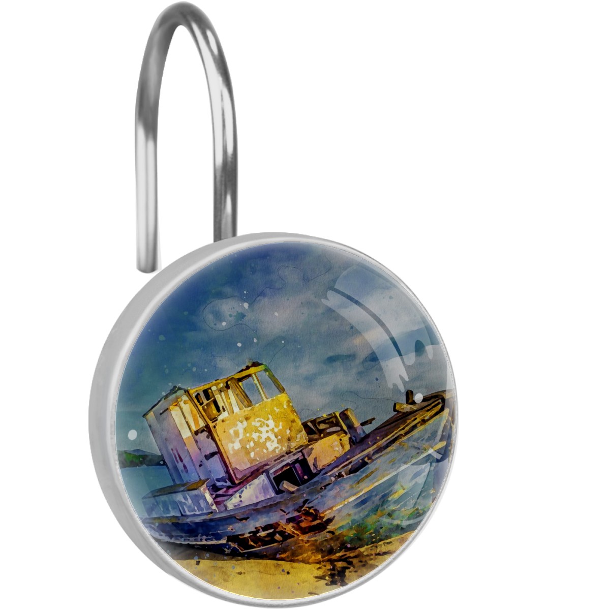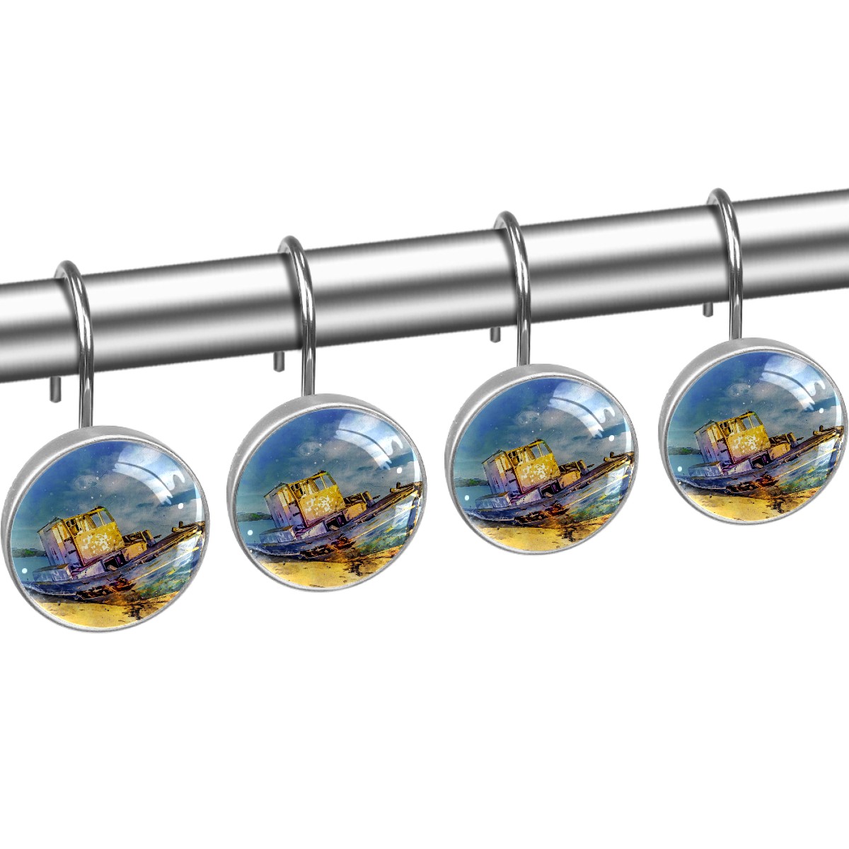Decorative Shower Curtain Hooks Set of 12 Boat Sea Sky Landscape Nature Resin Shower Hooks for Curtain Shower Rings for Bathroom Home Hotel Shower Rods