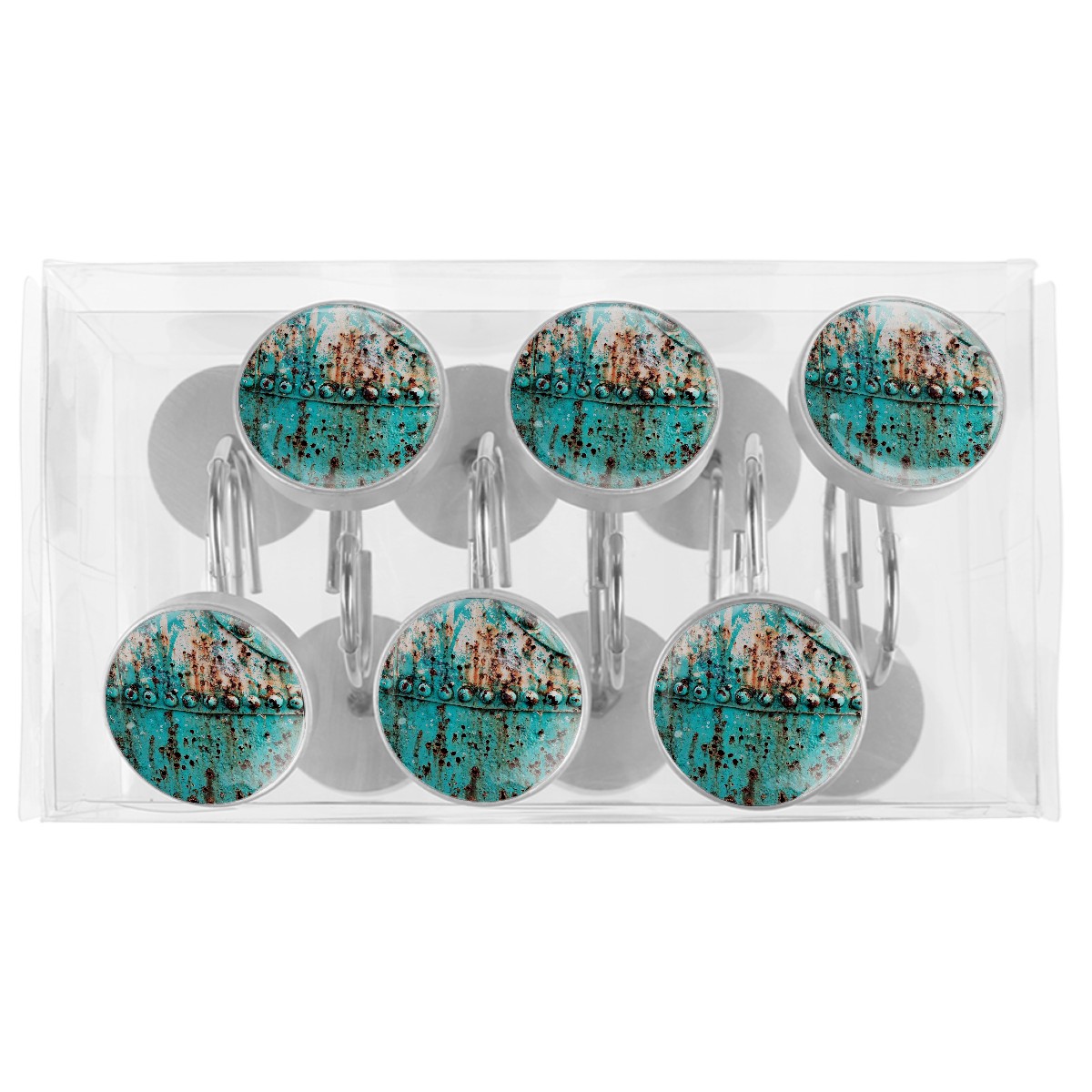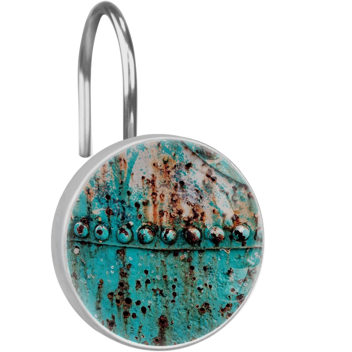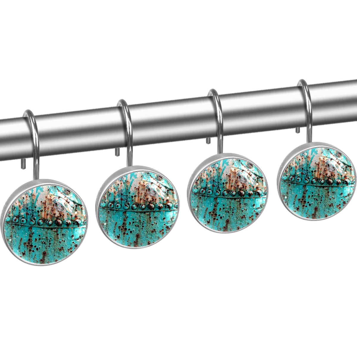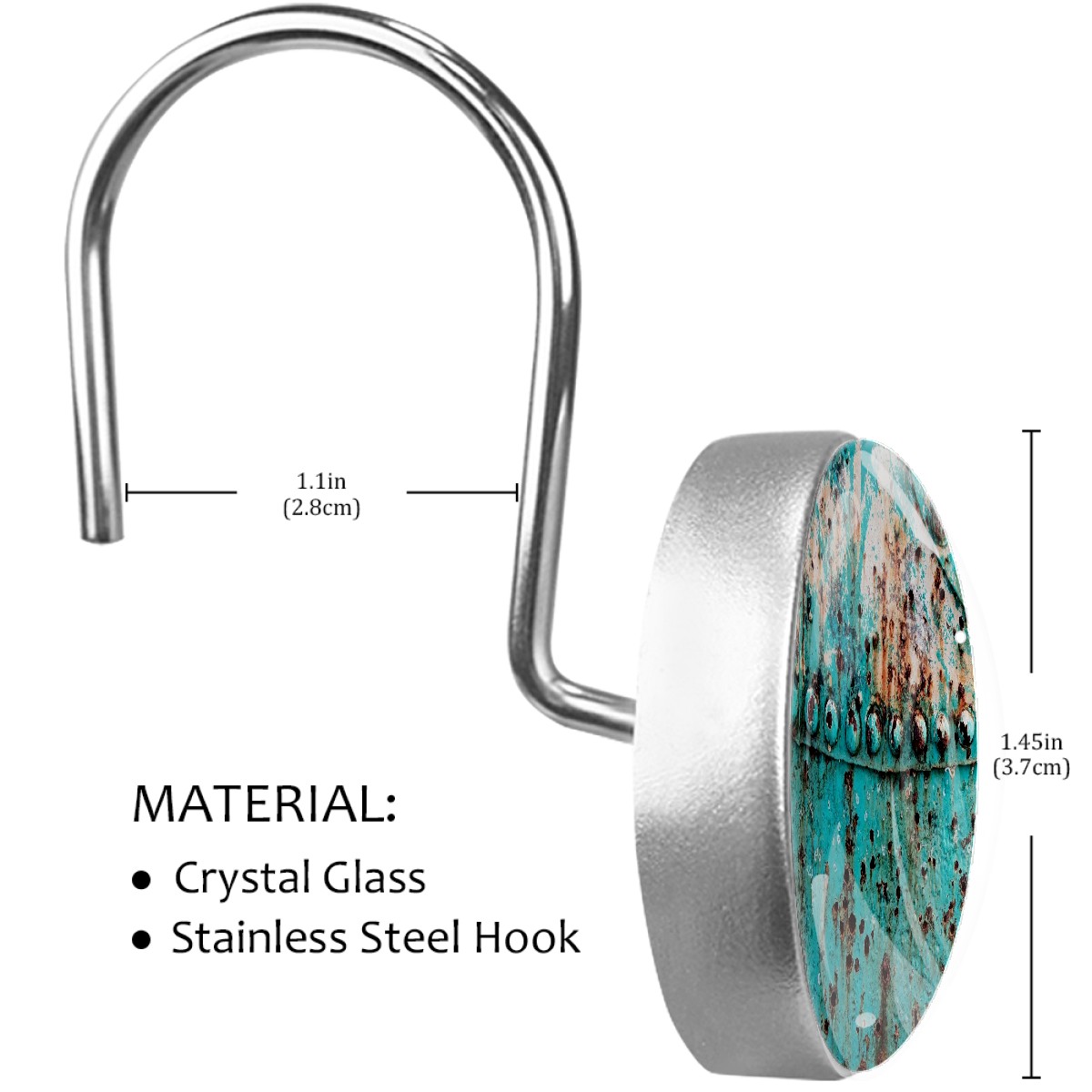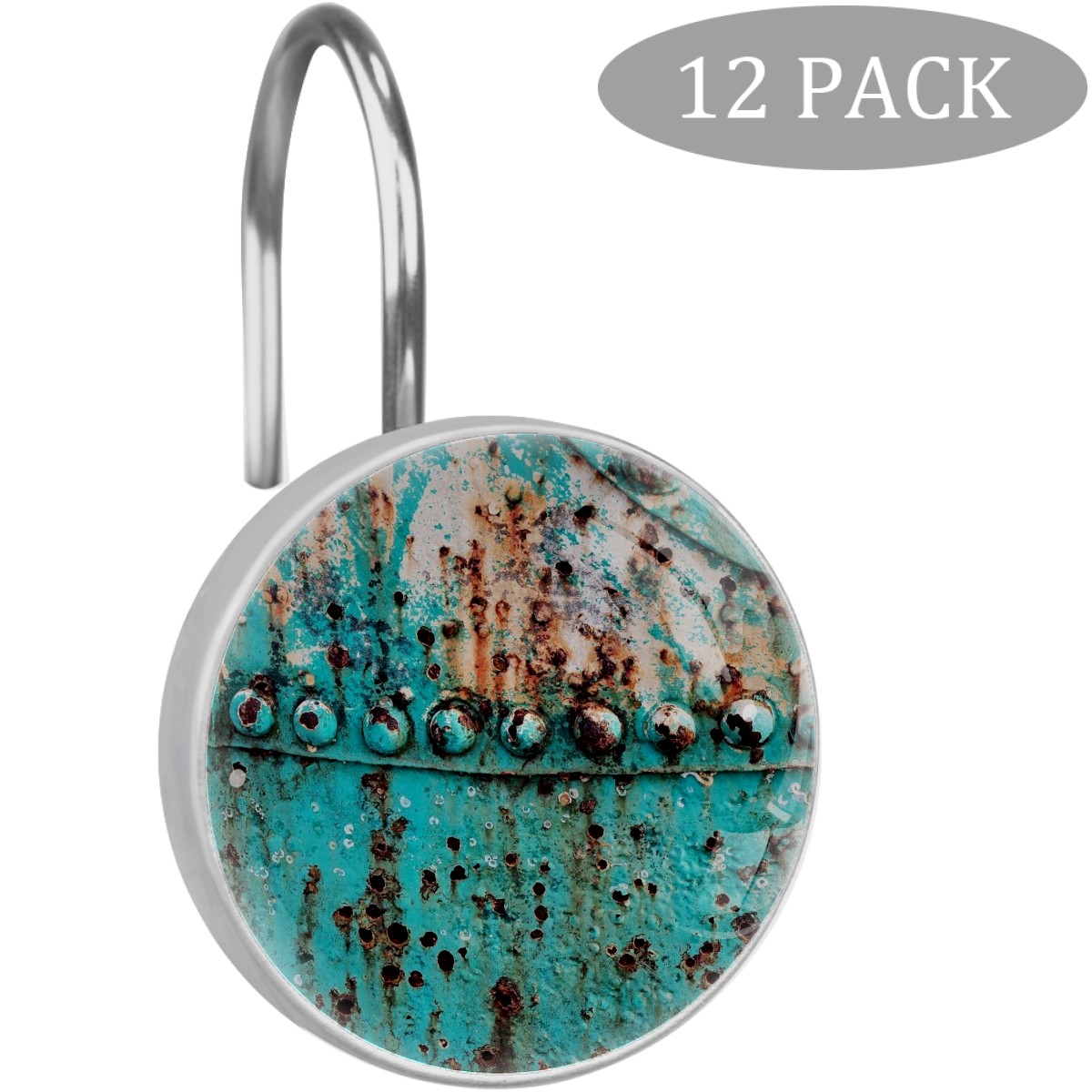 Decorative Shower Curtain Hooks Set of 12 Buoy Corroded Rusty Metal Steel Resin Shower Hooks for Curtain Shower Rings for Bathroom Home Hotel Shower Rods