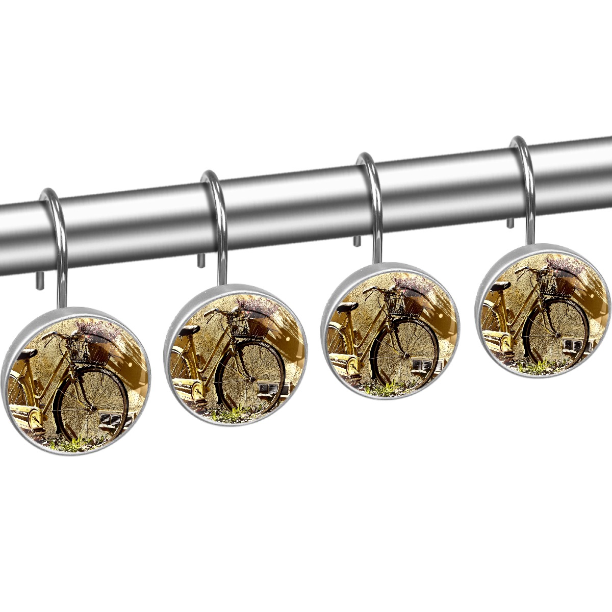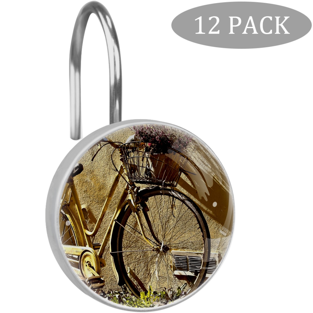 Decorative Shower Curtain Hooks Set of 12 Bike Bicycle Wheels Resin Shower Hooks for Curtain Shower Rings for Bathroom Home Hotel Shower Rods