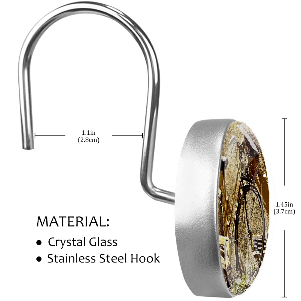 <p>This set of 12 durable hooks attach easily to any standard shower curtain, liner, and rod system to keep the curtain securely attached and evenly draped. </p><p>&nbsp;</p><p>- Impressively durable with sturdiness to hold up any shower curtain.</p><p>&nbsp;</p><p>- <b>Easy to install</b>: simply thread through existing holes and hang over shower rod.</p><p>&nbsp;</p><p>- Vibrant print on one side which adds style to your shower rod.</p><p>&nbsp;</p><p>- Astoundingly gorgeous design to <b>Decorate your bathroom</b>.</p><p>&nbsp;</p><p><b>Package Including</b></p><p>12*Shower Curtain Hooks</p><p>&nbsp;</p><p><b>Notes</b></p><p>1. Due to the different monitor and light effect, the actual color of the item might be slightly different from the color showed on the pictures. Thank you!</p><p>2. Please allow 2-3cm measuring deviation due to manual measurement.</p>