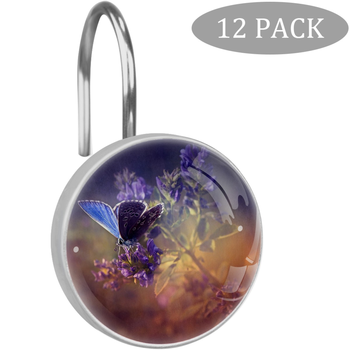 • <p>This set of 12 durable hooks attach easily to any standard shower curtain, liner, and rod system to keep the curtain securely attached and evenly draped. </p><p>&nbsp;</p><p>- Impressively durable with sturdiness to hold up any shower curtain.</p><p>&nbsp;</p><p>- <b>Easy to install</b>: simply thread through existing holes and hang over shower rod.</p><p>&nbsp;</p><p>- Vibrant print on one side which adds style to your shower rod.</p><p>&nbsp;</p><p>- Astoundingly gorgeous design to <b>Decorate your bathroom</b>.</p><p>&nbsp;</p><p><b>Package Including</b></p><p>12*Shower Curtain Hooks</p><p>&nbsp;</p><p><b>Notes</b></p><p>1. Due to the different monitor and light effect, the actual color of the item might be slightly different from the color showed on the pictures. Thank you!</p><p>2. Please allow 2-3cm measuring deviation due to manual measurement.</p>
