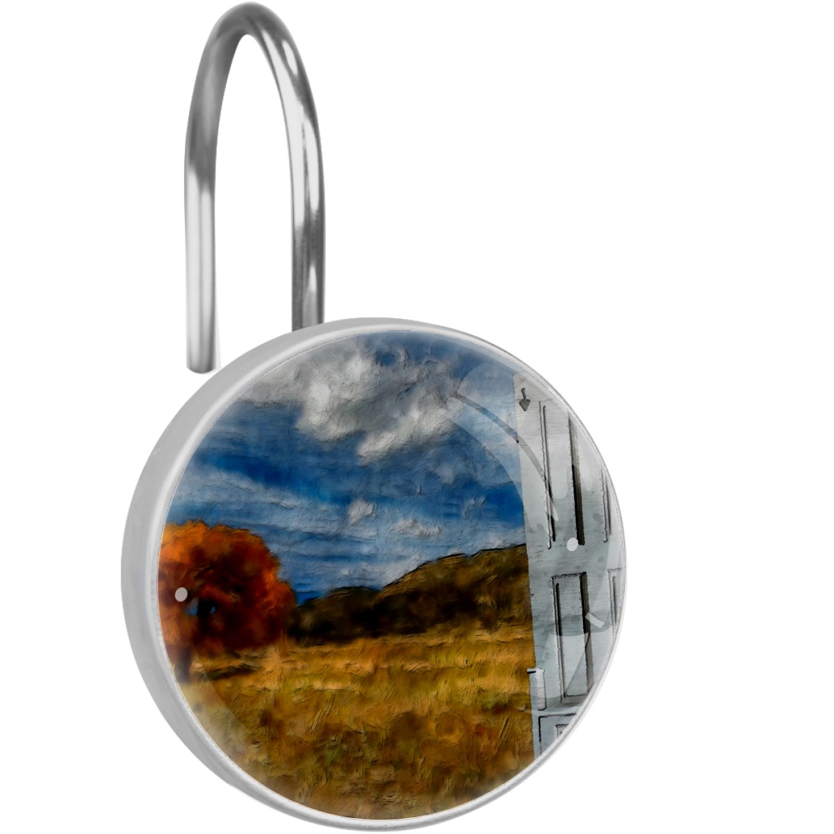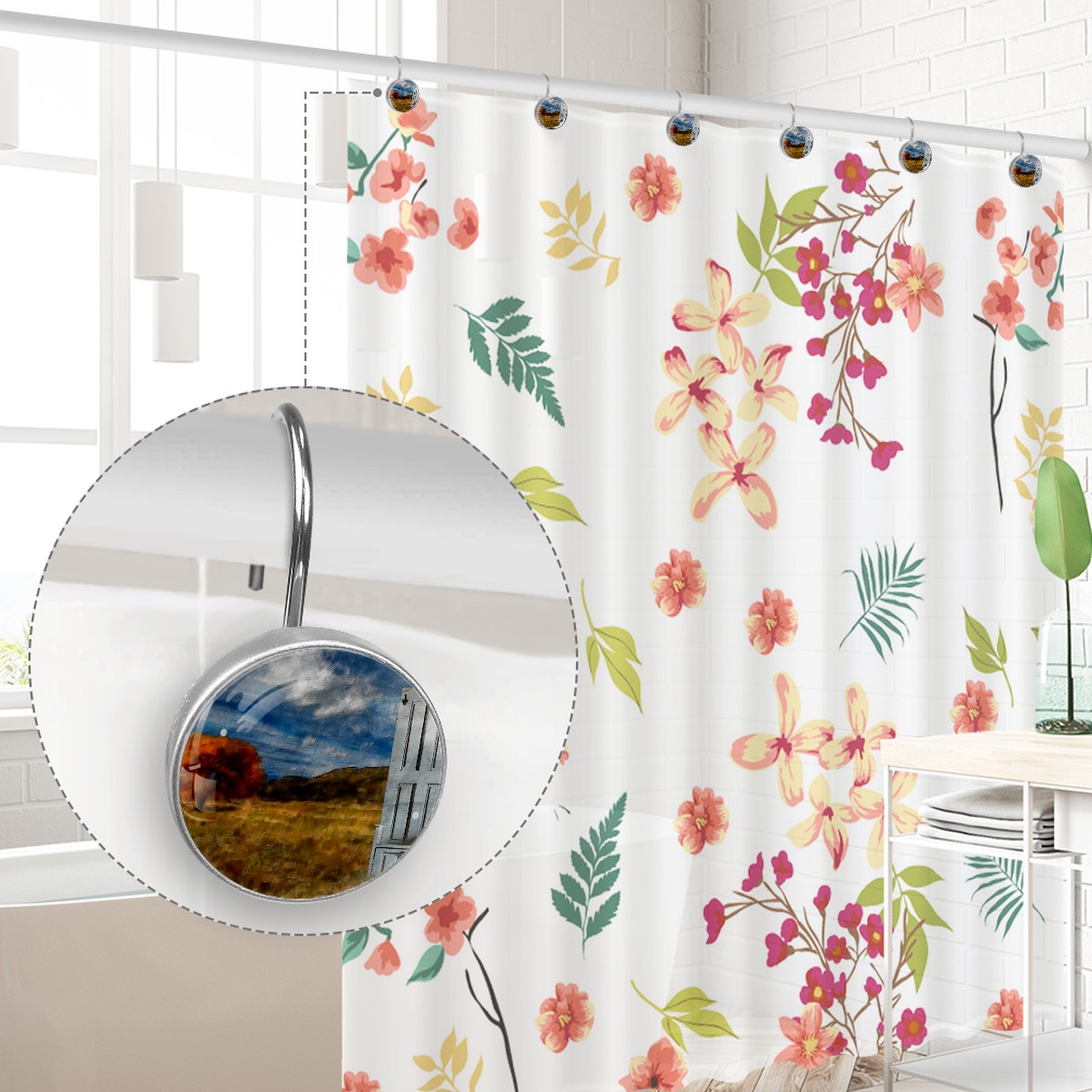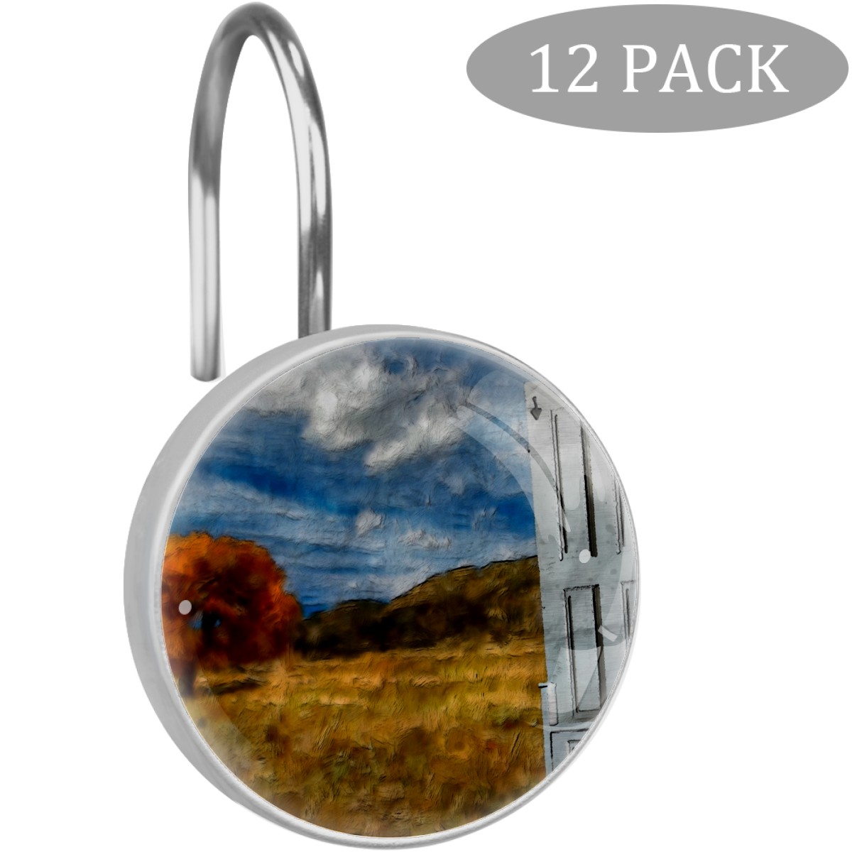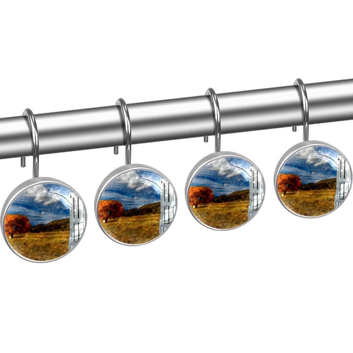 Decorative Shower Curtain Hooks Set of 12 Autumn Field White Door Resin Shower Hooks for Curtain Shower Rings for Bathroom Home Hotel Shower Rods