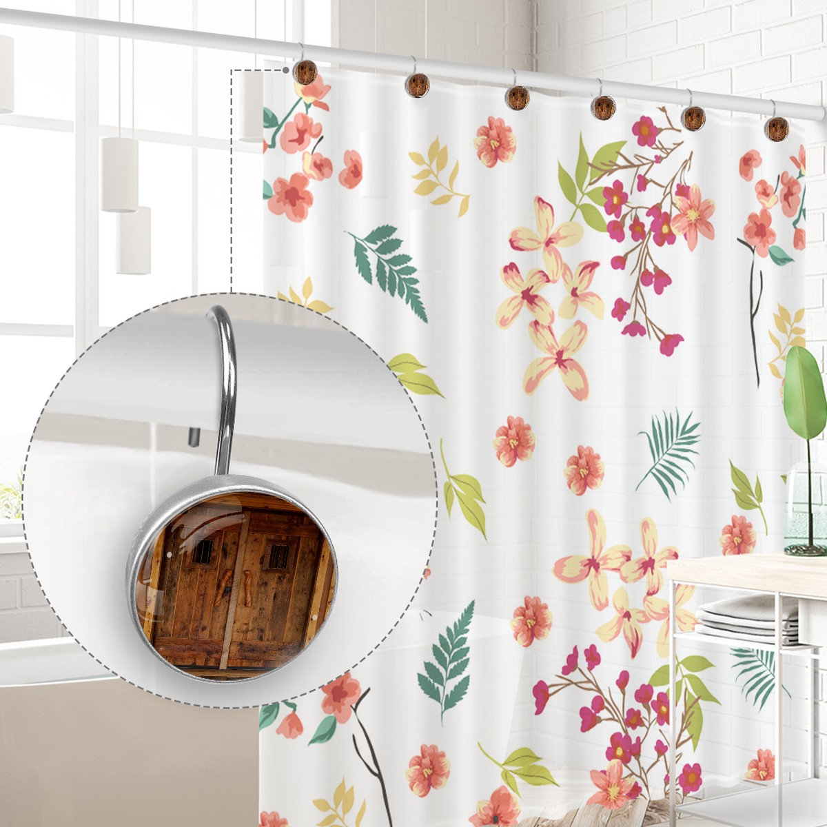 <p>This set of 12 durable hooks attach easily to any standard shower curtain, liner, and rod system to keep the curtain securely attached and evenly draped. </p><p>&nbsp;</p><p>- Impressively durable with sturdiness to hold up any shower curtain.</p><p>&nbsp;</p><p>- <b>Easy to install</b>: simply thread through existing holes and hang over shower rod.</p><p>&nbsp;</p><p>- Vibrant print on one side which adds style to your shower rod.</p><p>&nbsp;</p><p>- Astoundingly gorgeous design to <b>Decorate your bathroom</b>.</p><p>&nbsp;</p><p><b>Package Including</b></p><p>12*Shower Curtain Hooks</p><p>&nbsp;</p><p><b>Notes</b></p><p>1. Due to the different monitor and light effect, the actual color of the item might be slightly different from the color showed on the pictures. Thank you!</p><p>2. Please allow 2-3cm measuring deviation due to manual measurement.</p>