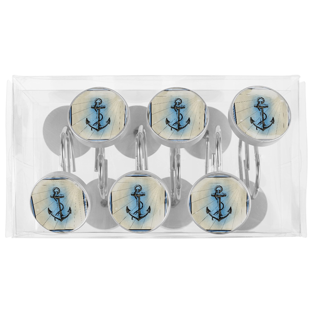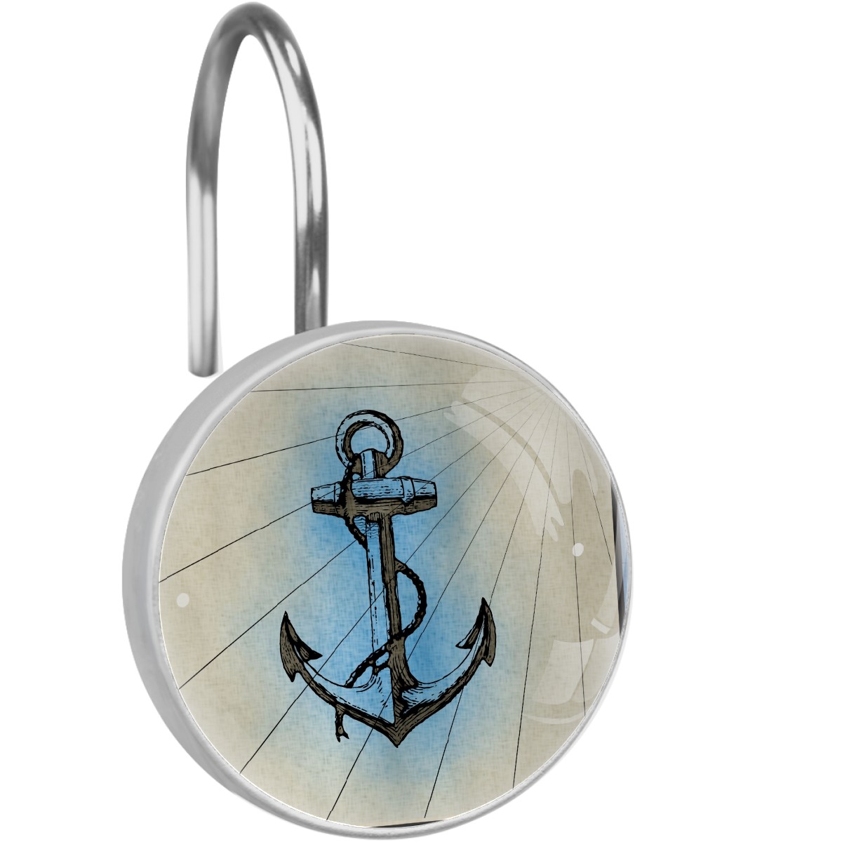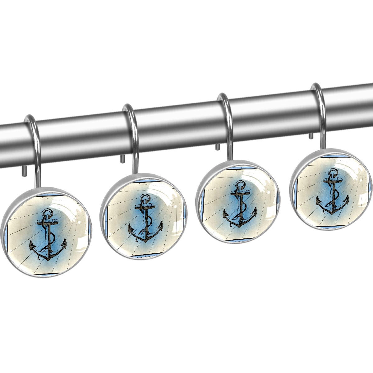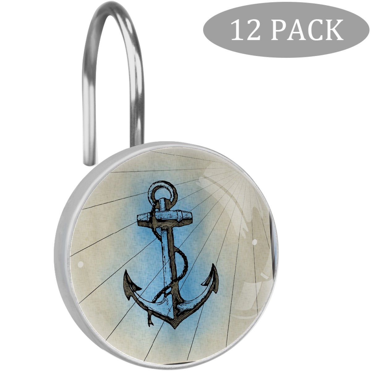 Decorative Shower Curtain Hooks Set of 12 Anchor Rope Nautical Mooring Resin Shower Hooks for Curtain Shower Rings for Bathroom Home Hotel Shower Rods