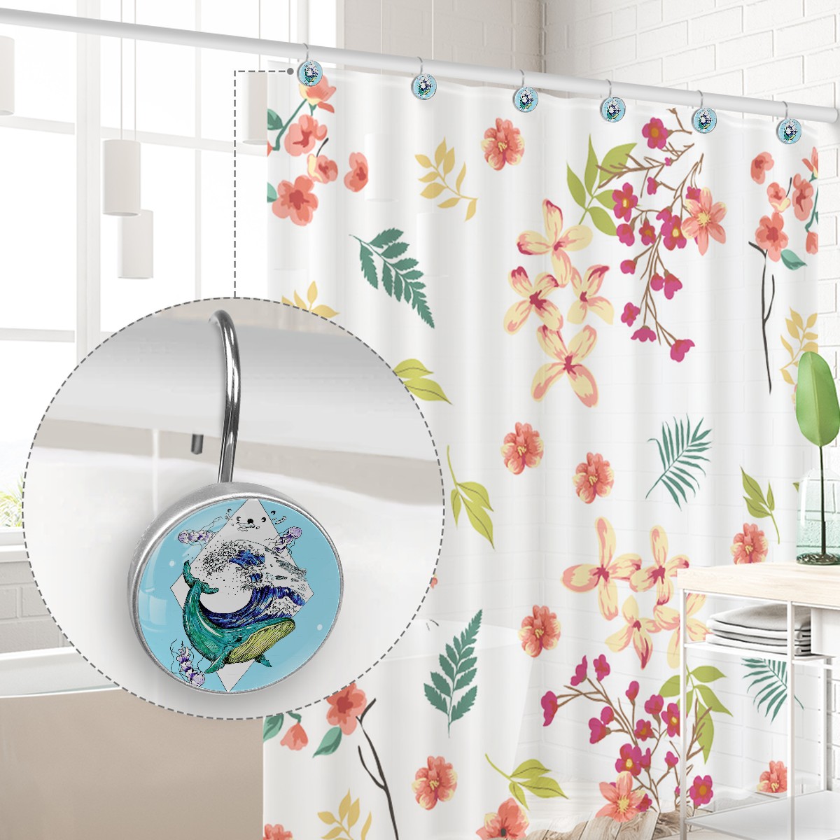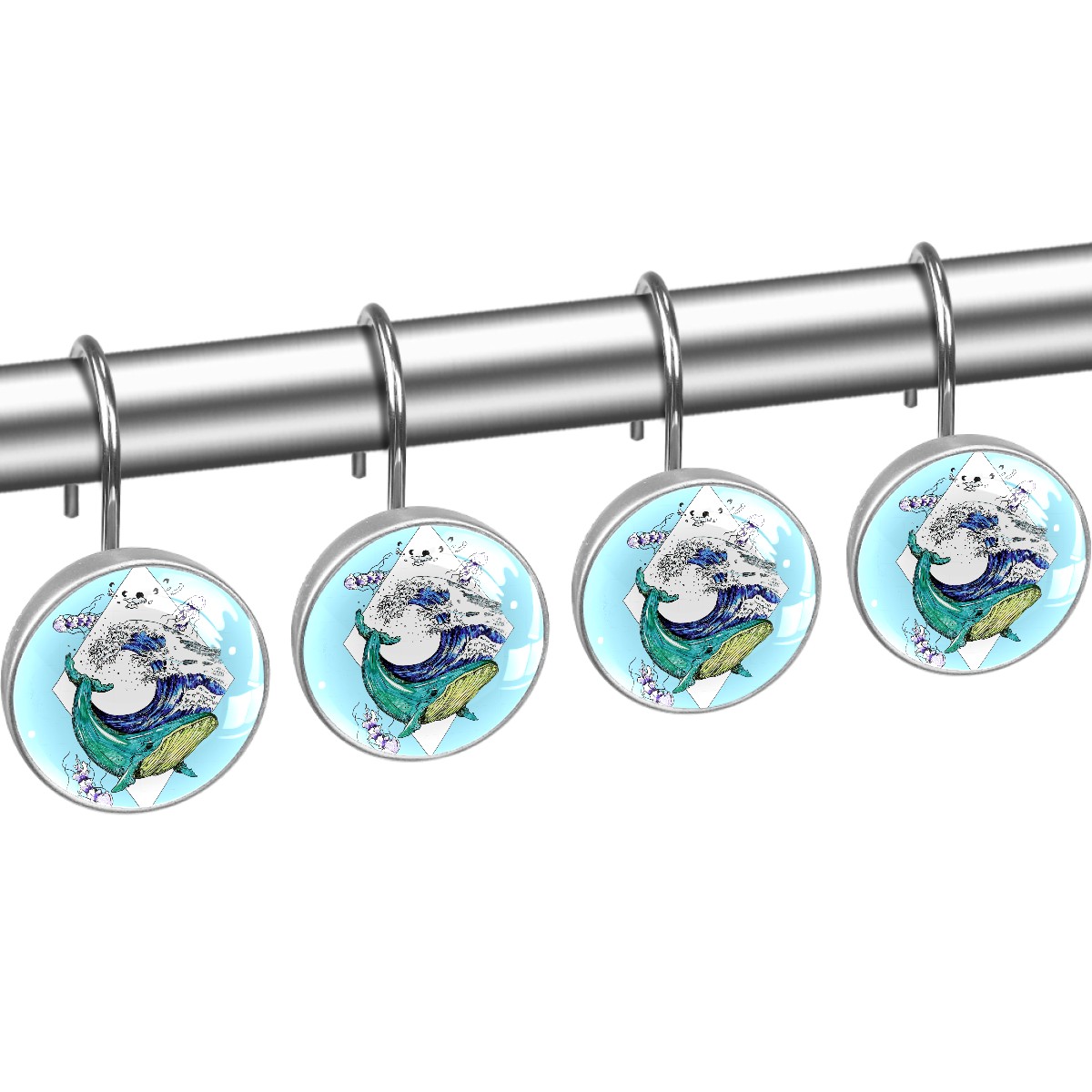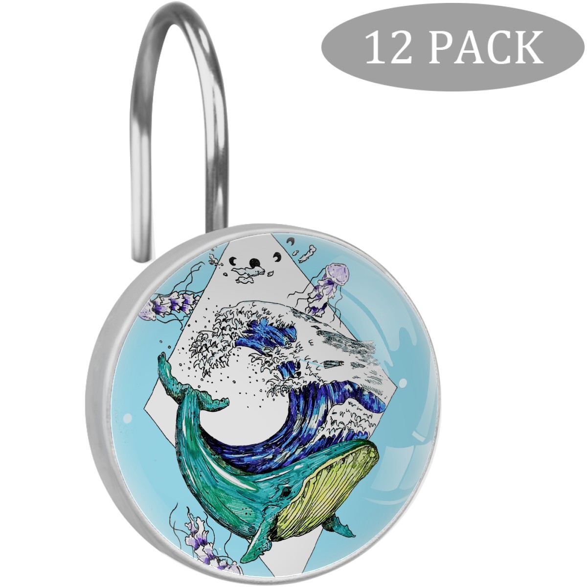 Decorative Shower Curtain Hooks Set of 12 Whale Resin Shower Hooks for Curtain Shower Rings for Bathroom Home Hotel Shower Rods