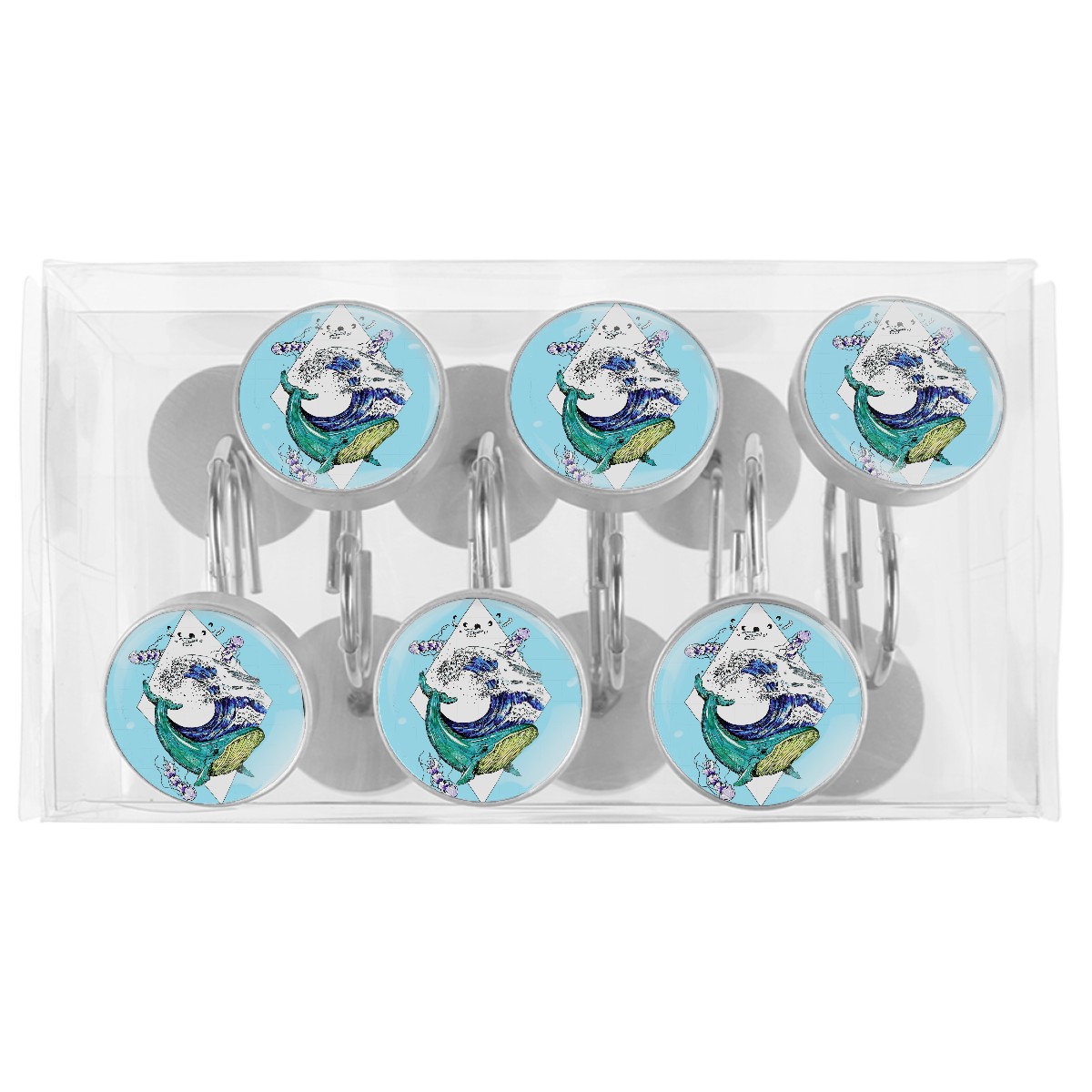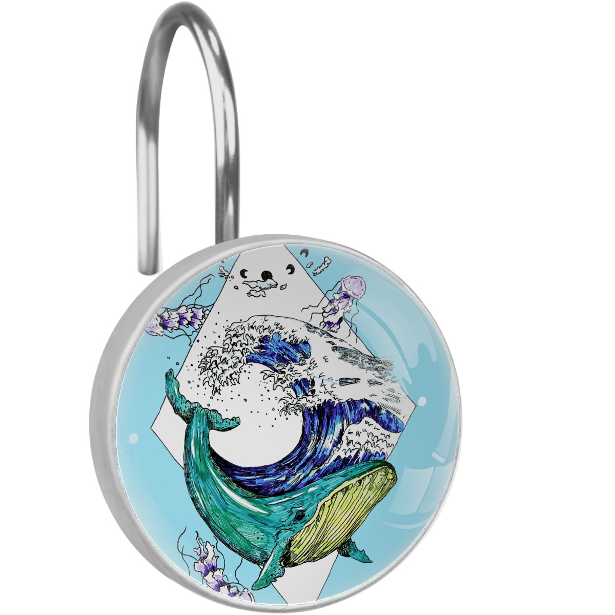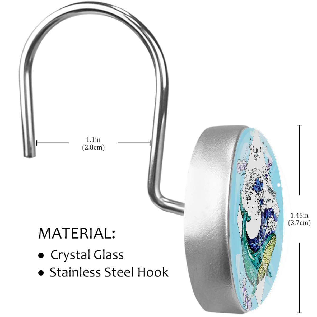 Decorative Shower Curtain Hooks Set of 12 Whale Resin Shower Hooks for Curtain Shower Rings for Bathroom Home Hotel Shower Rods