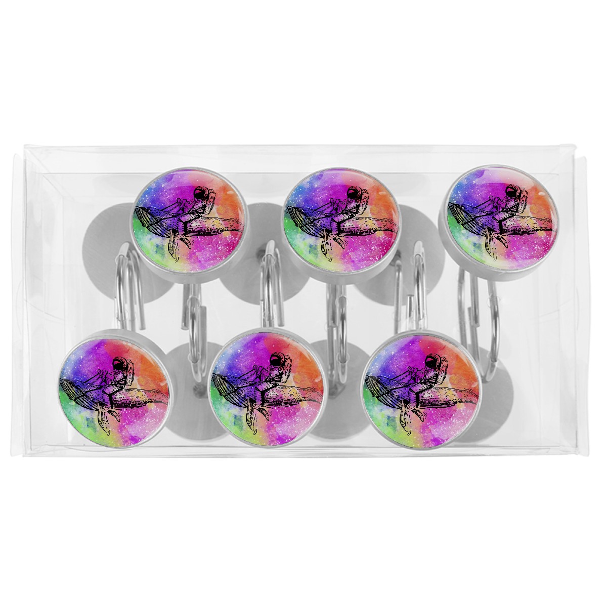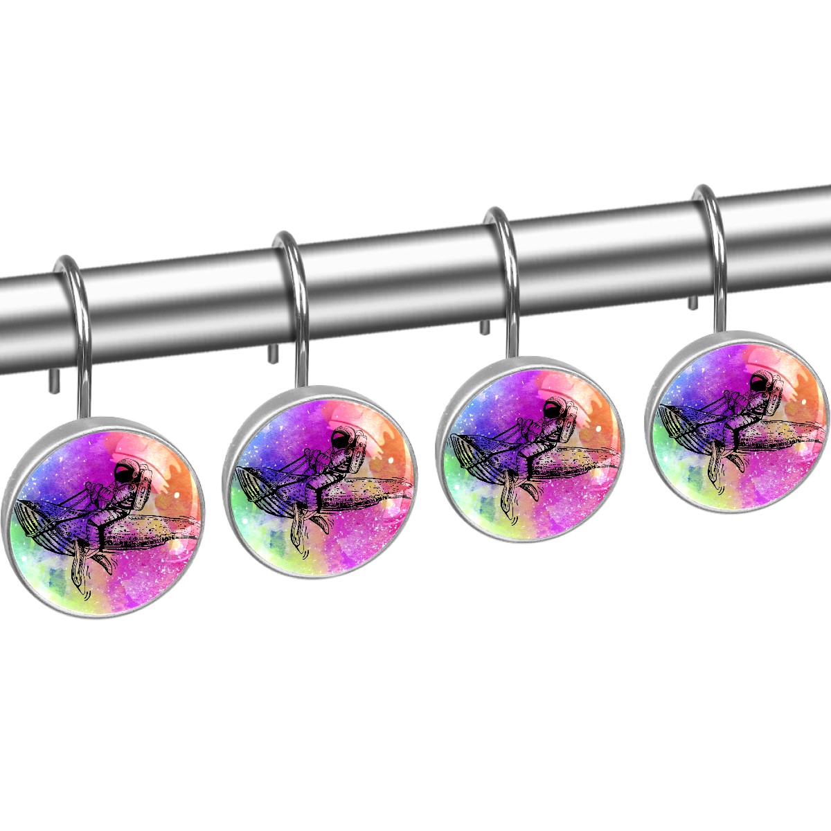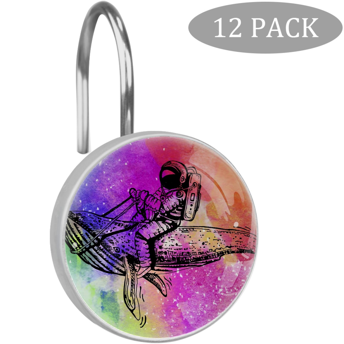 Decorative Shower Curtain Hooks Set of 12 Whale And Astronaut Resin Shower Hooks for Curtain Shower Rings for Bathroom Home Hotel Shower Rods