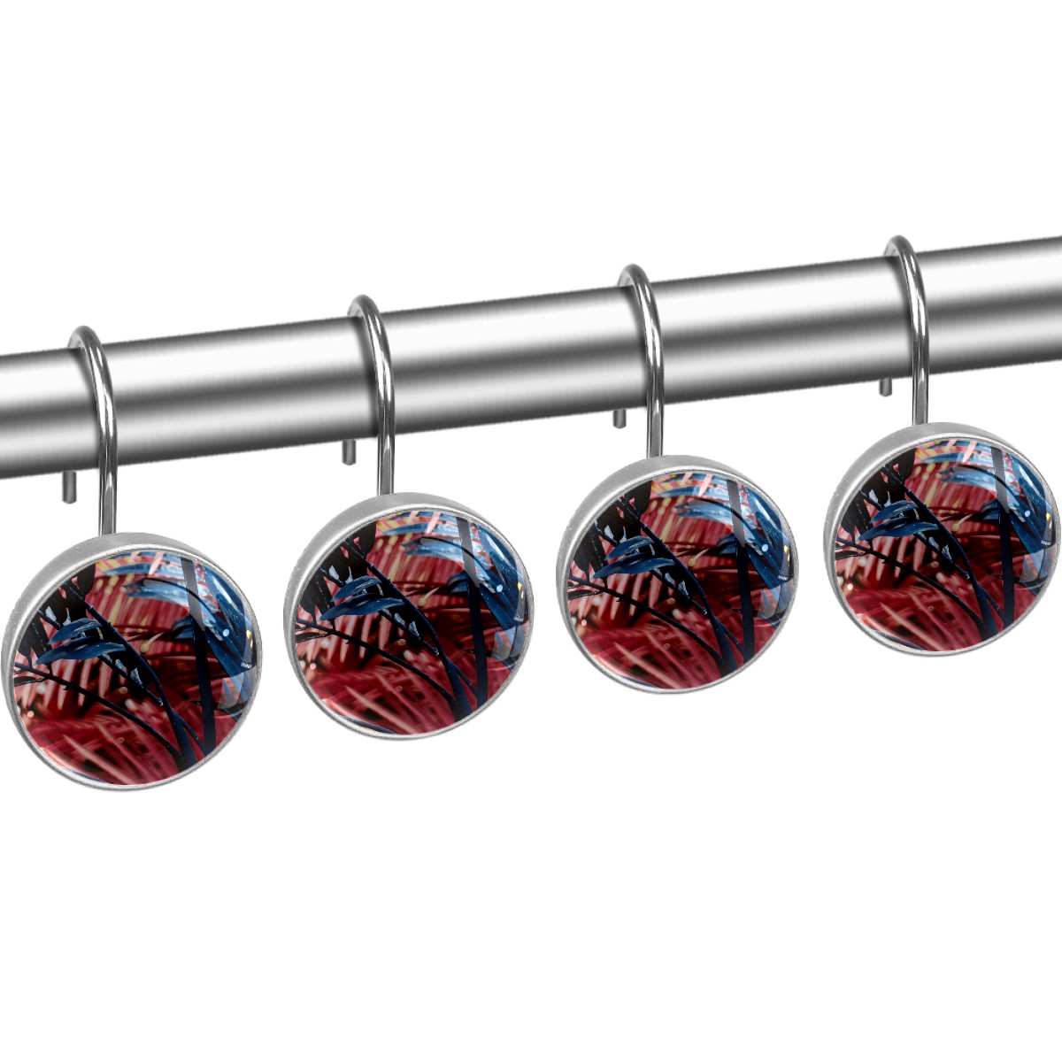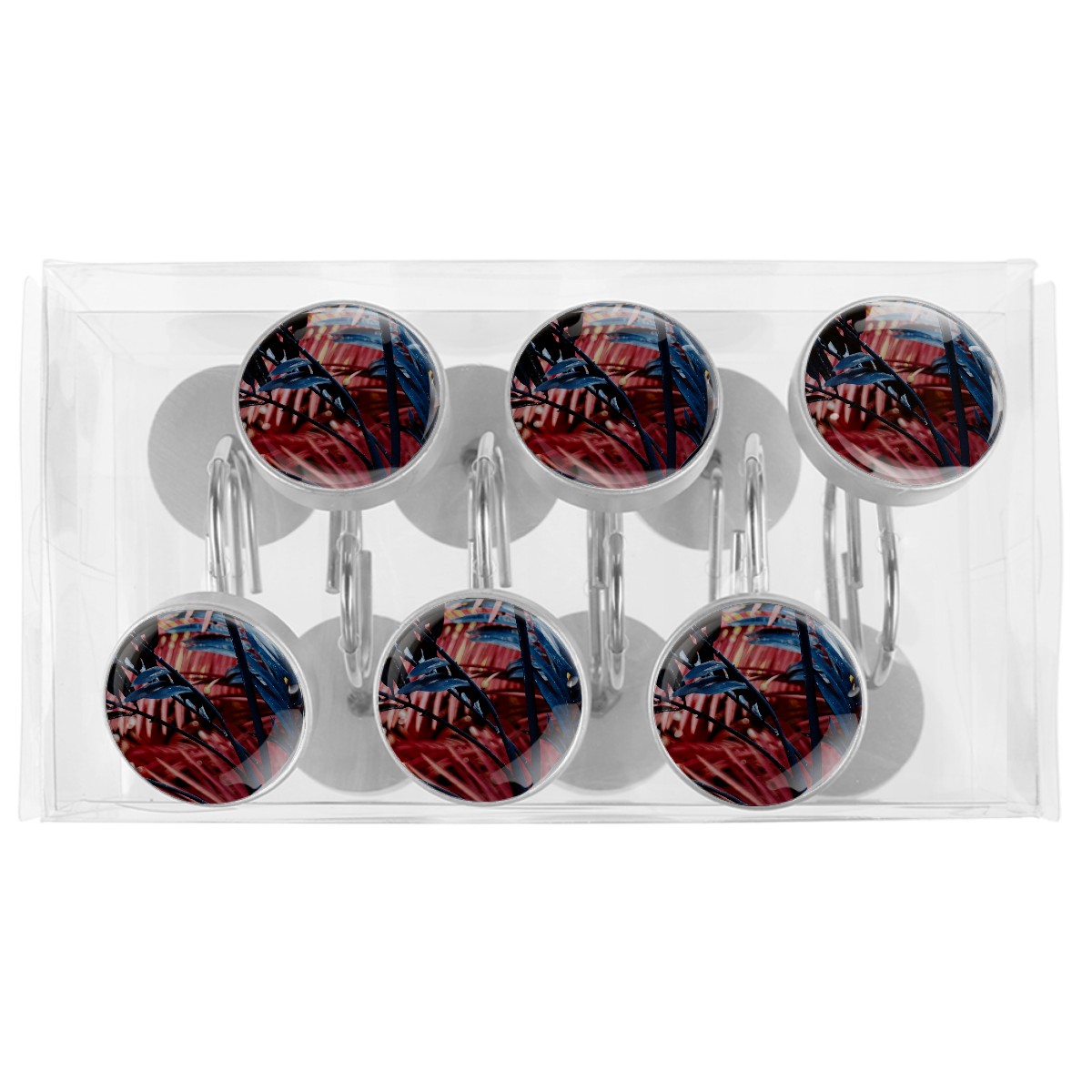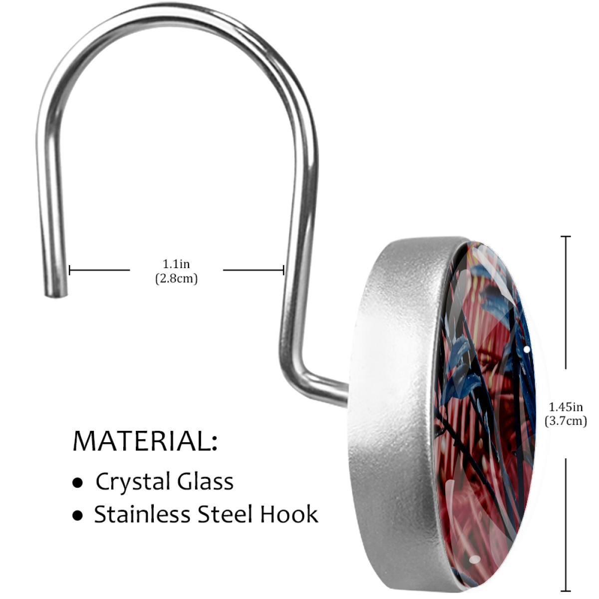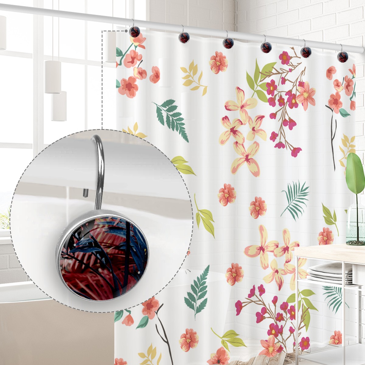 <p>This set of 12 durable hooks attach easily to any standard shower curtain, liner, and rod system to keep the curtain securely attached and evenly draped. </p><p>&nbsp;</p><p>- Impressively durable with sturdiness to hold up any shower curtain.</p><p>&nbsp;</p><p>- <b>Easy to install</b>: simply thread through existing holes and hang over shower rod.</p><p>&nbsp;</p><p>- Vibrant print on one side which adds style to your shower rod.</p><p>&nbsp;</p><p>- Astoundingly gorgeous design to <b>Decorate your bathroom</b>.</p><p>&nbsp;</p><p><b>Package Including</b></p><p>12*Shower Curtain Hooks</p><p>&nbsp;</p><p><b>Notes</b></p><p>1. Due to the different monitor and light effect, the actual color of the item might be slightly different from the color showed on the pictures. Thank you!</p><p>2. Please allow 2-3cm measuring deviation due to manual measurement.</p>