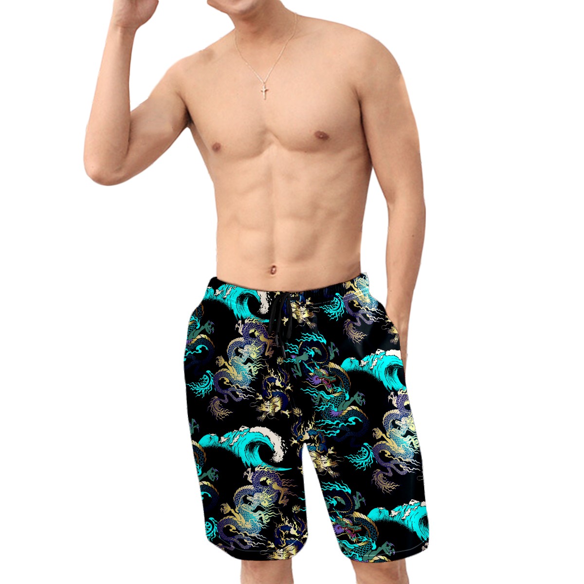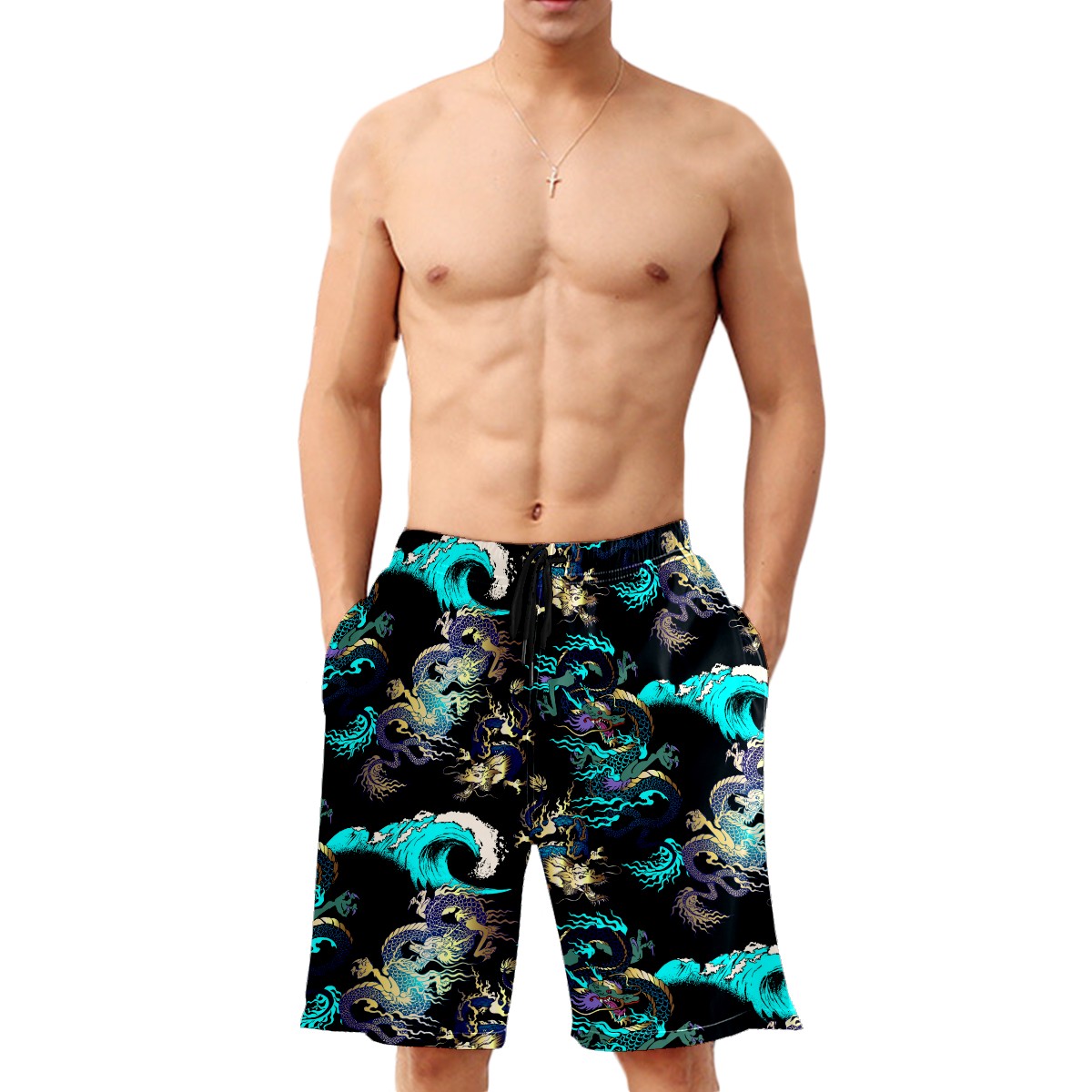 Japanese Dragon Sea Wave Tattoo 男士沙滩裤