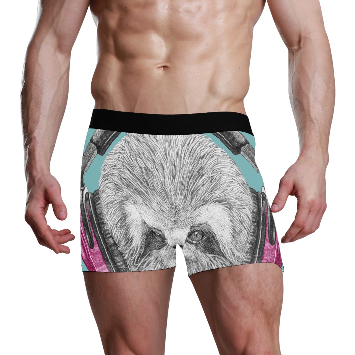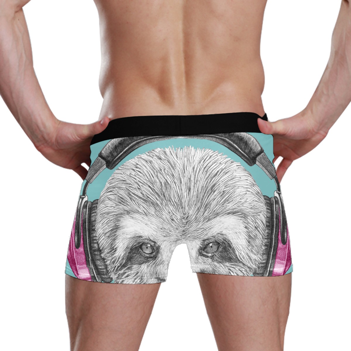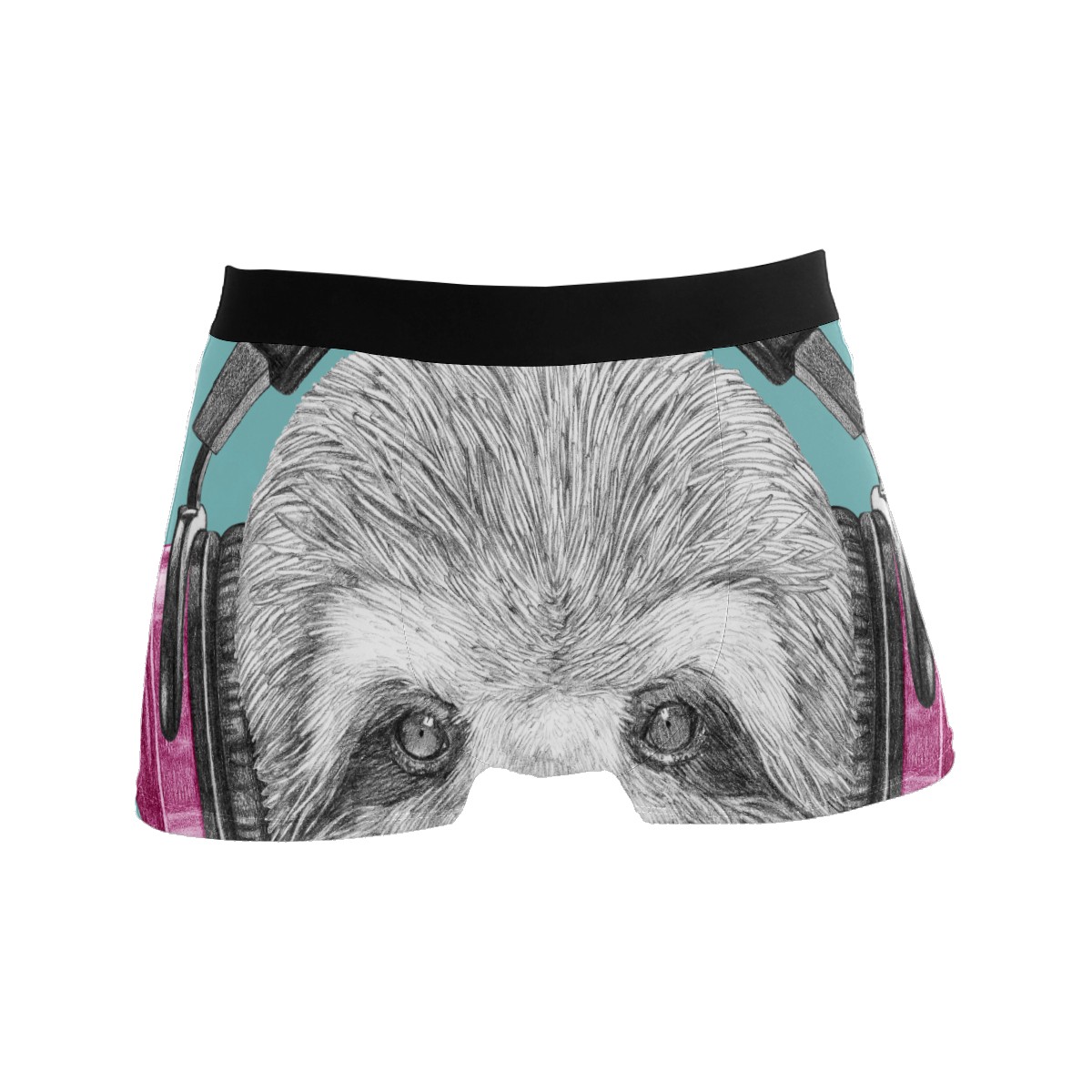 Men's Underwear Cute Sloth With Headphone Boxer Briefs Boys Stretch Breathable Low Rise Trunks