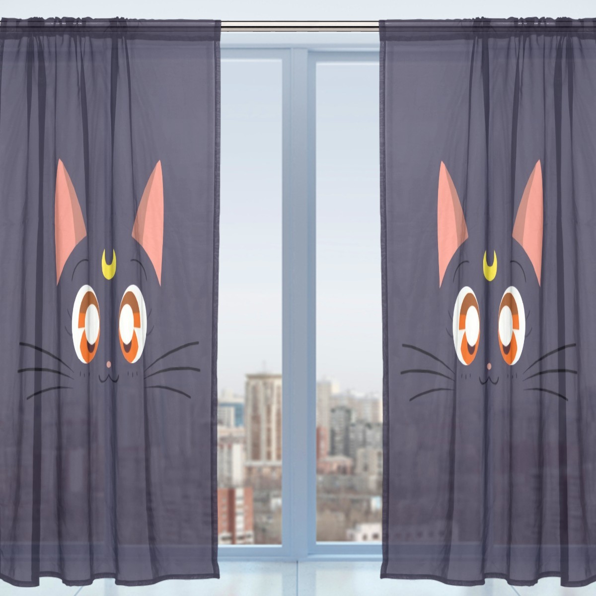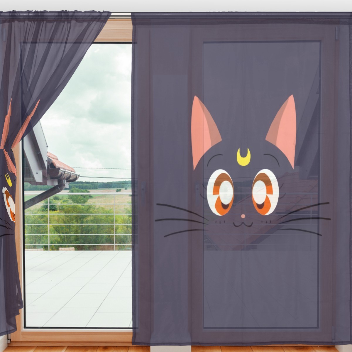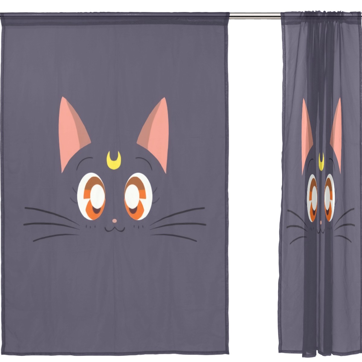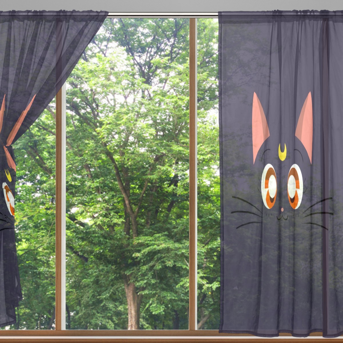 Sheer Window Curtains 2 Panels Cute Sailor Moon Cat Voile Curtains for Kitchen Bedroom Living Room Home Decor 55" x 78"