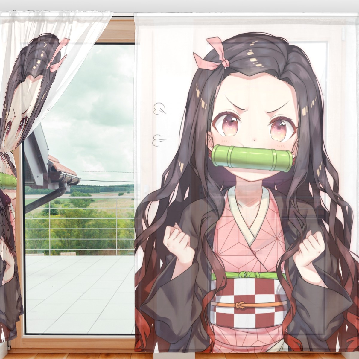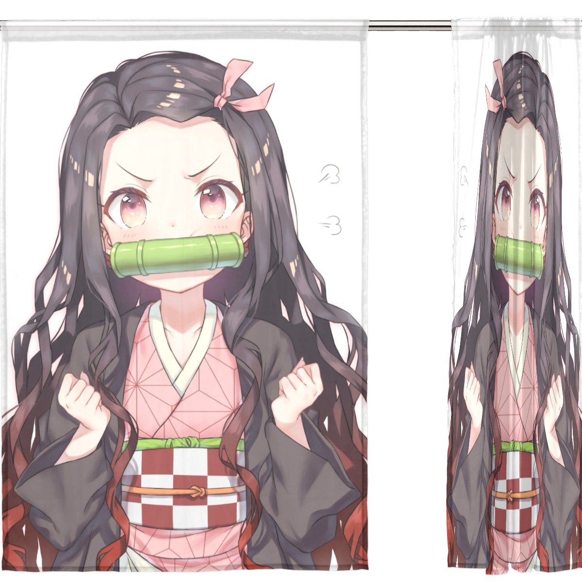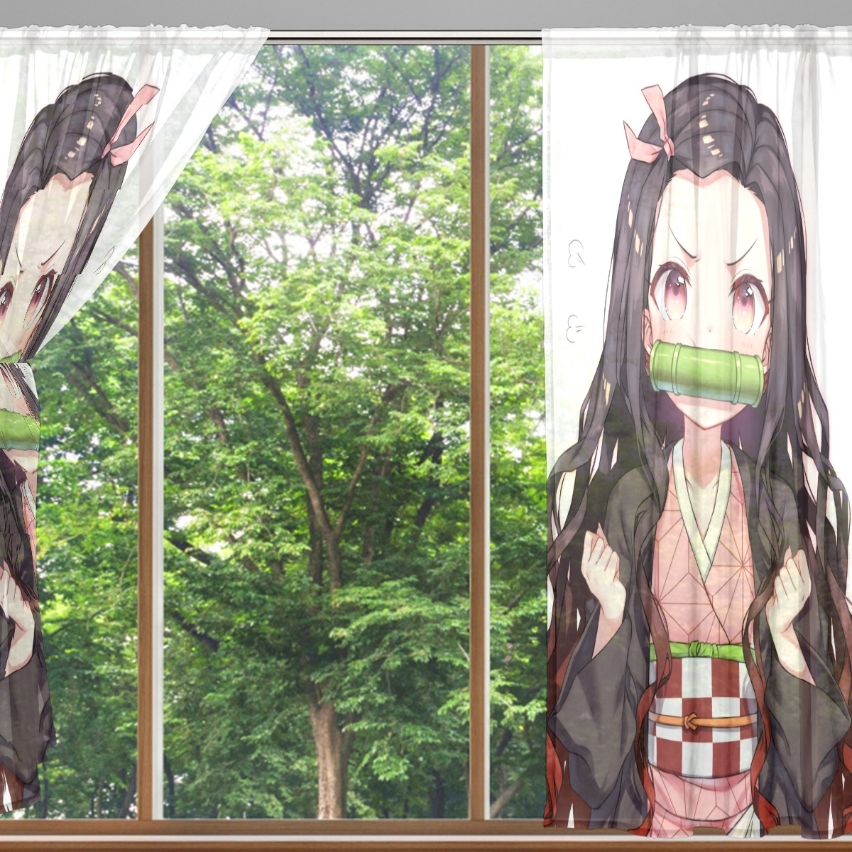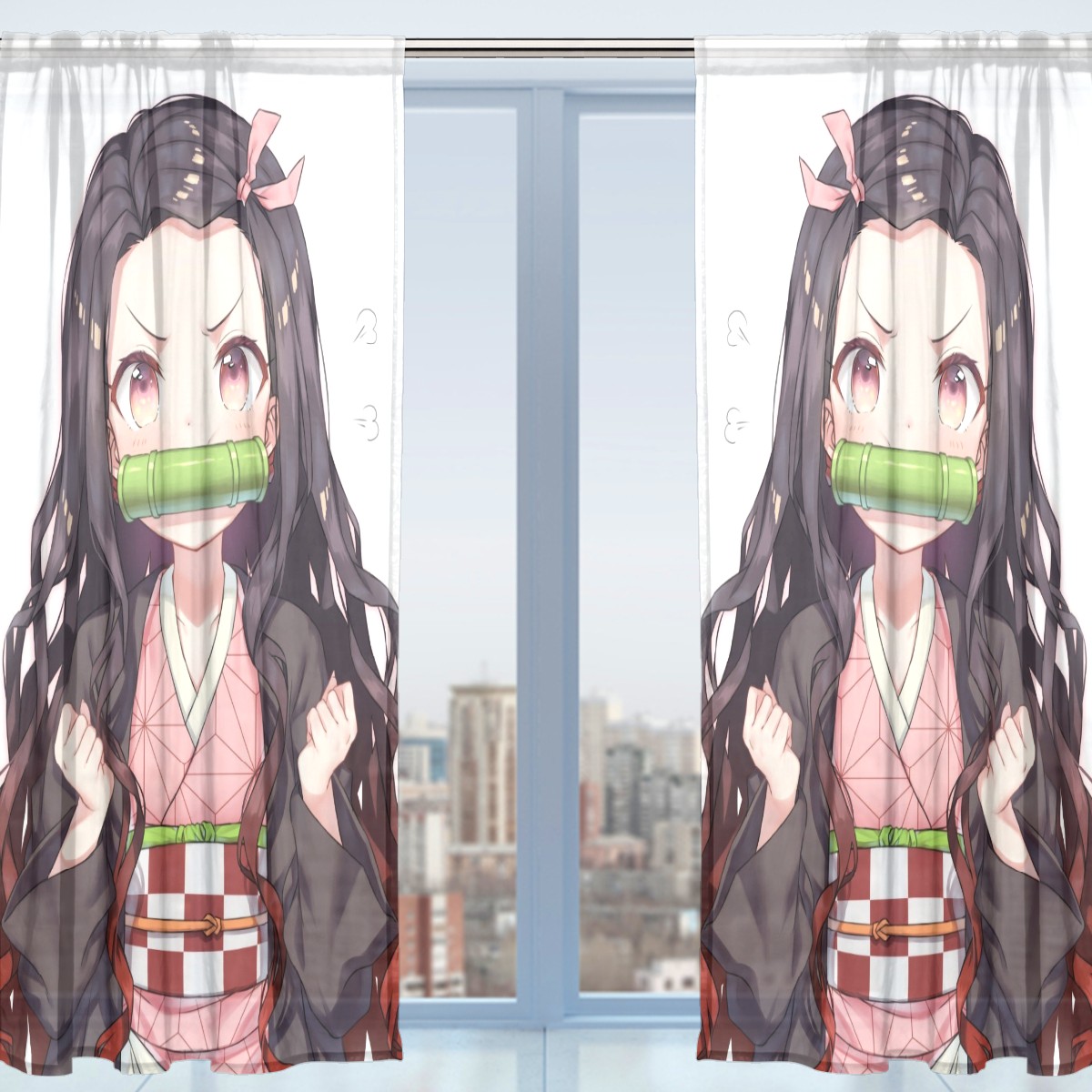 Sheer Window Curtains 2 Panels Cute Demon Slayer Kamado Nezuko Voile Curtains for Kitchen Bedroom Living Room Home Decor 55" x 78"