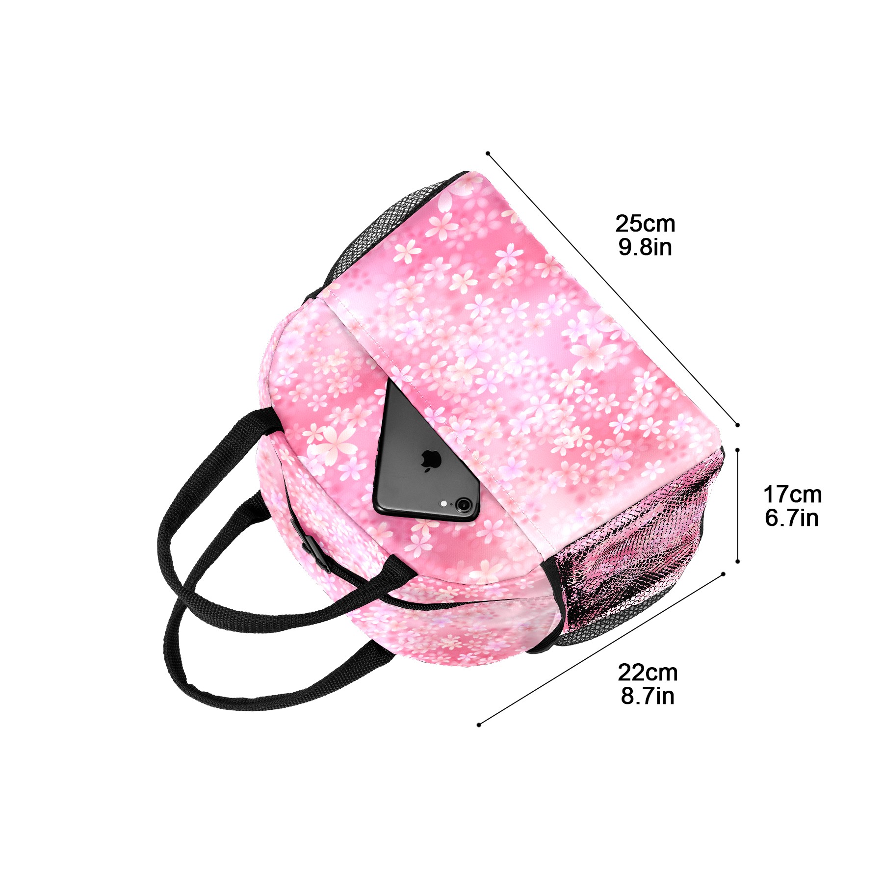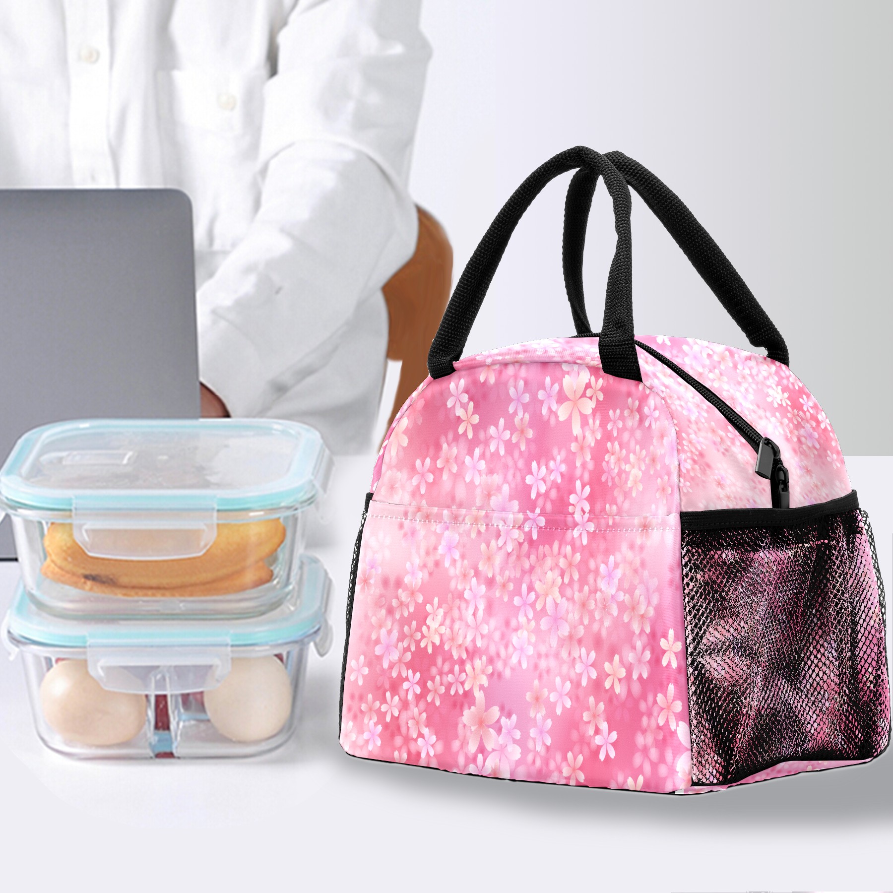 Lunch Bag for Women Men, Pink Cherry Blossoms Pattern Insulated Reusable Lunch Box Thermal Cooler Tote Bag for Work Picnic Hiking Travel Beach