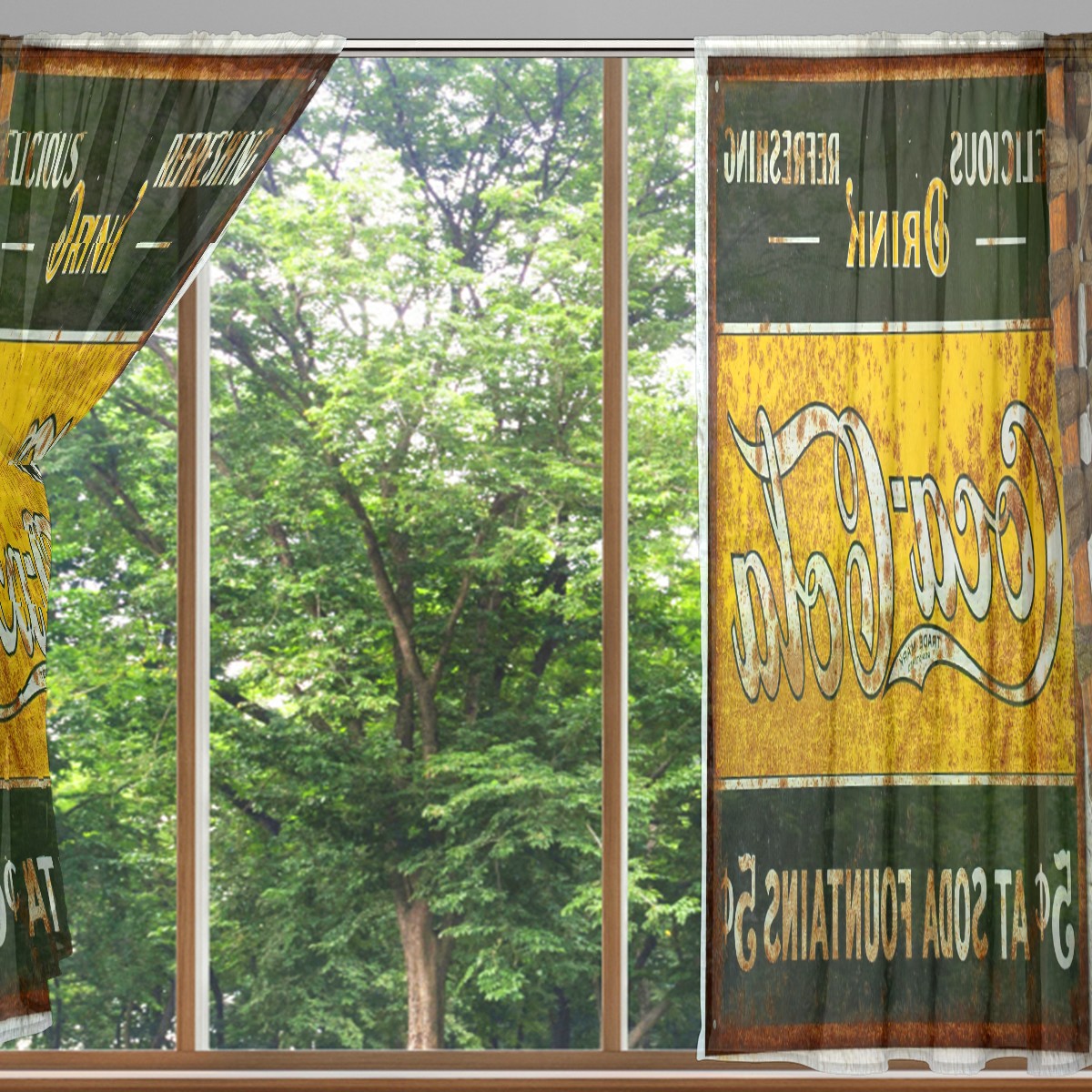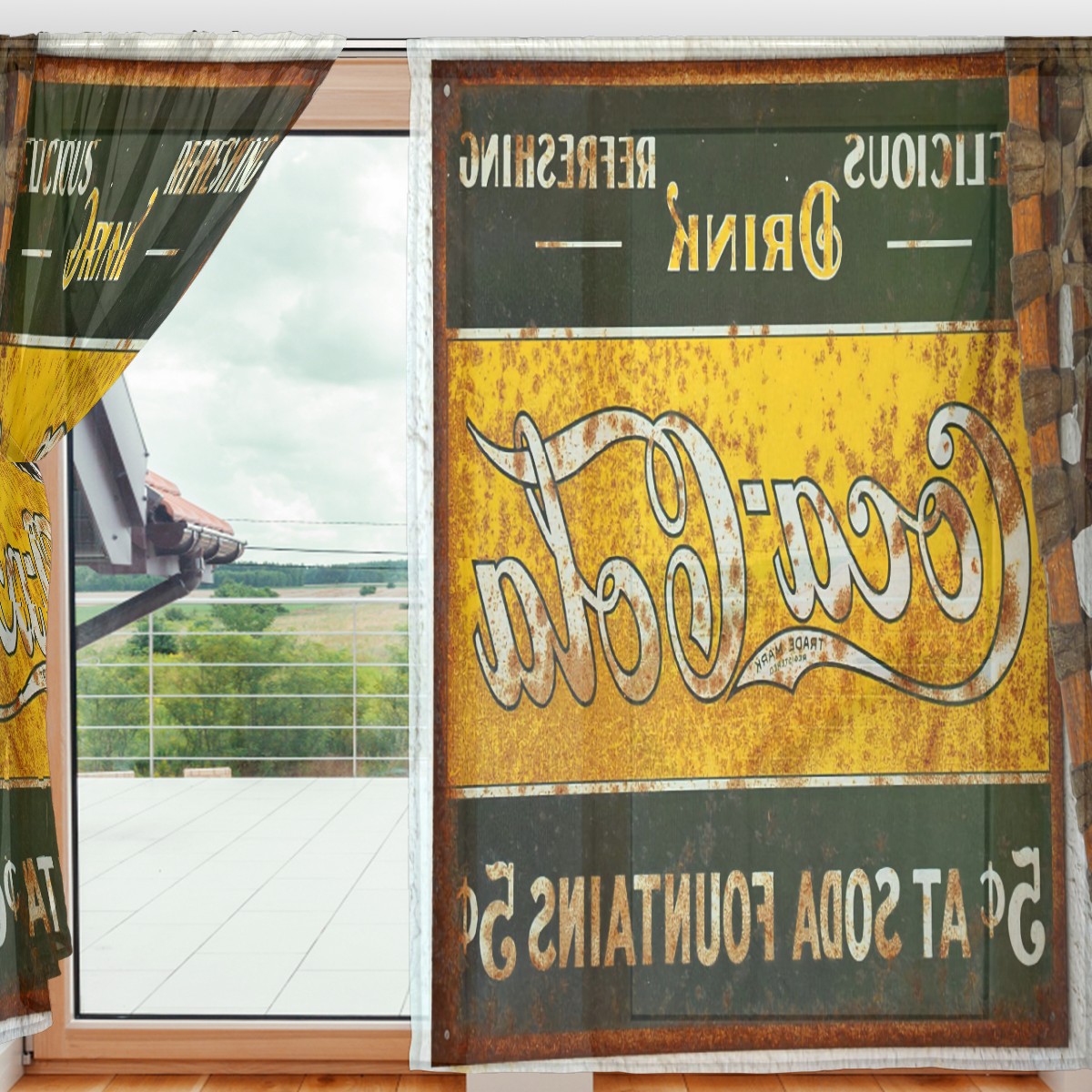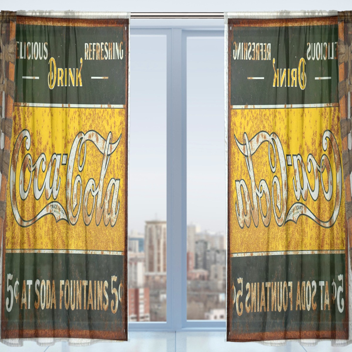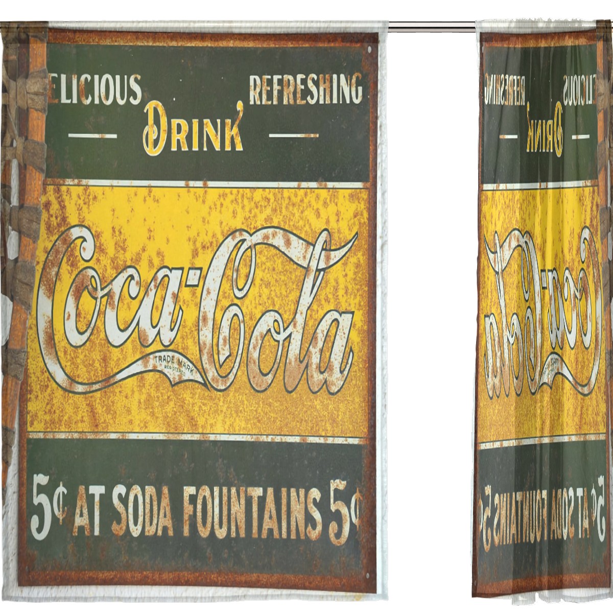 Sheer Window Curtains 2 Panels Retro Coca Cola Sign Voile Curtains for Kitchen Bedroom Living Room Home Decor 55" x 78"