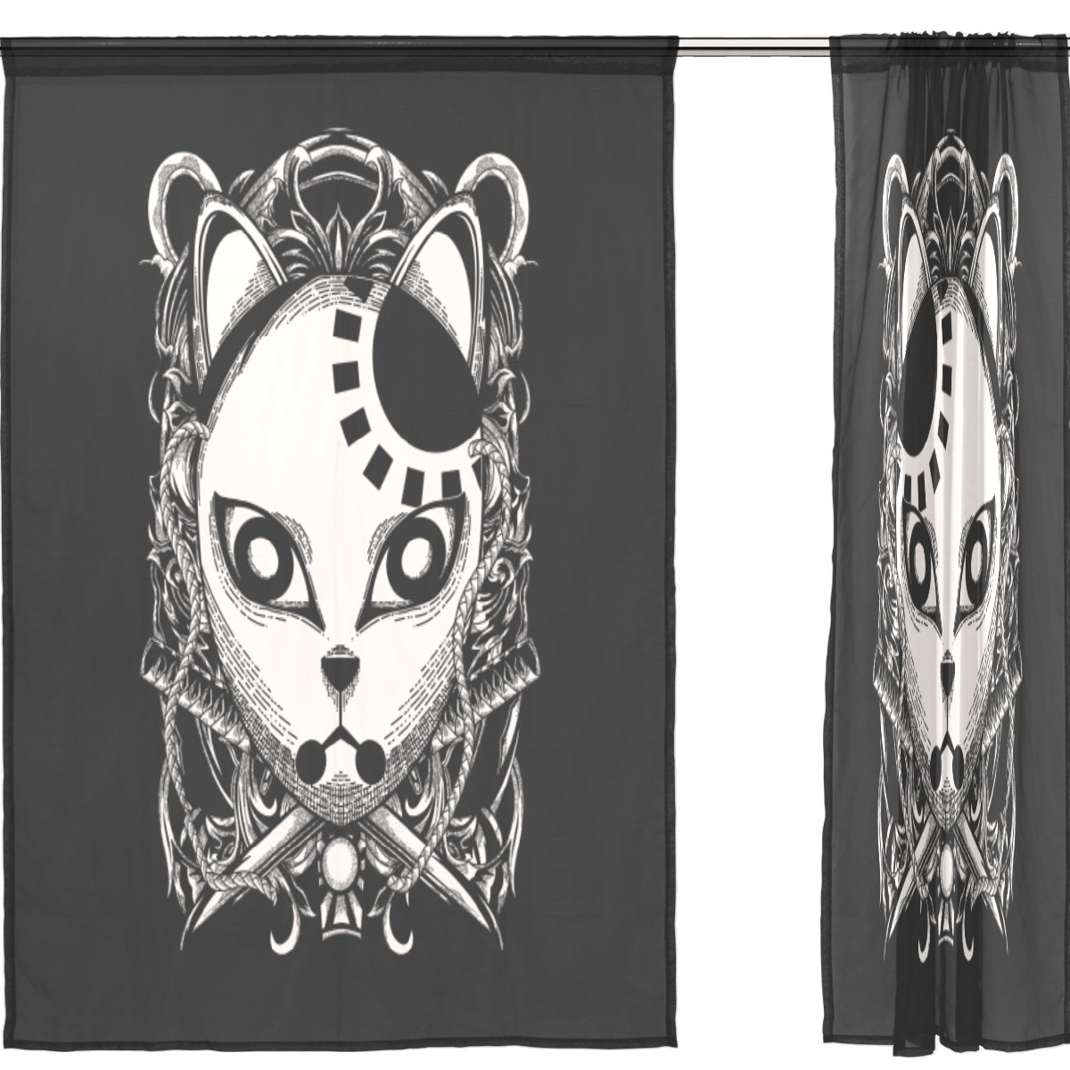 Sheer Window Curtains 2 Panels Anime Demon Slayer Manga Voile Curtains for Kitchen Bedroom Living Room Home Decor 55" x 78"