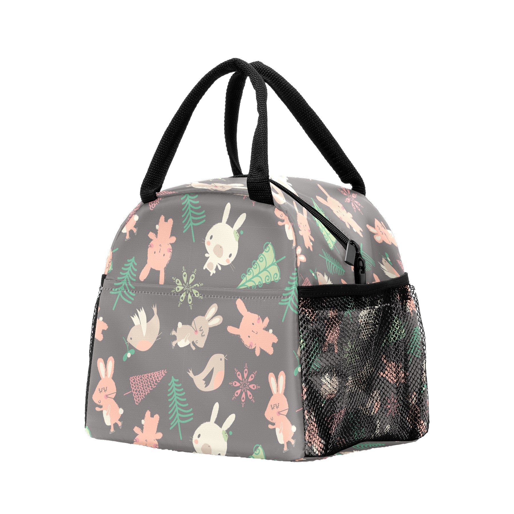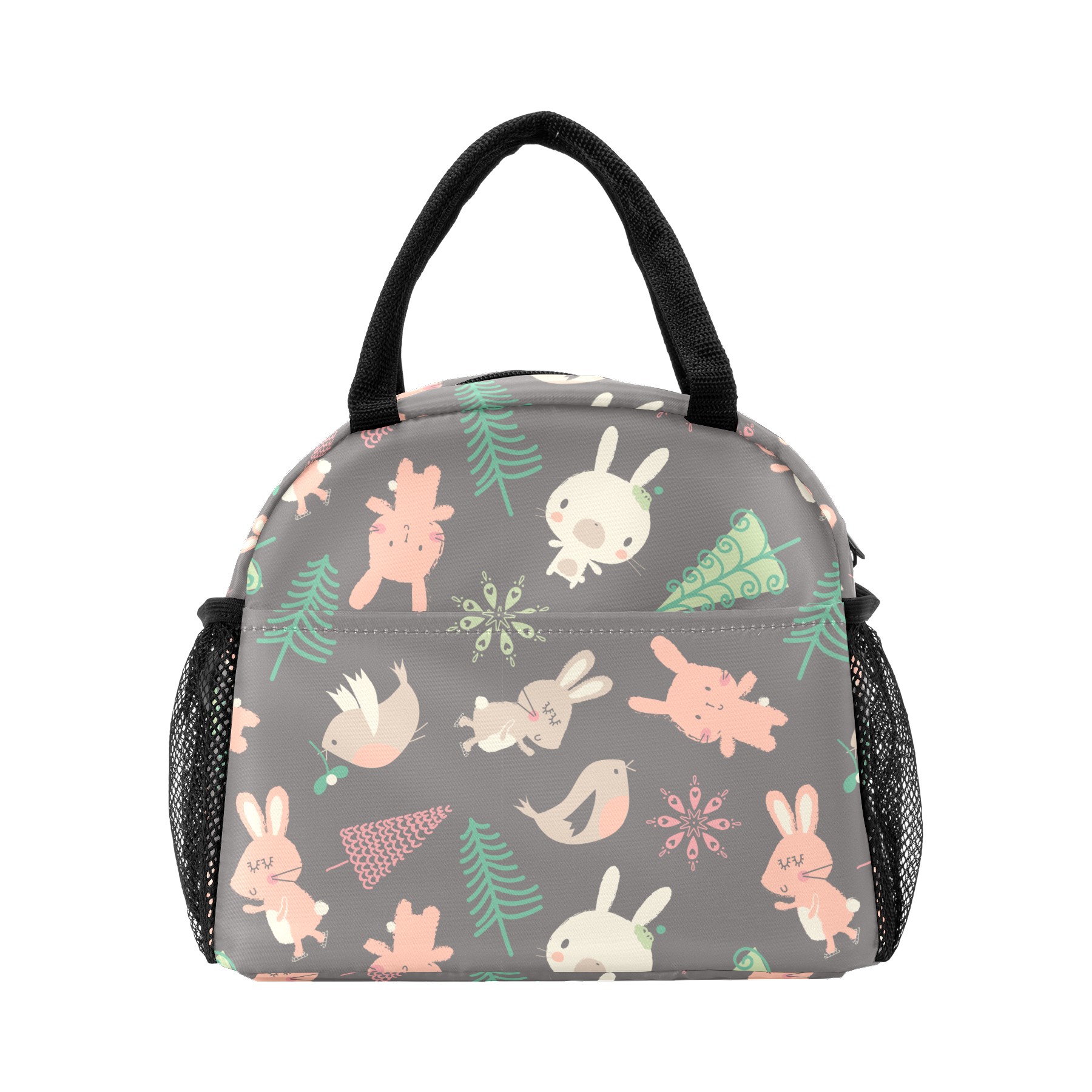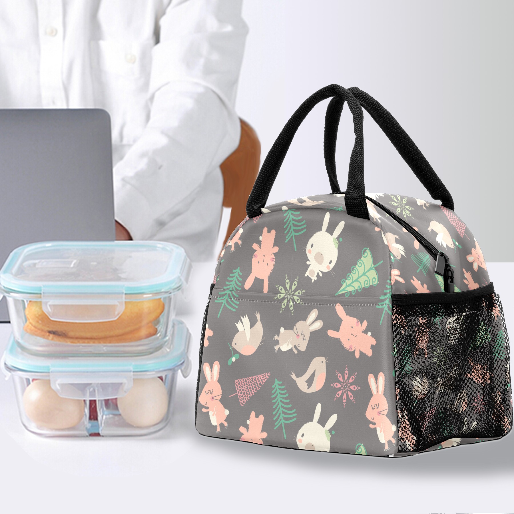 Lunch Bag for Women Men, Retro Cartoon Rabbit Pattern Insulated Reusable Lunch Box Thermal Cooler Tote Bag for Work Picnic Hiking Travel Beach