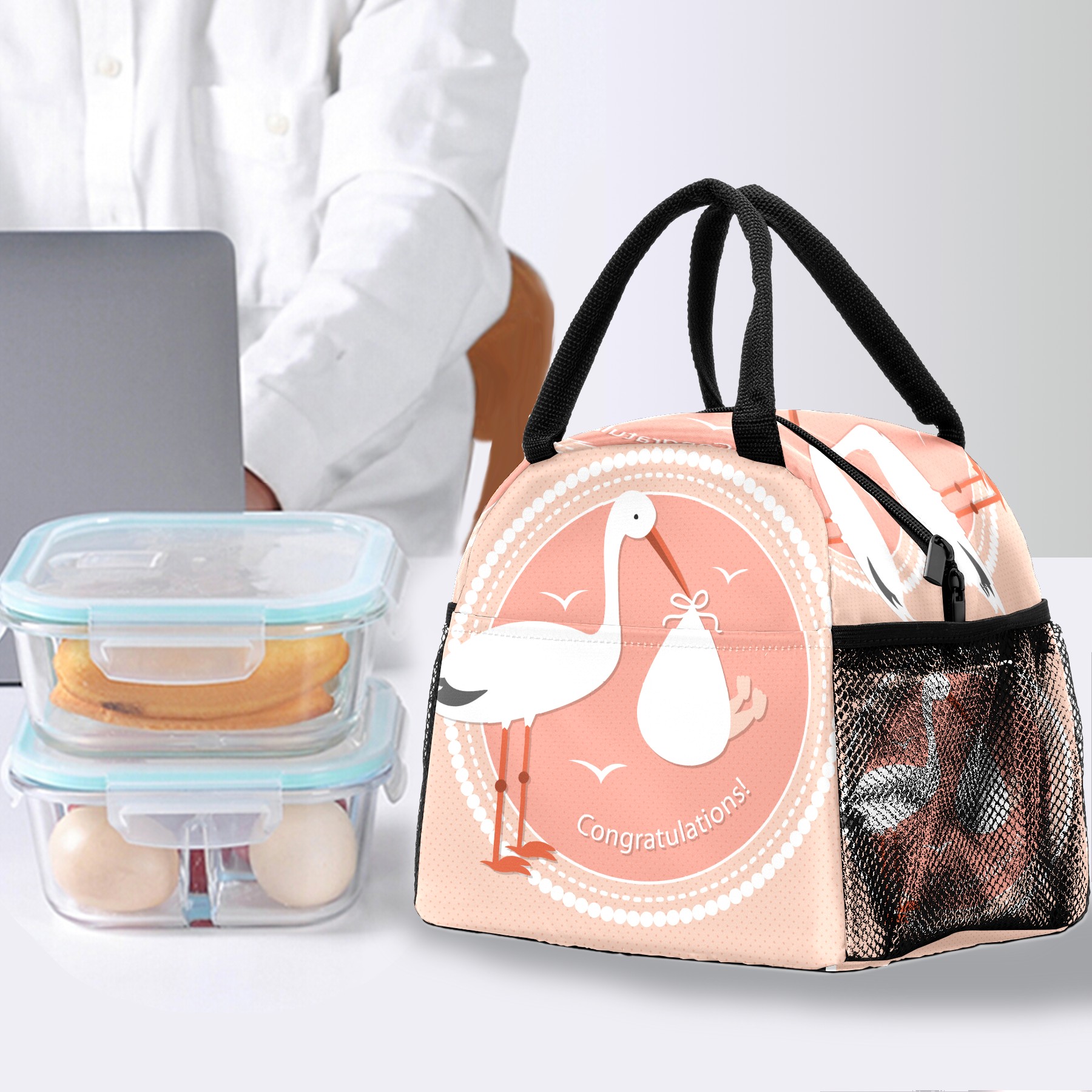 Lunch Bag for Women Men, Pink Funny Flamingo Congratulations Insulated Reusable Lunch Box Thermal Cooler Tote Bag for Work Picnic Hiking Travel Beach