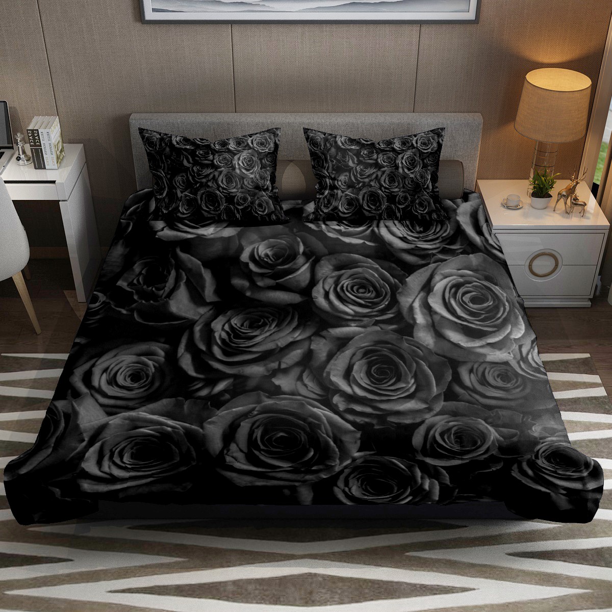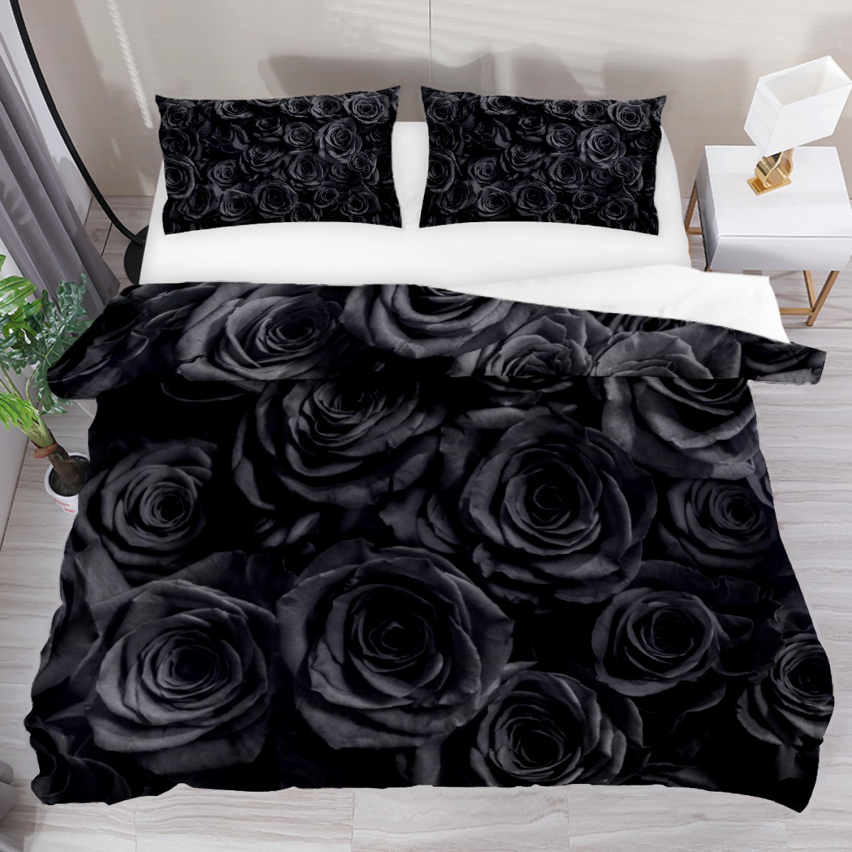 3 Piece Duvet Cover Set, Black And White Rose Bedding Set Twin Size, Luxury Ultra Soft Breathable Comforter Cover Set (1 Duvet Cover + 2 Pillowcases)