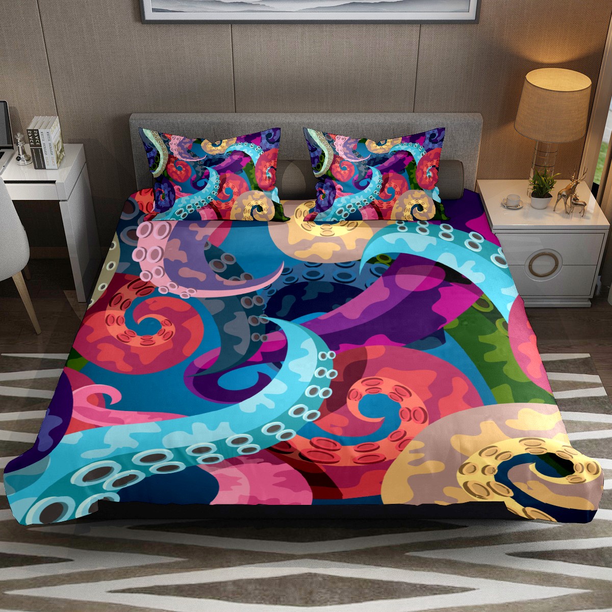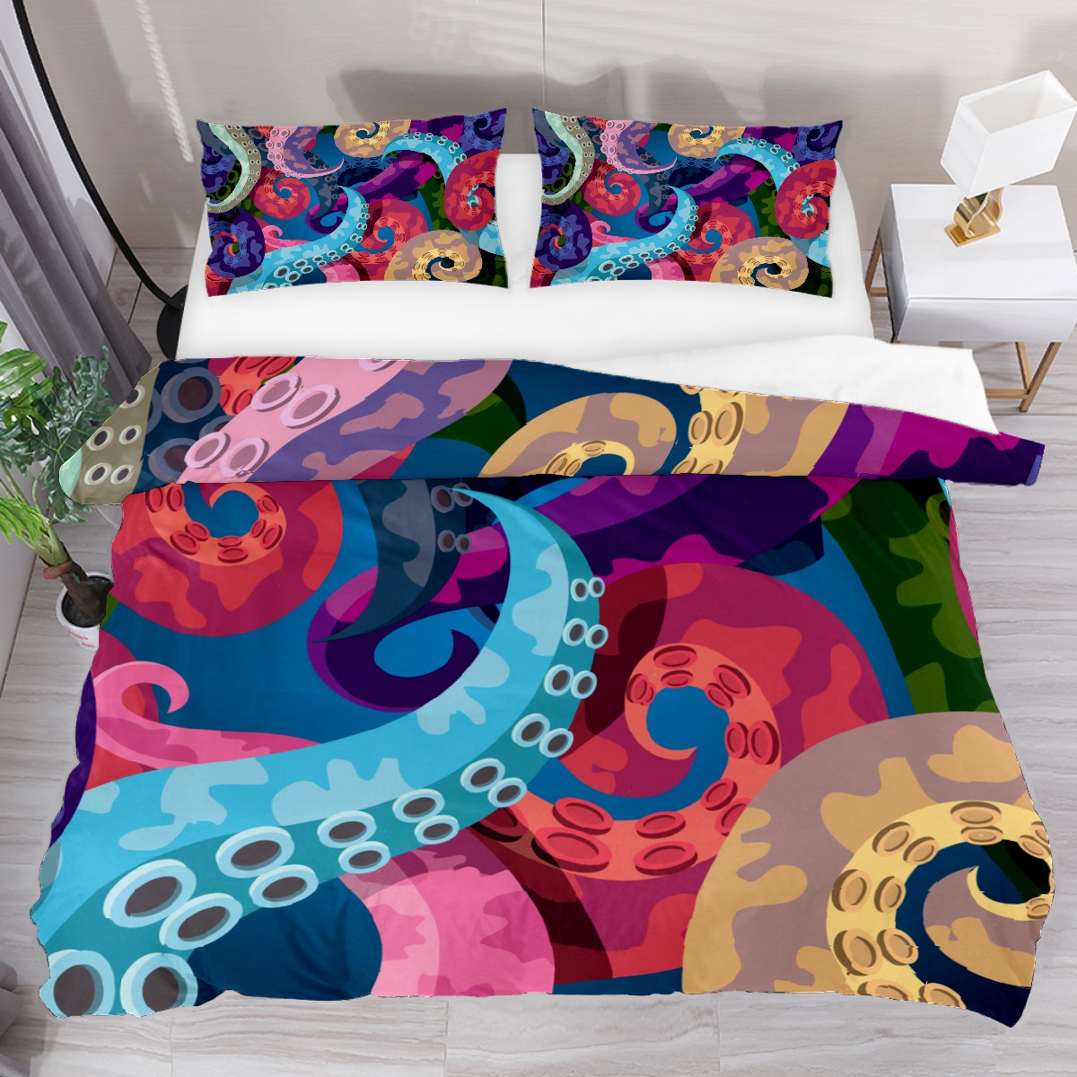 3 Piece Duvet Cover Set, Colorful Octopus Feet Bedding Set Twin Size, Luxury Ultra Soft Breathable Comforter Cover Set (1 Duvet Cover + 2 Pillowcases)