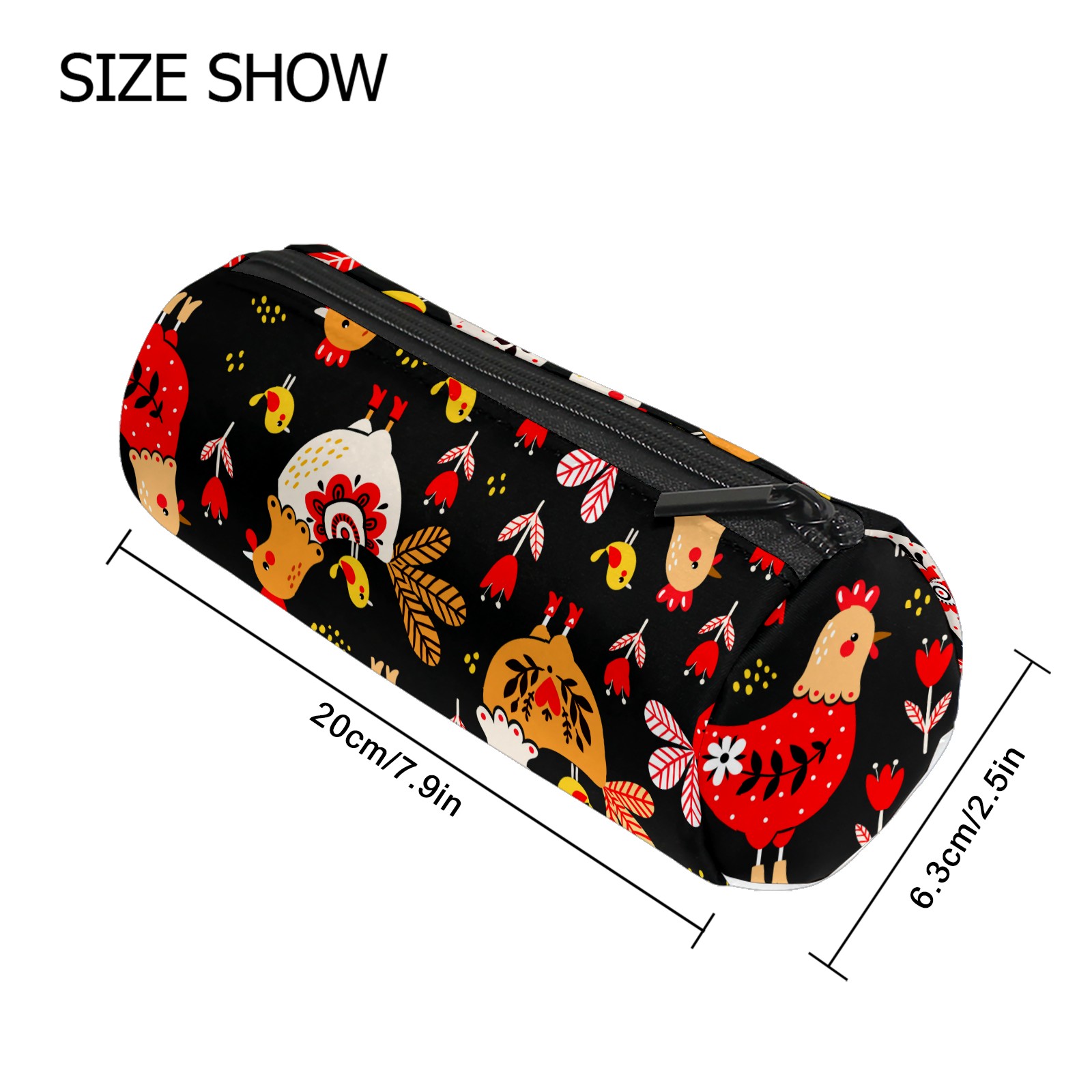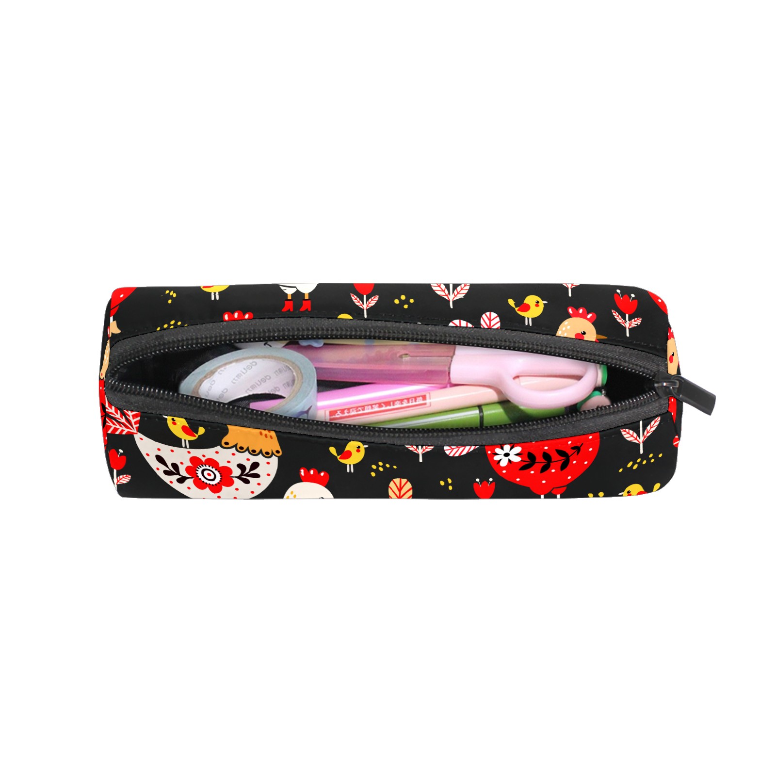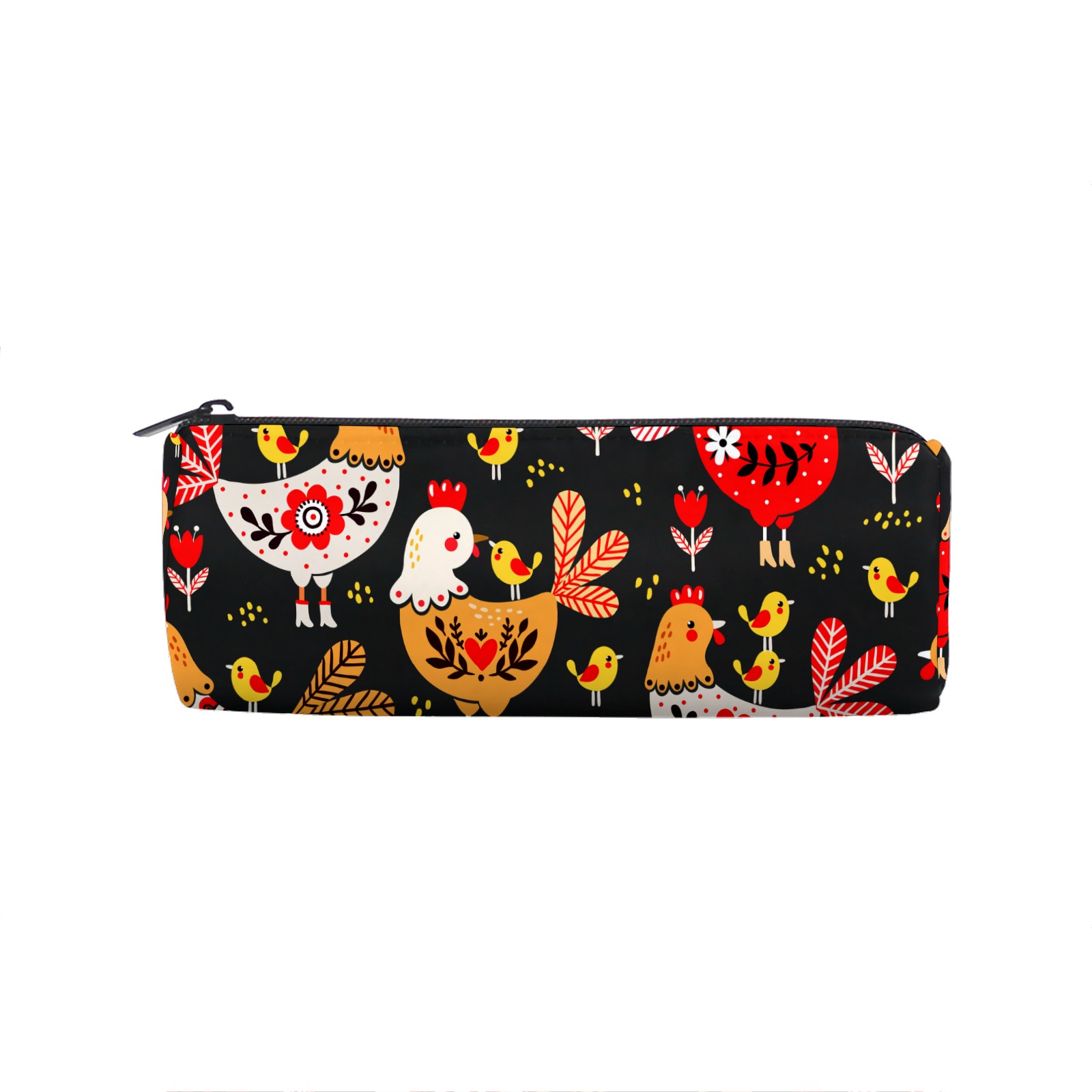 Pencil Case Colorful Rooster Chicken Floral Pattern Pouch Bag School Stationery Pen Box Zipper Cosmetic Makeup Bag